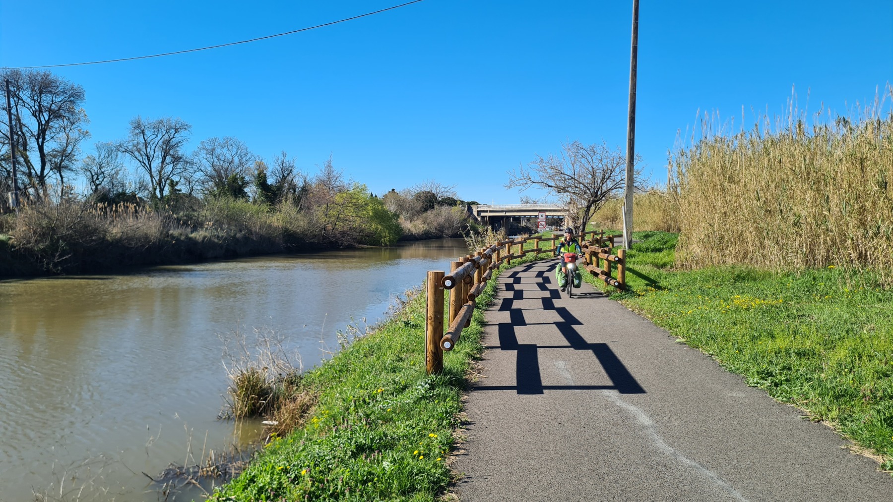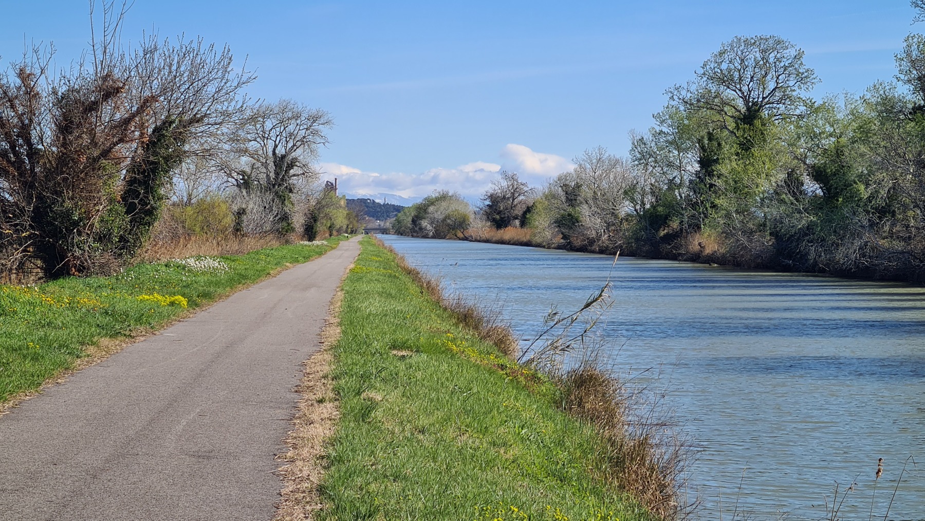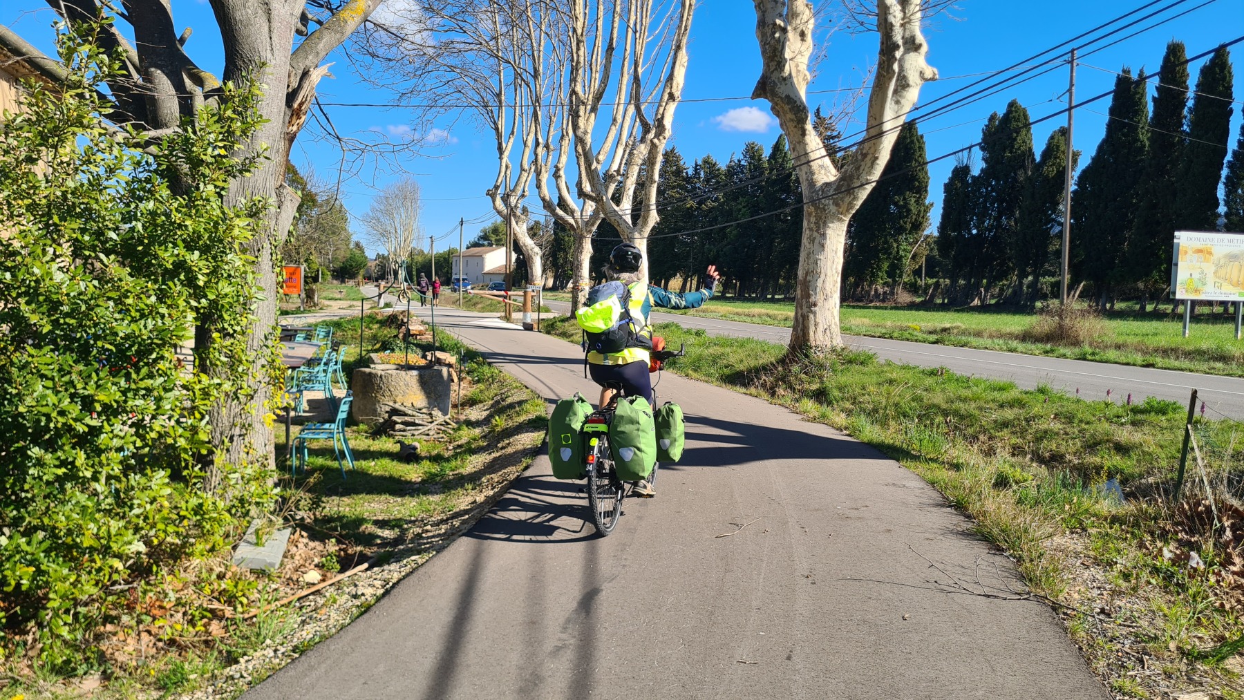 A part ça l’itinéraire est bien agréable, avec une section sur le chemin de halage du canal du Rhône à Sète et pas mal de piste cyclable le long des Alpilles.