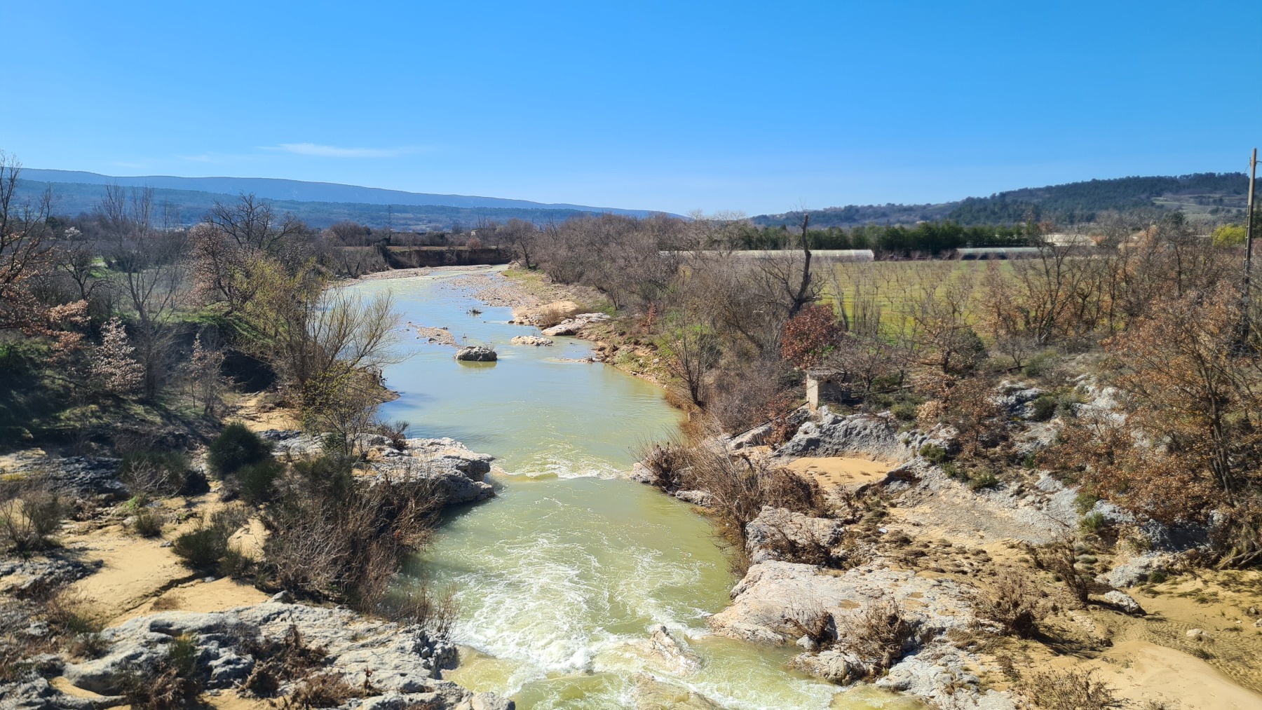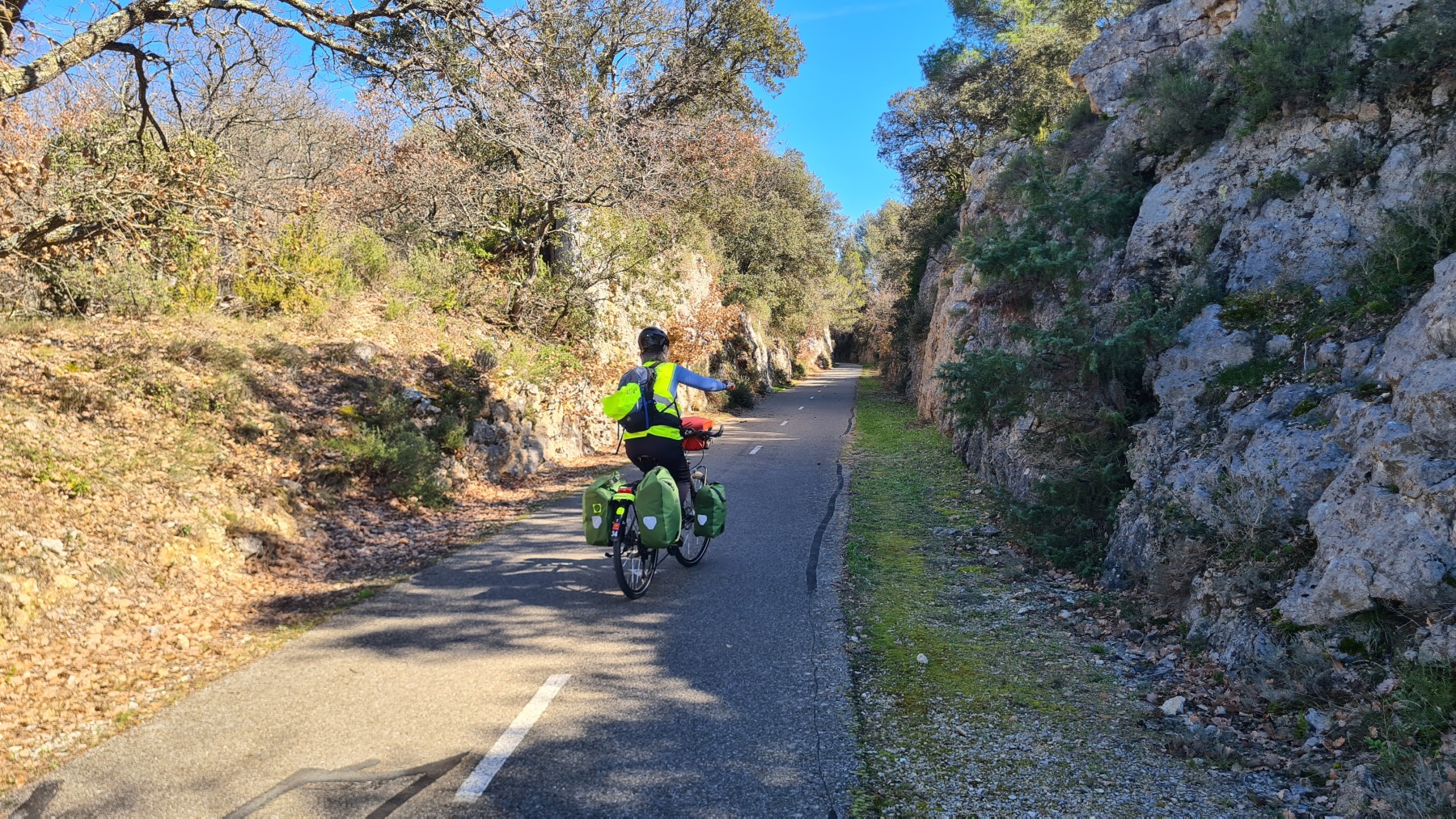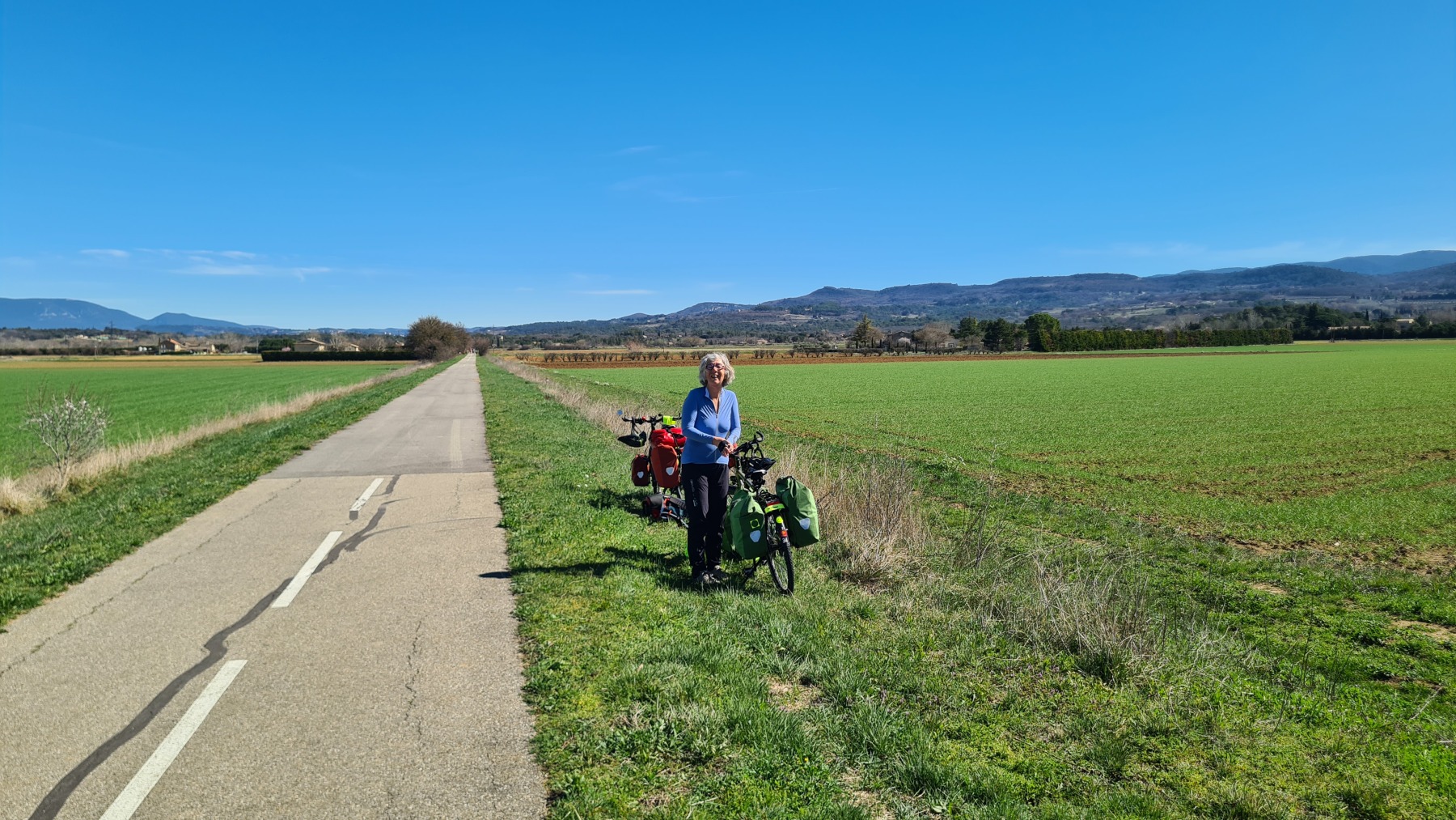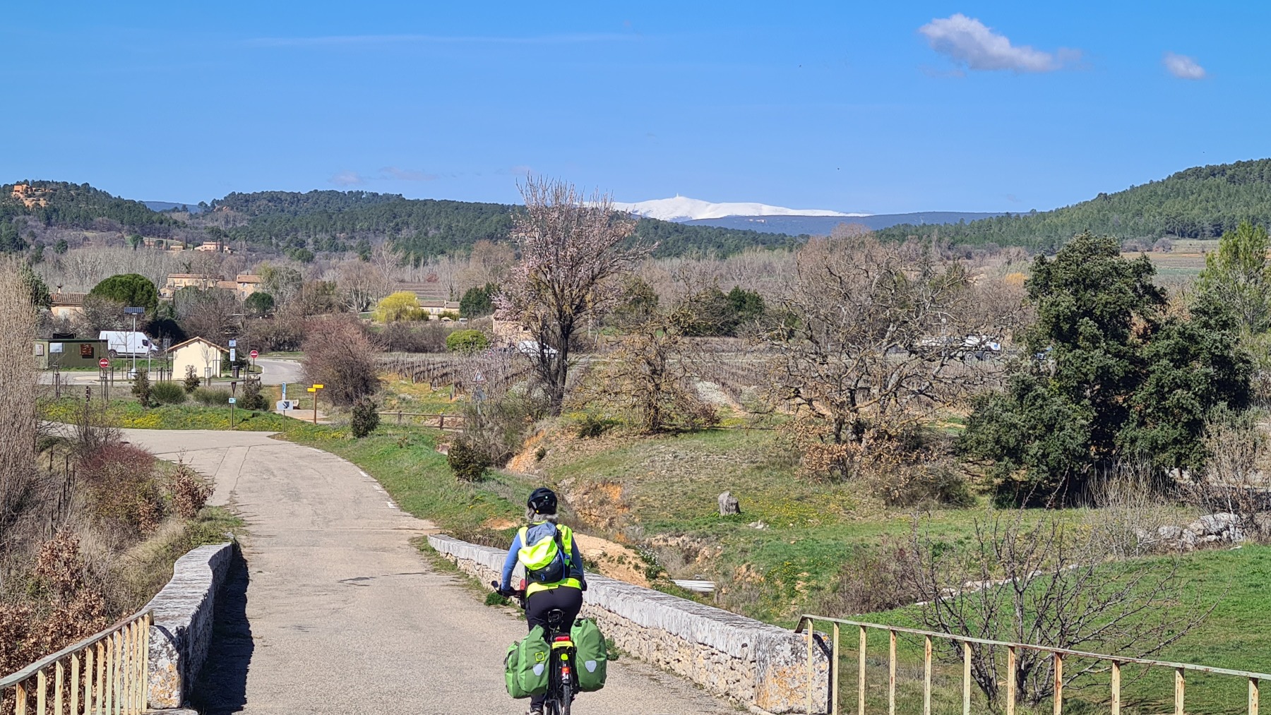 Avant ces 300m nous avons suivi la très agréable (mais trop courte à mon gout) véloroute du Calavon avec des vues superbes sur le Mont Ventoux vers le Nord et le Luberon au Sud.
