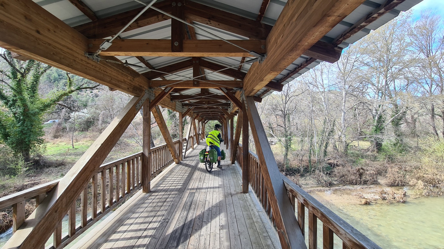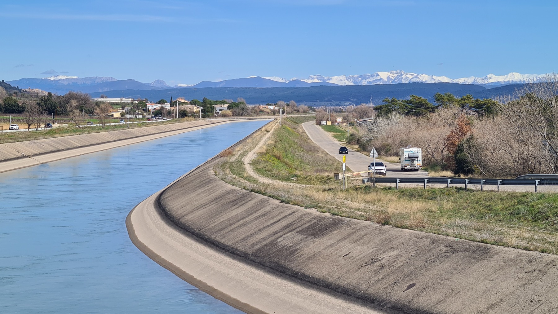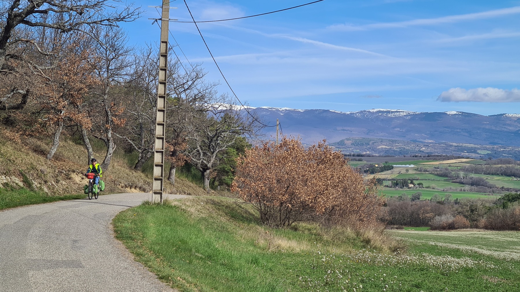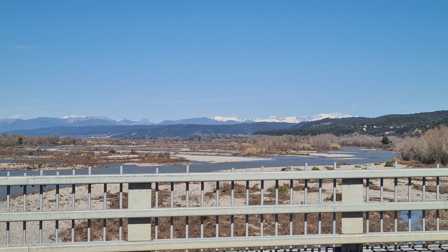 En re-traversant la Durance (déjà traversée à Cavaillon mardi dernier) à Manosque nous avons apprécié la toute nouvelle voie verte commune à l’Eurovélo 8 et au GR4 qui nous a évité de galérer au bord de la nationale comme nous l’avions fait sur le GR en 2018.