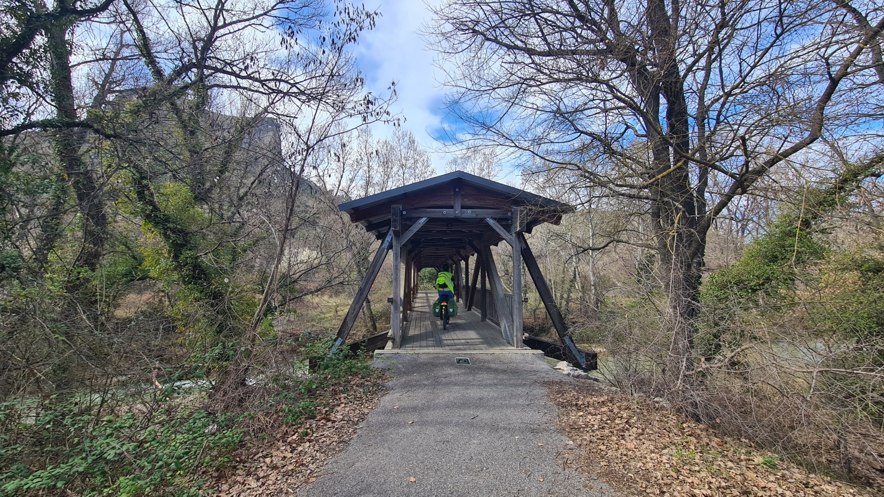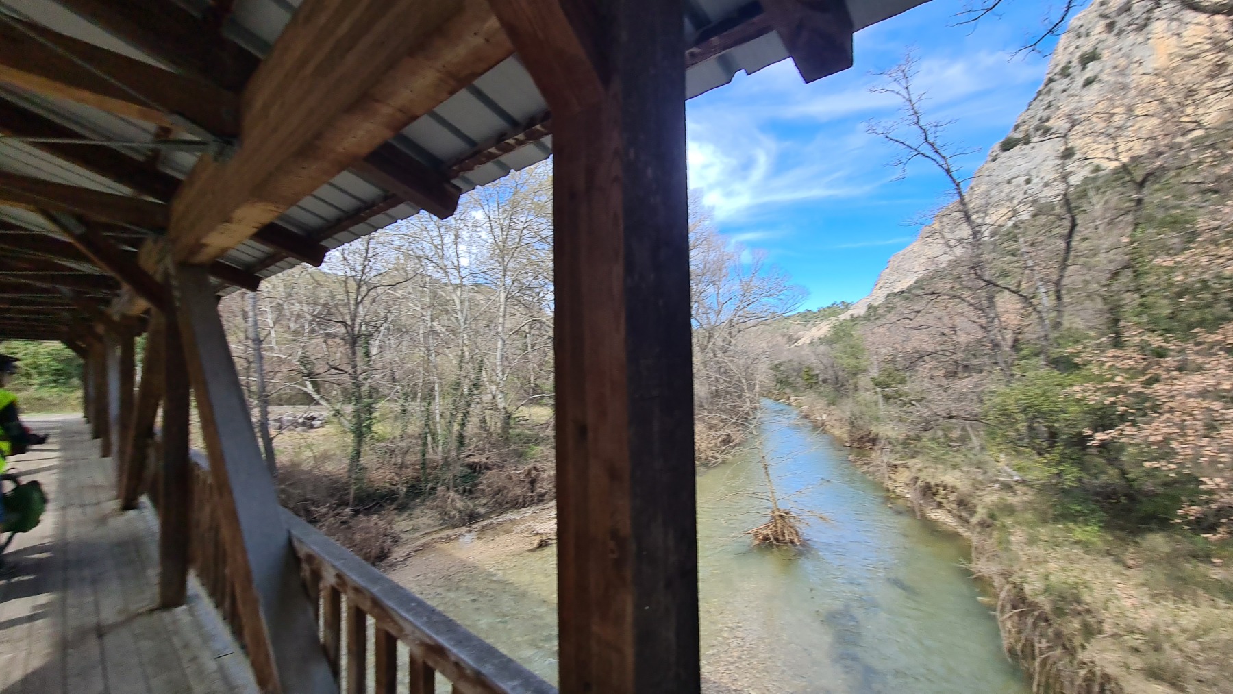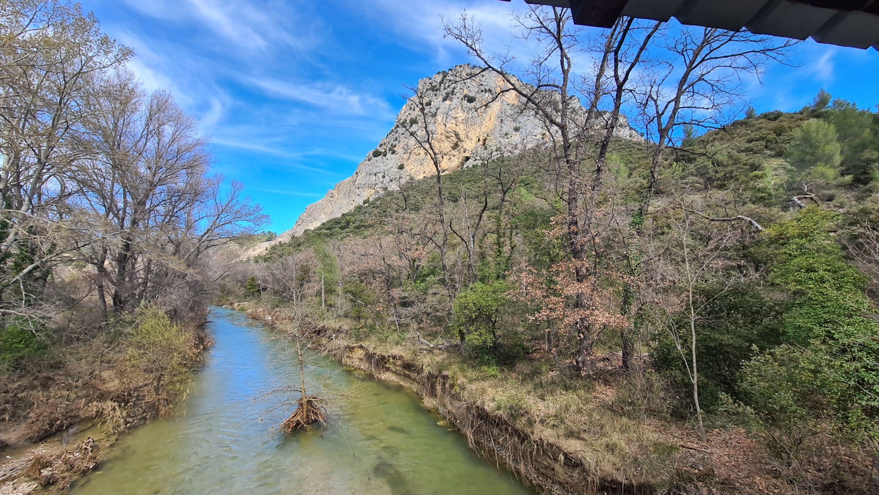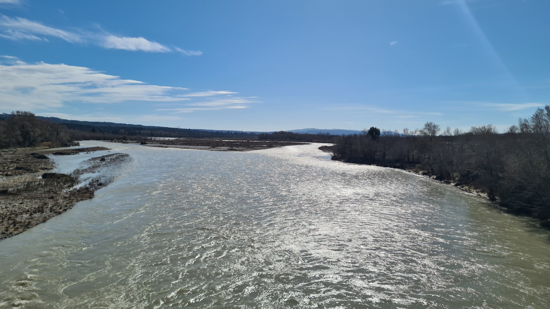 En re-traversant la Durance (déjà traversée à Cavaillon mardi dernier) à Manosque nous avons apprécié la toute nouvelle voie verte commune à l’Eurovélo 8 et au GR4 qui nous a évité de galérer au bord de la nationale comme nous l’avions fait sur le GR en 2018.