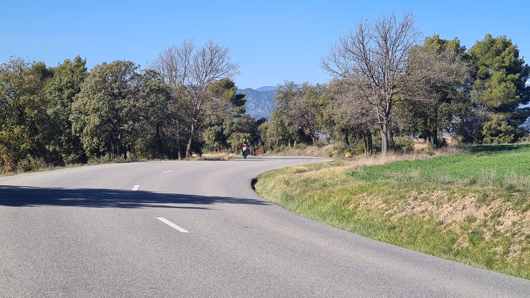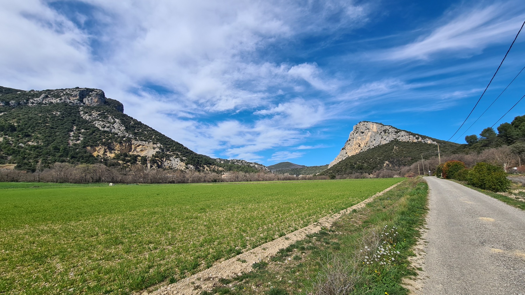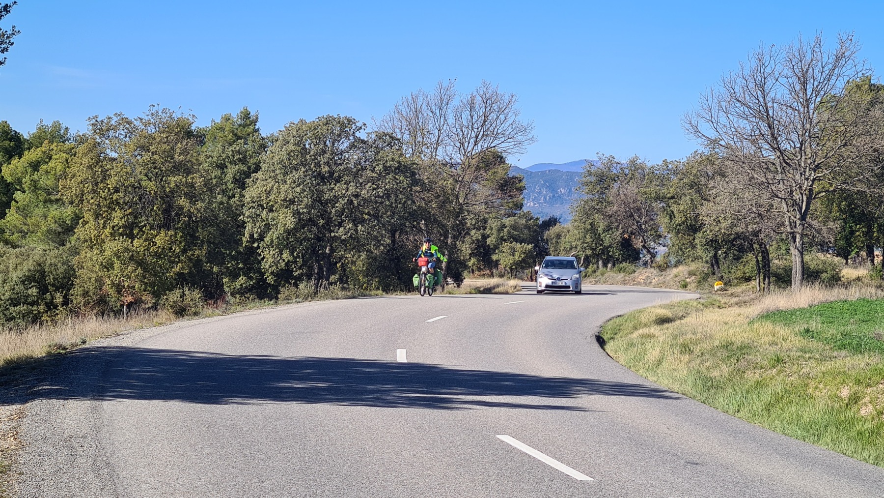 Les topoguides de l’Eurovélo 8 indiquent que la section entre Manosque et Meyragues est dangereuse et conseillent tous de prendre le train. Nous avons préféré couper par le plateau de Valensole et faire étape à Gréoux les Bains que nous connaissions déjà et que nous aimons bien.