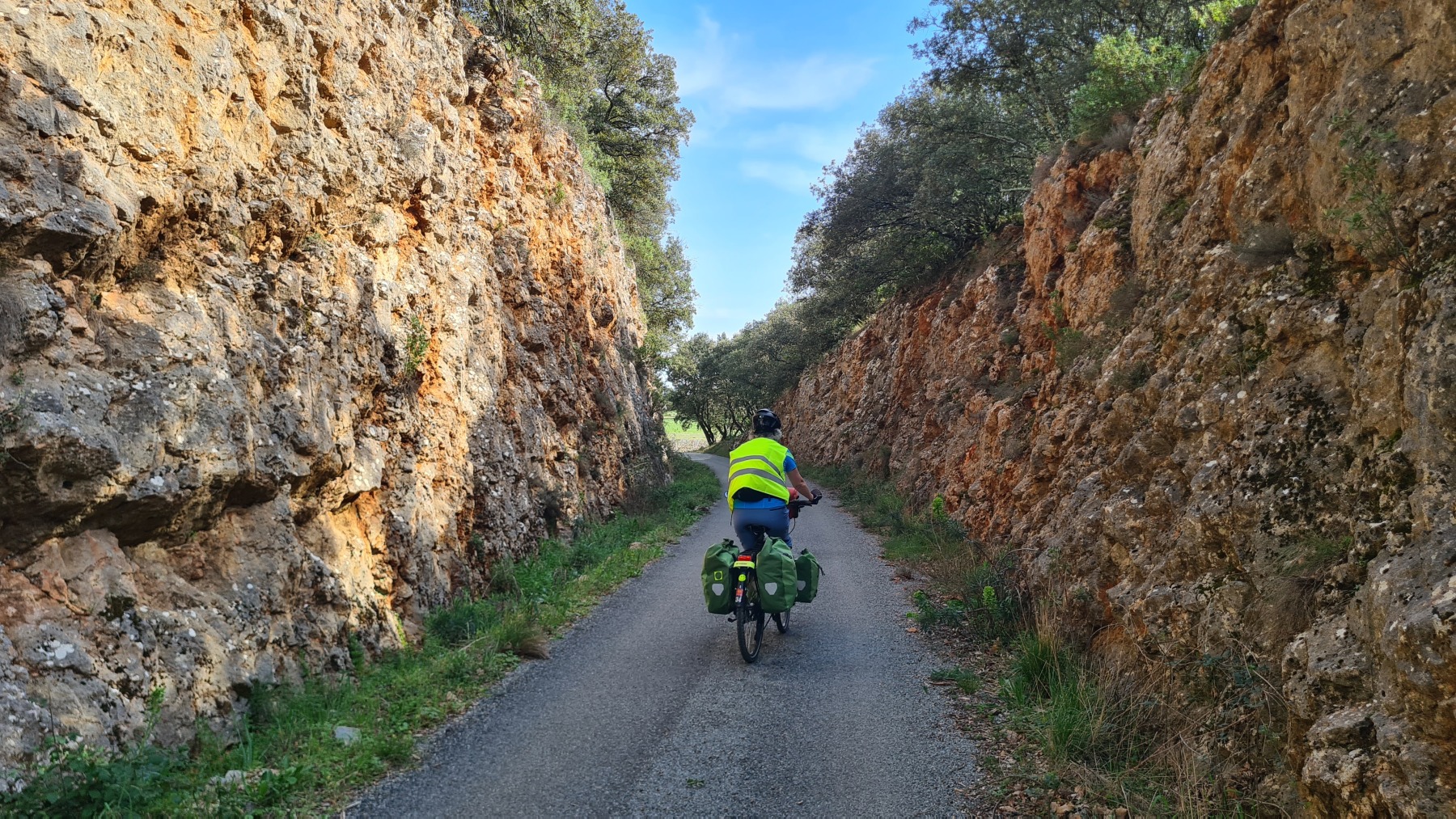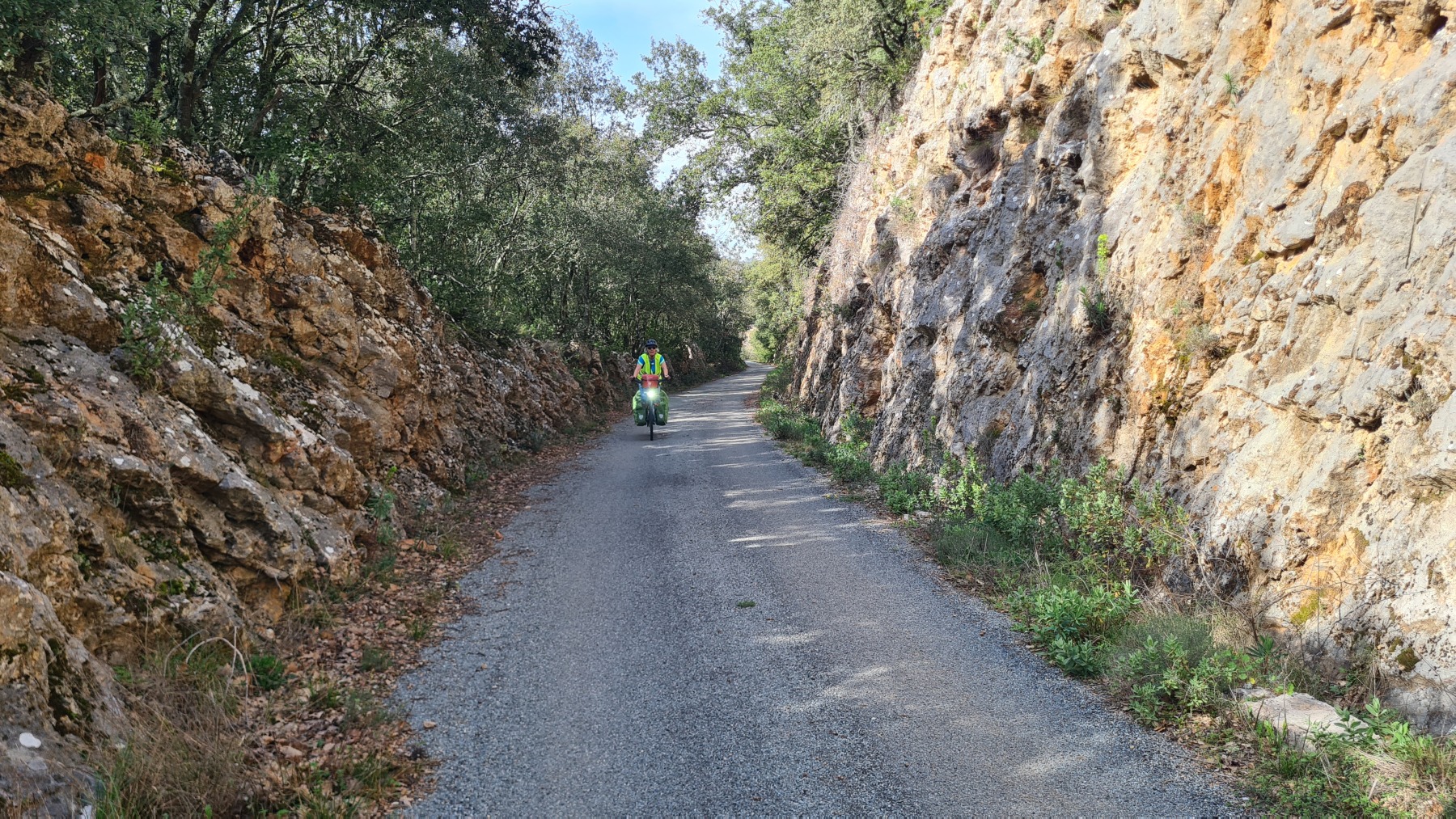 La véloroute alterne des sections sur route (parfois doublée d’une piste cyclable) et des sections bien agréables aménagées en voie propre sur une ancienne voie ferrée.