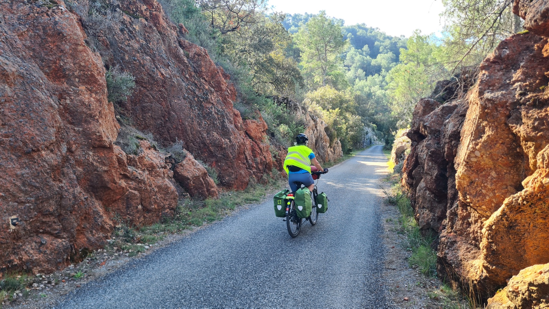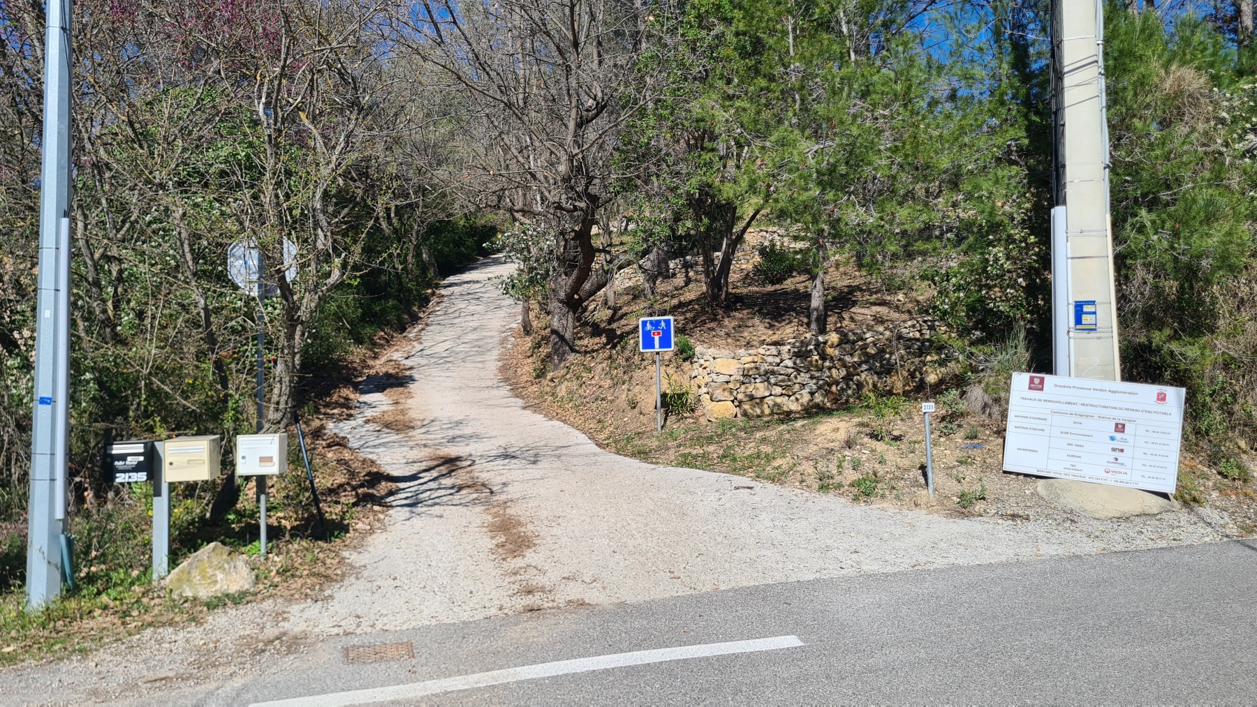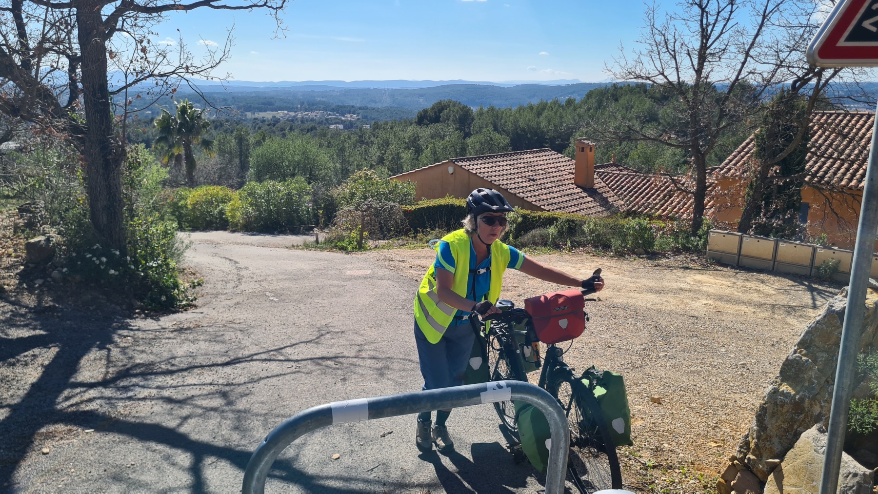 Nous avons en effet plusieurs sources d’informations. La plus à jour sont les panneaux indicateurs mais ils ne sont pas toujours présents et peuvent avoir été arrachés ou simplement ne pas exister. Je me fie donc au GPS et dois parfois tourner à des endroits où l’on ne voit pas de panneaux. Côté GPS, nous avons les données OpenStreetMap visualisées sur les cartes et utilisées par mon planificateur d’itinéraires mais aussi les traces GPX téléchargées sur le site Eurovelo et suivant les endroits les unes peut être plus à jour que les autres : hier OpenStreetMap était plus à jour que les traces GPX et aujourd’hui c’était l’inverse. Du coup pour rejoindre Draguignan on s’est retrouvé à pousser les vélos sur un ancien parcours de l’Eurovelo sur une piste en terre devenue impraticable avec nos vélos (et surtout avec mon vélo et son porte bagages qui tient avec du fil de fer).