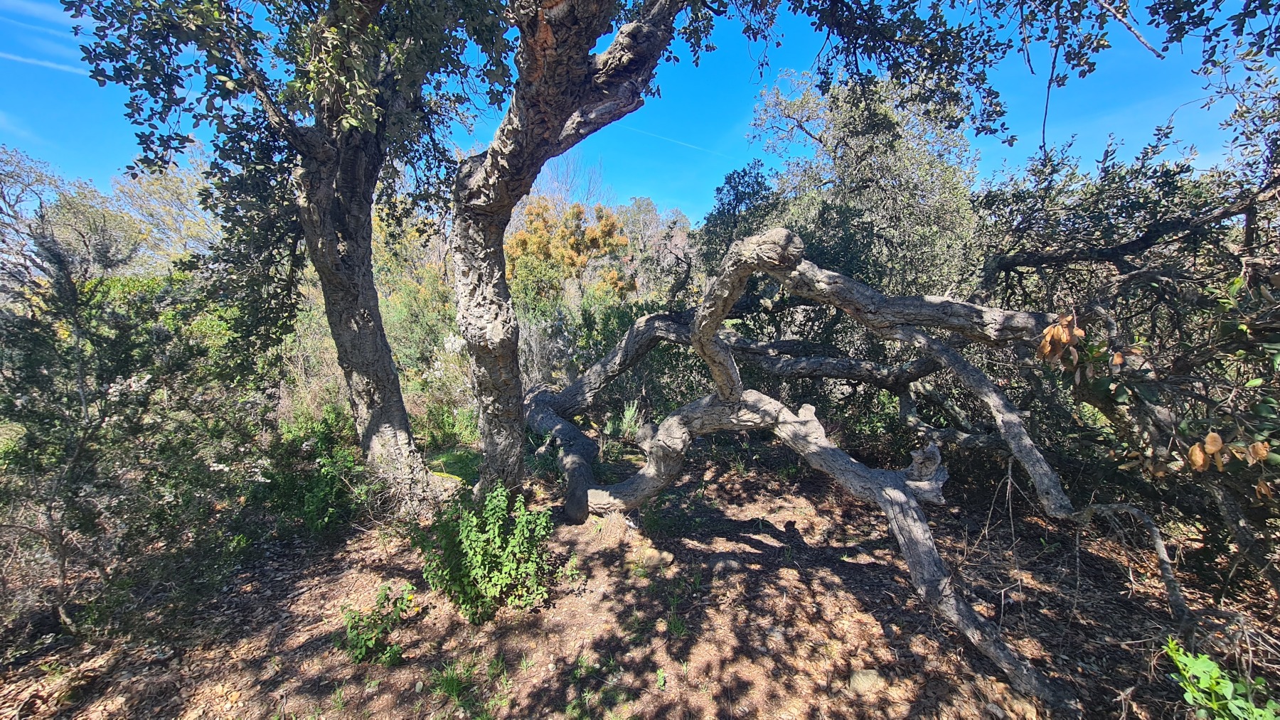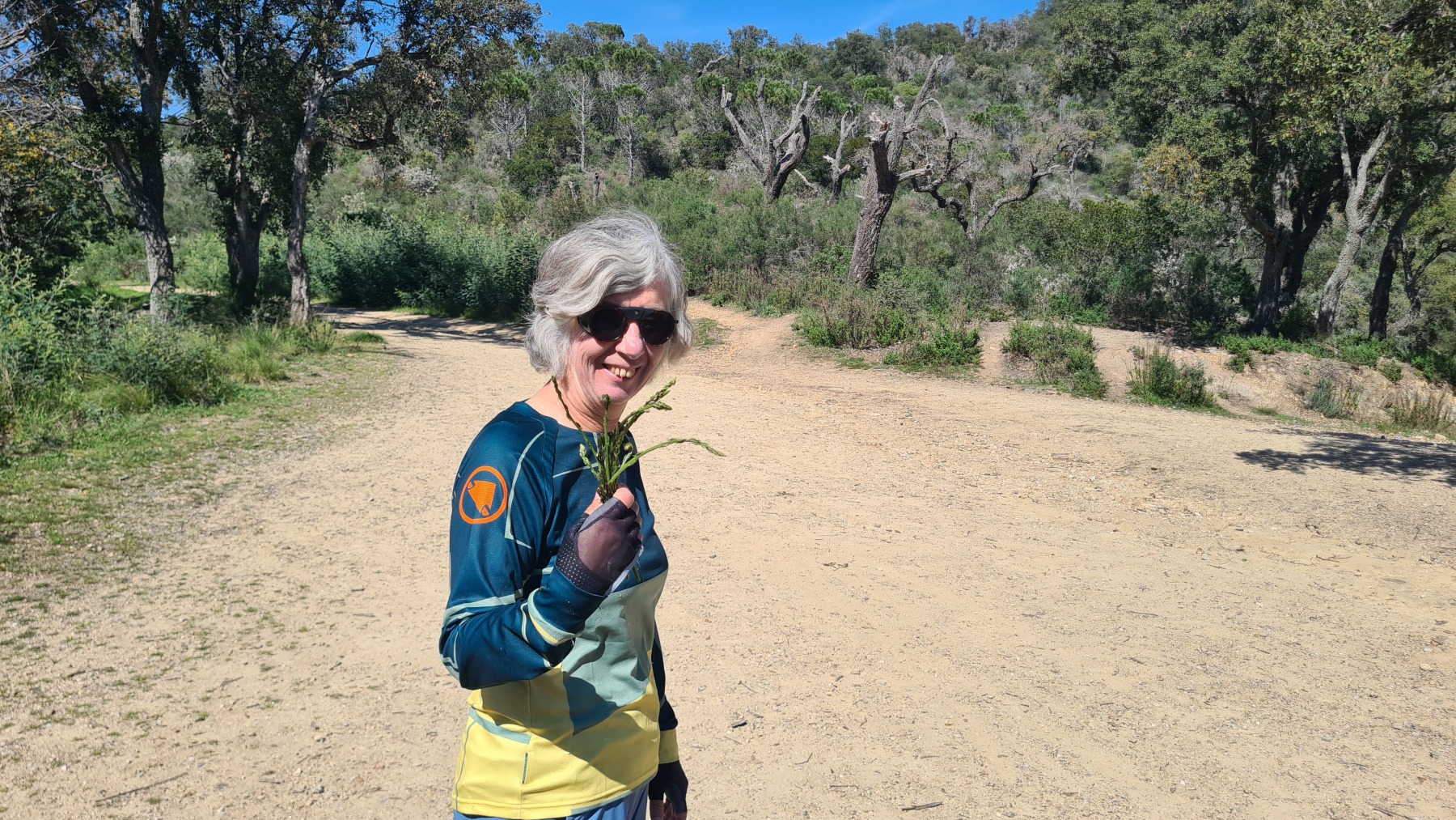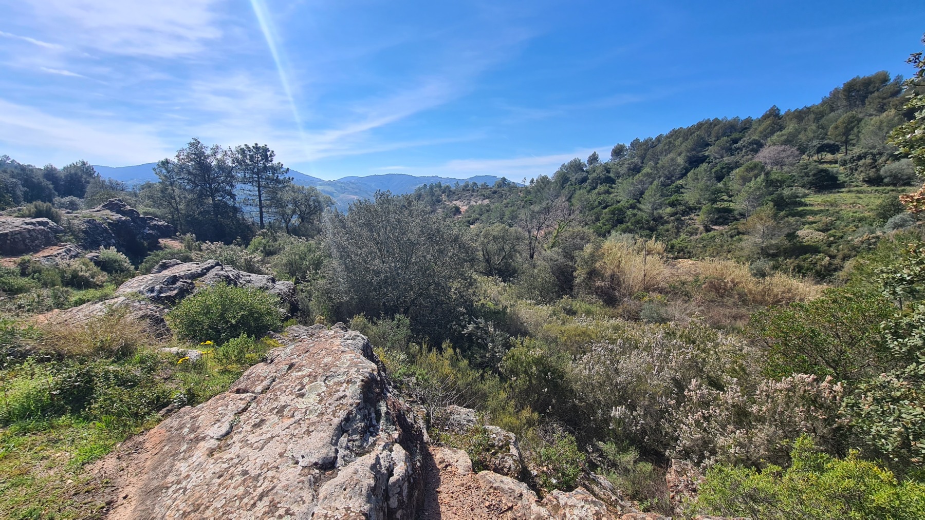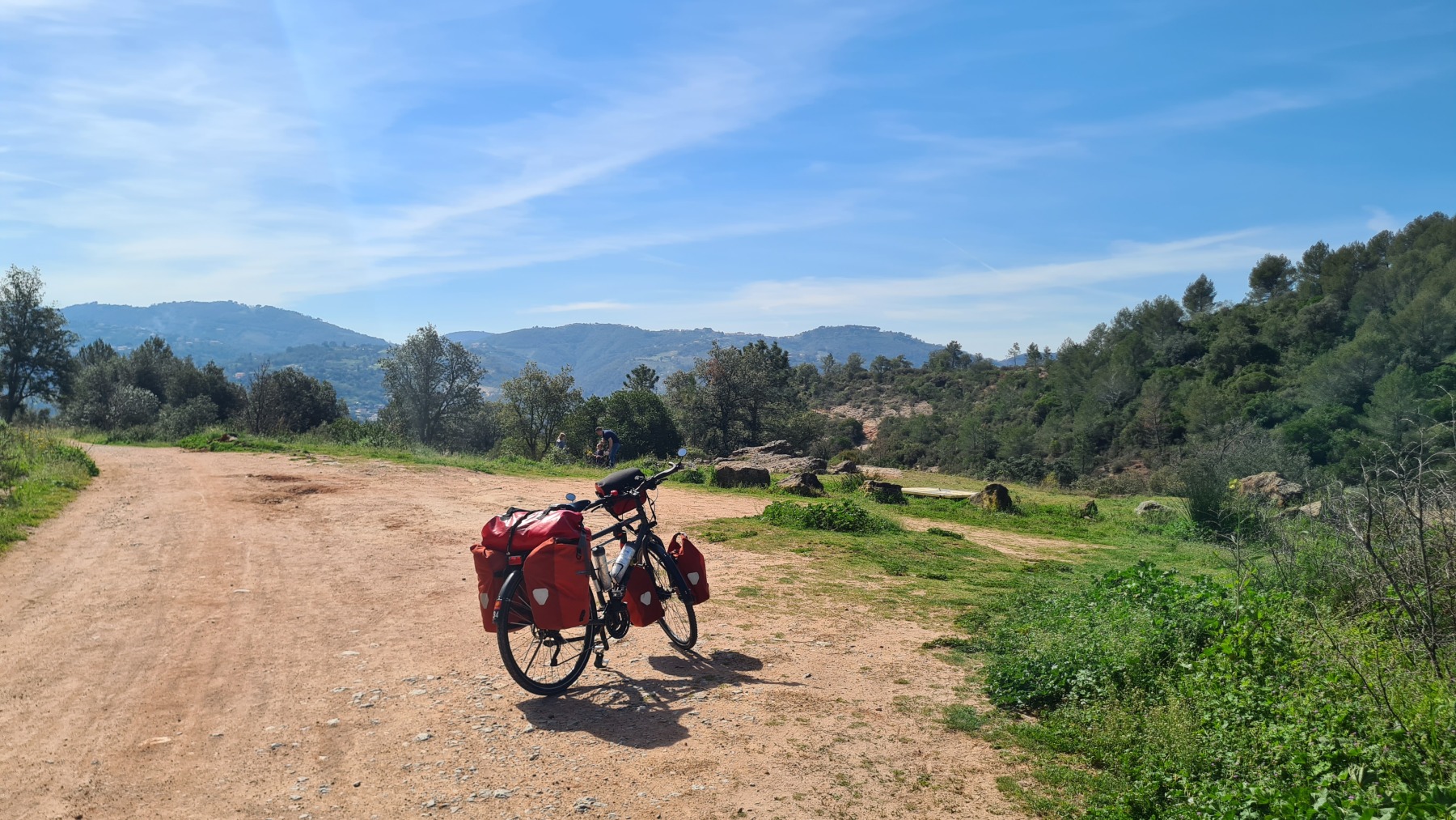 Au Col de Peygros, l’Eurovelo emprunte le GR51 sur pour une belle descente un peu « gravel » pour nos vélos de cyclotourisme. Nous avons picniqué dans une boucle de ce GR sur une belle terrasse avec vus sur mer.