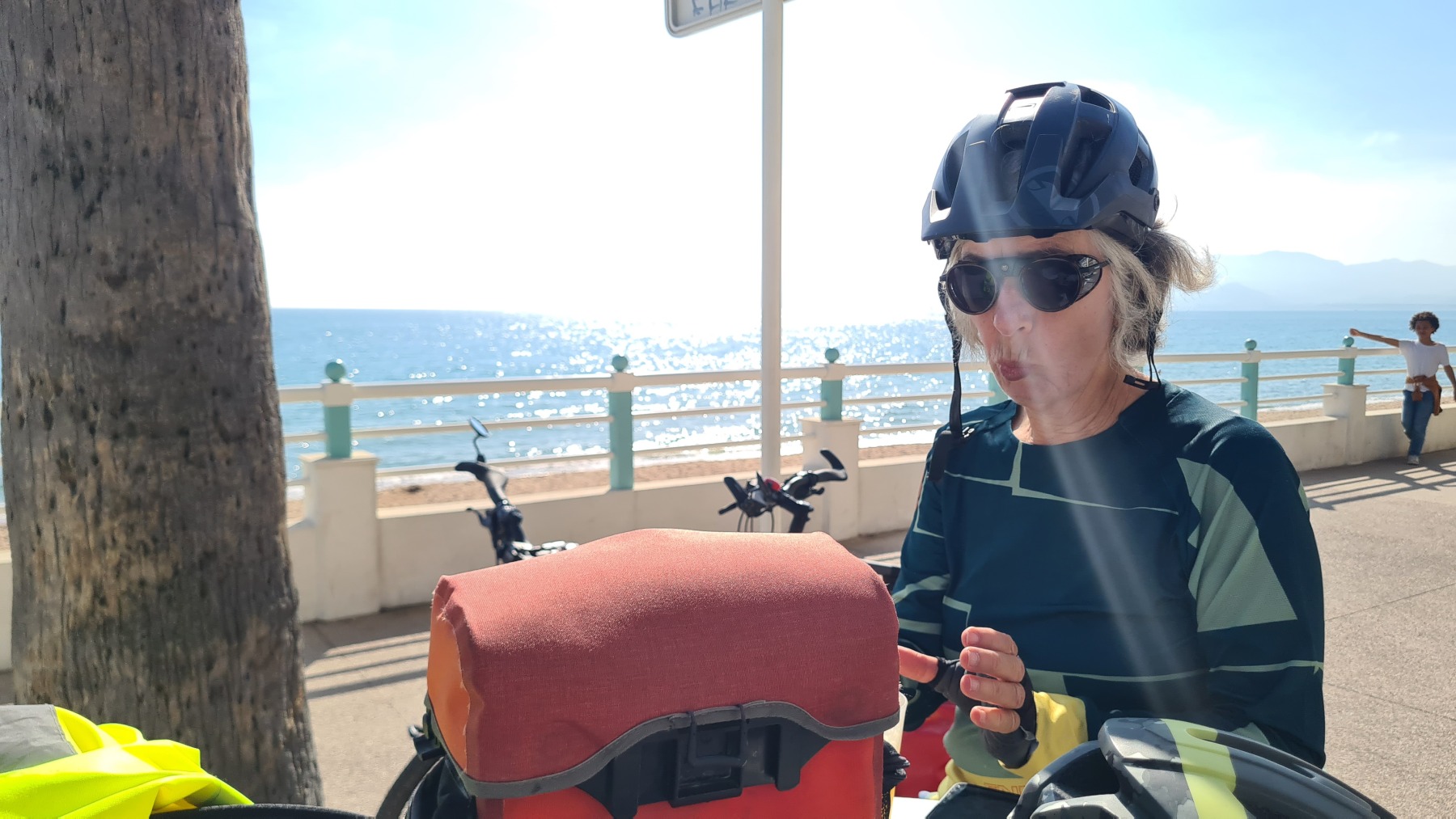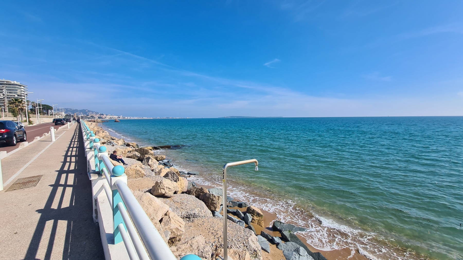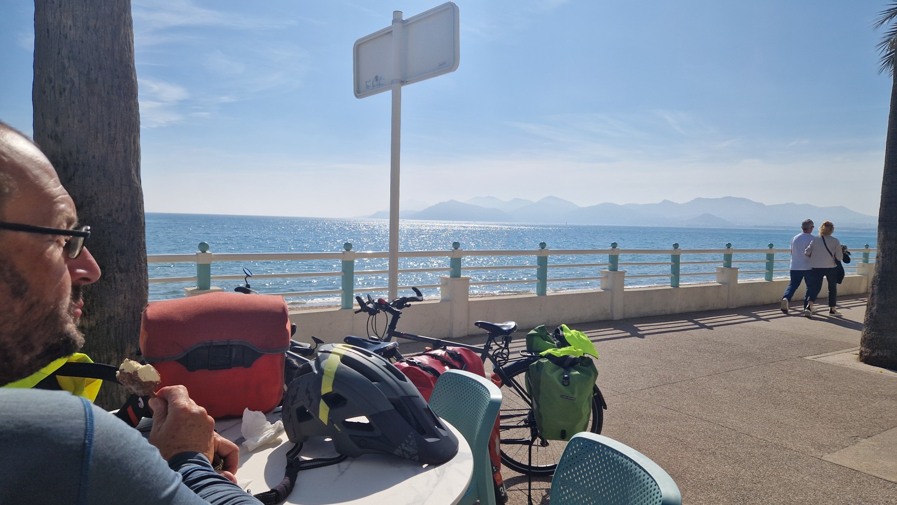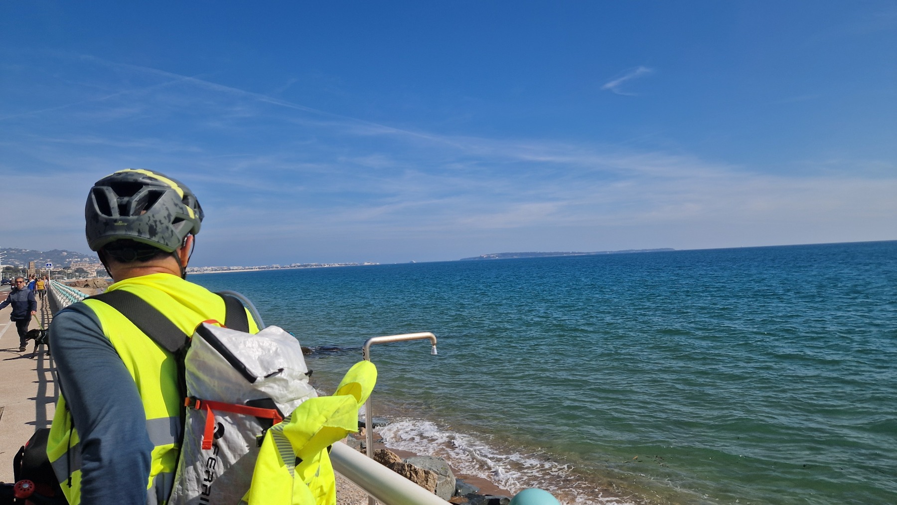 La fin de l’étape est moins intéressante mais bien sécurisée jusqu’à ce qu’on rejoigne la côte dans le magnifique Golfe de la Napoule. On débouche sur le Boulevard du Midi (la Promenade des Anglais de Cannes) sans trop s’y attendre et l’effet est saisissant.
