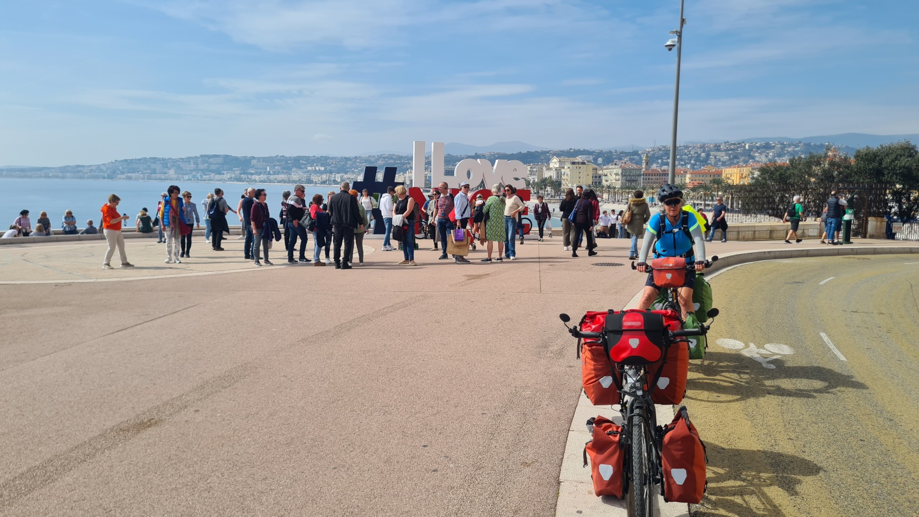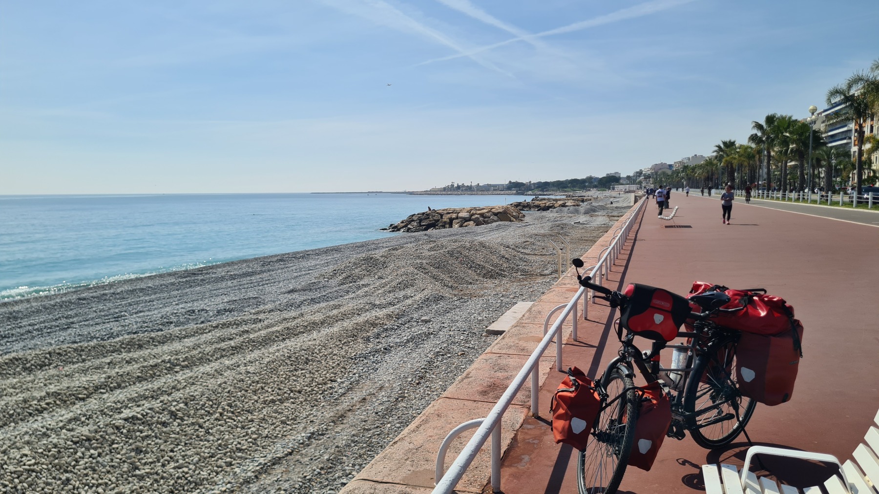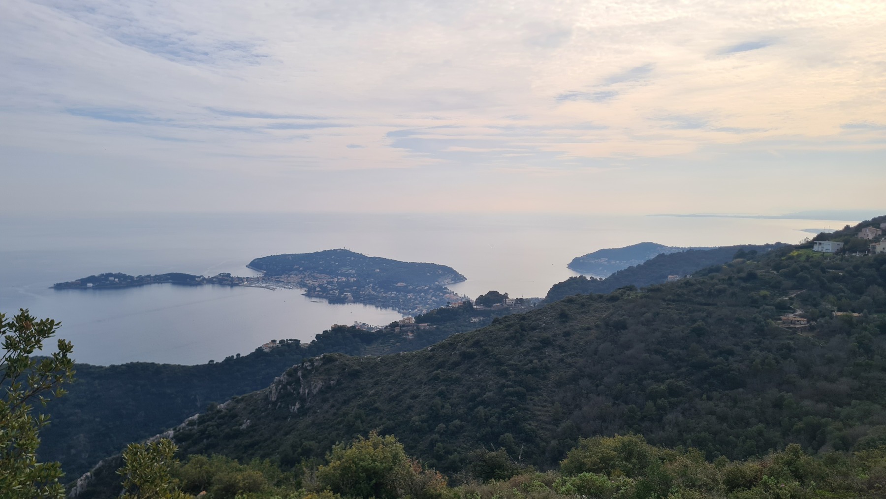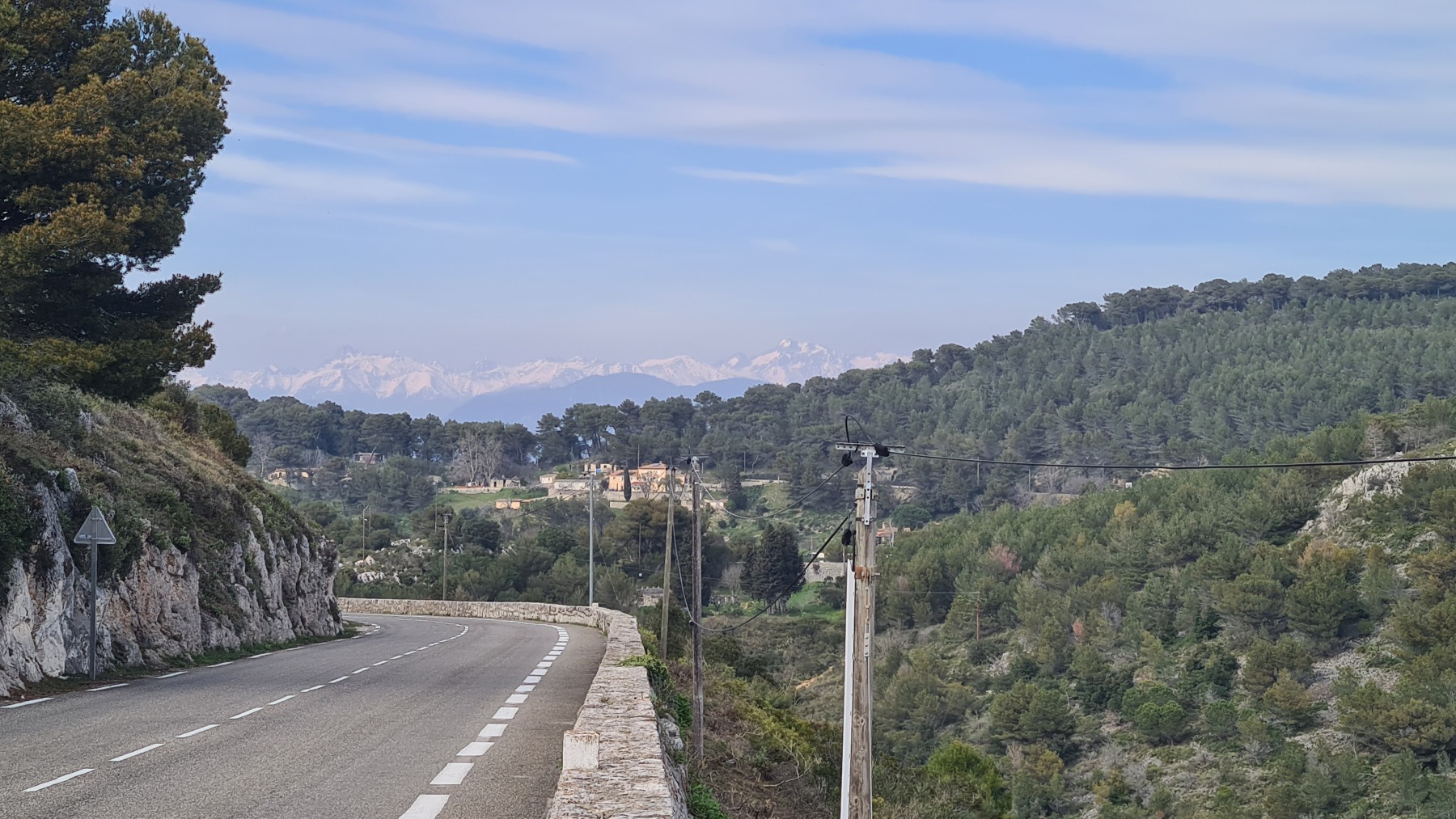 Le contraste entre les 35 kms plats et bien aménagés pour les vélos jusqu’à Nice et les 15 derniers km et leurs 550m de dénivelé sur une route de montagne est impressionnant mais la beauté des paysages sur la fameuse « haute corniche » nous a bien récompensé.
