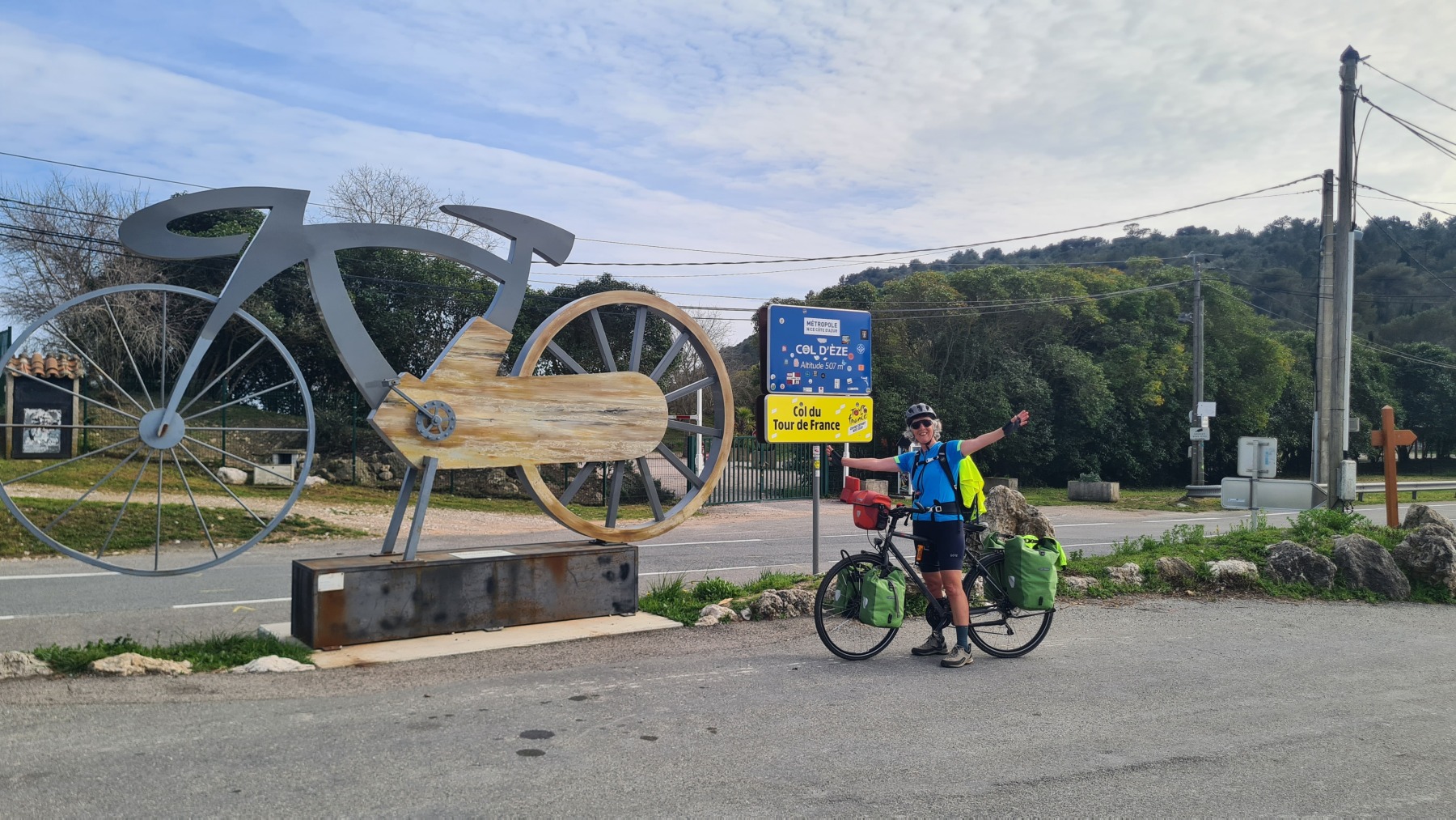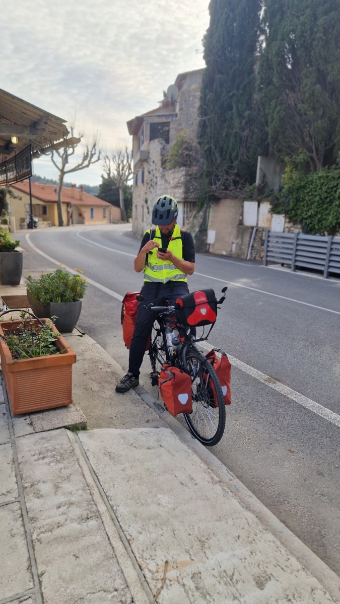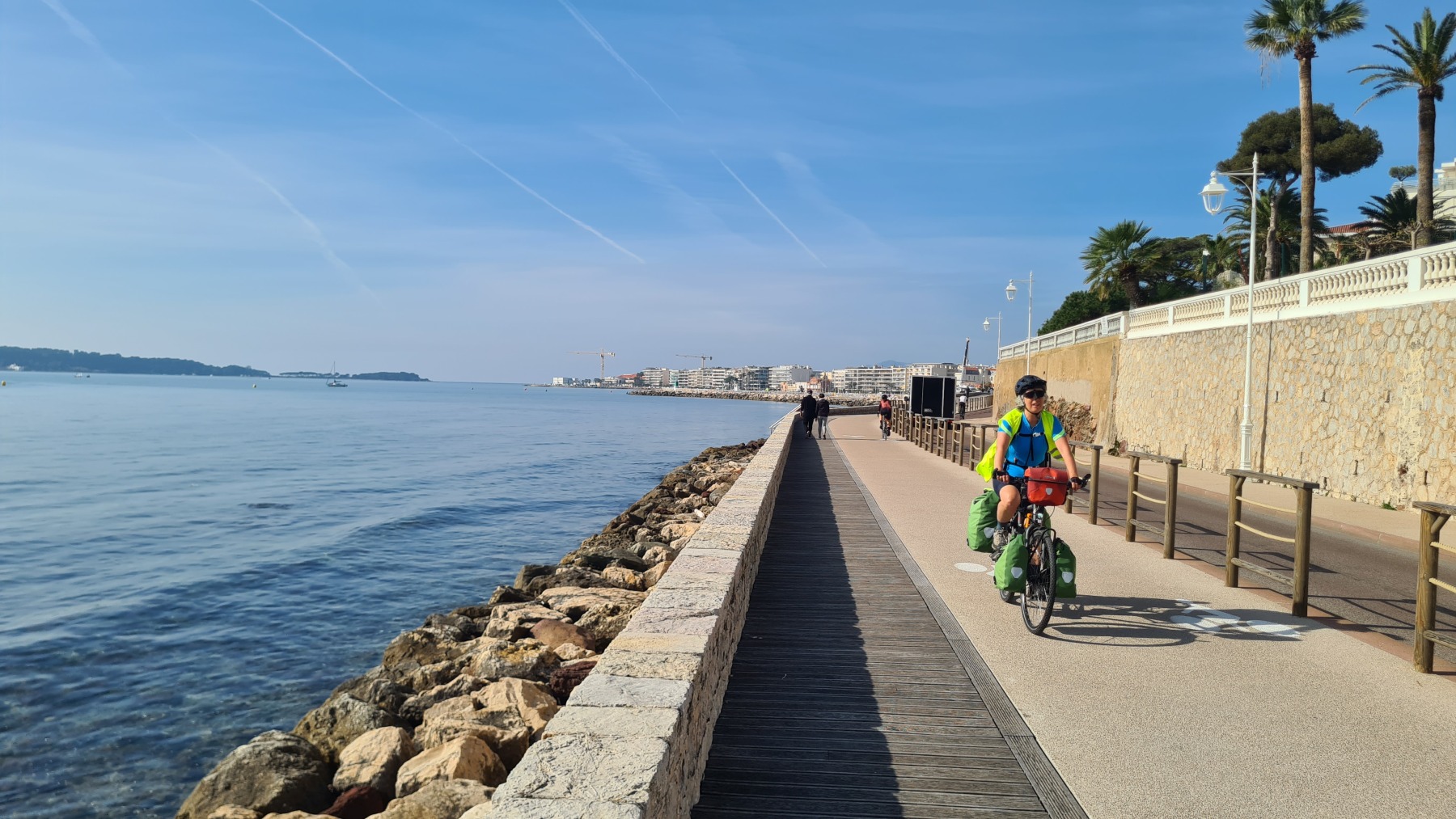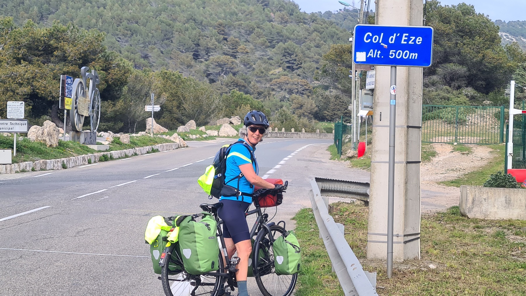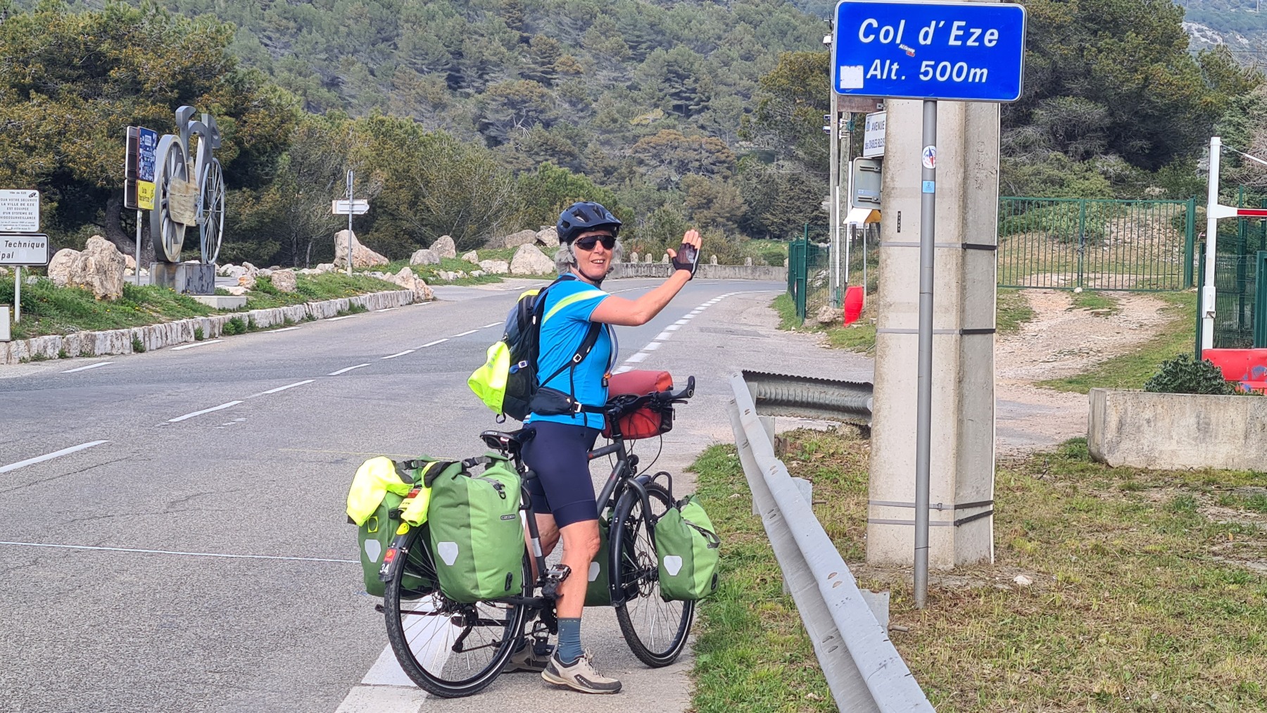 Le contraste entre les 35 kms plats et bien aménagés pour les vélos jusqu’à Nice et les 15 derniers km et leurs 550m de dénivelé sur une route de montagne est impressionnant mais la beauté des paysages sur la fameuse « haute corniche » nous a bien récompensé.