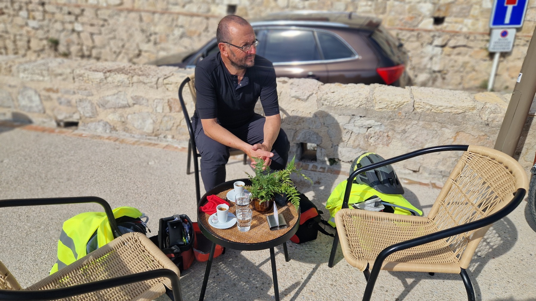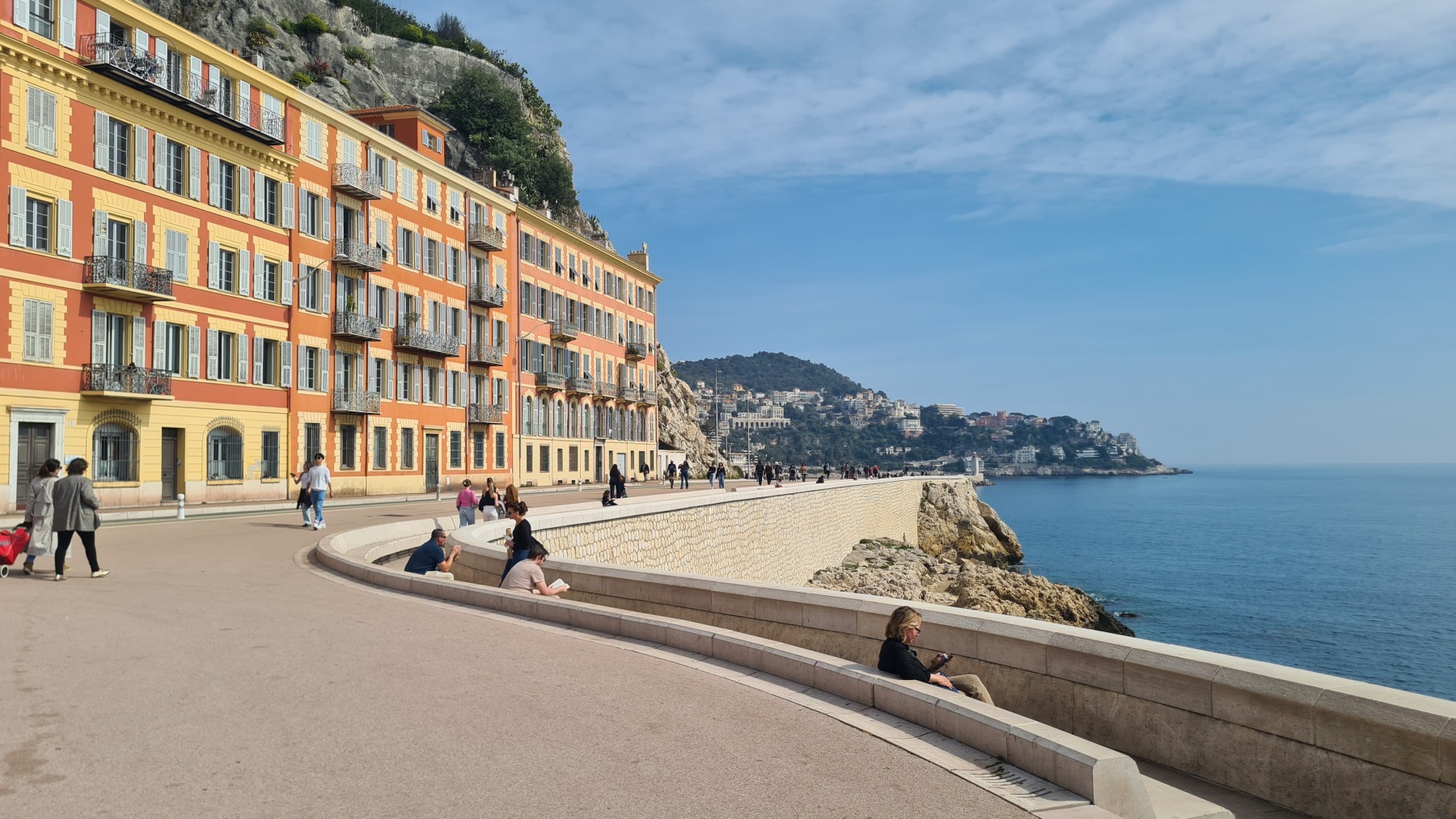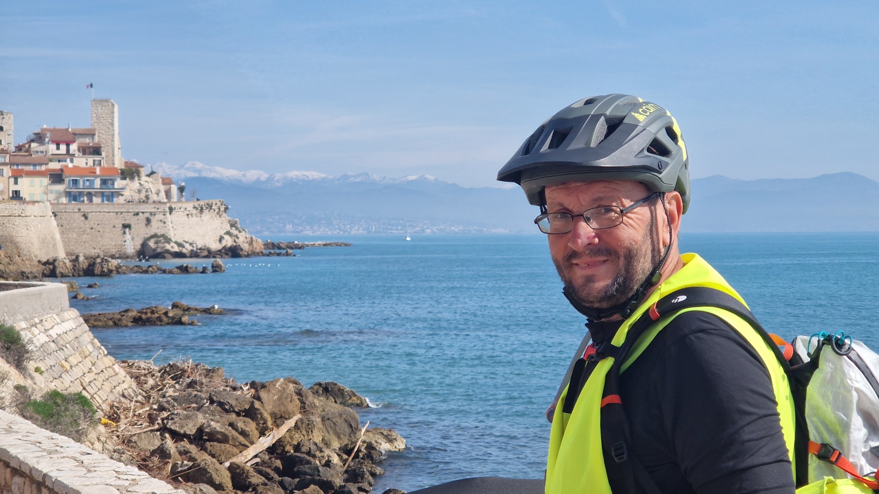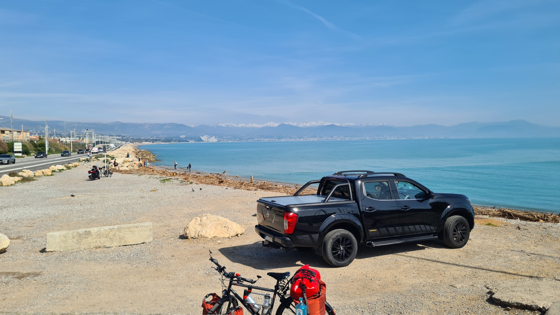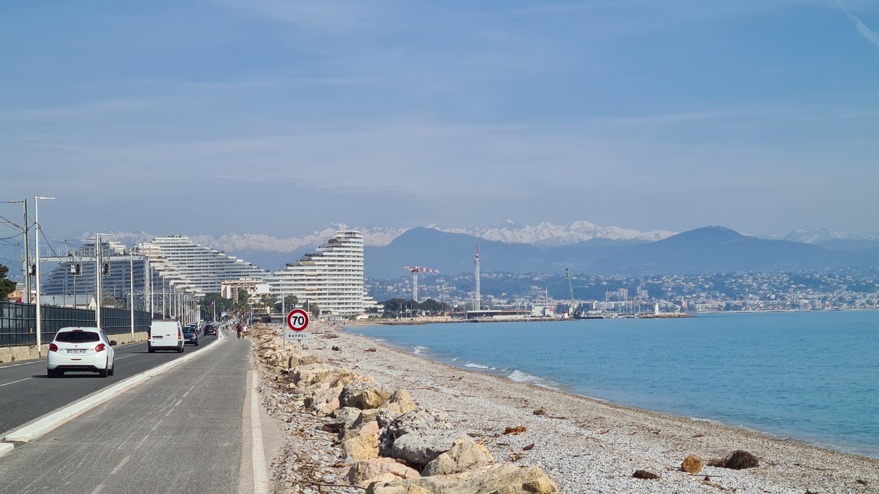 Le contraste entre les 35 kms plats et bien aménagés pour les vélos jusqu’à Nice et les 15 derniers km et leurs 550m de dénivelé sur une route de montagne est impressionnant mais la beauté des paysages sur la fameuse « haute corniche » nous a bien récompensé.