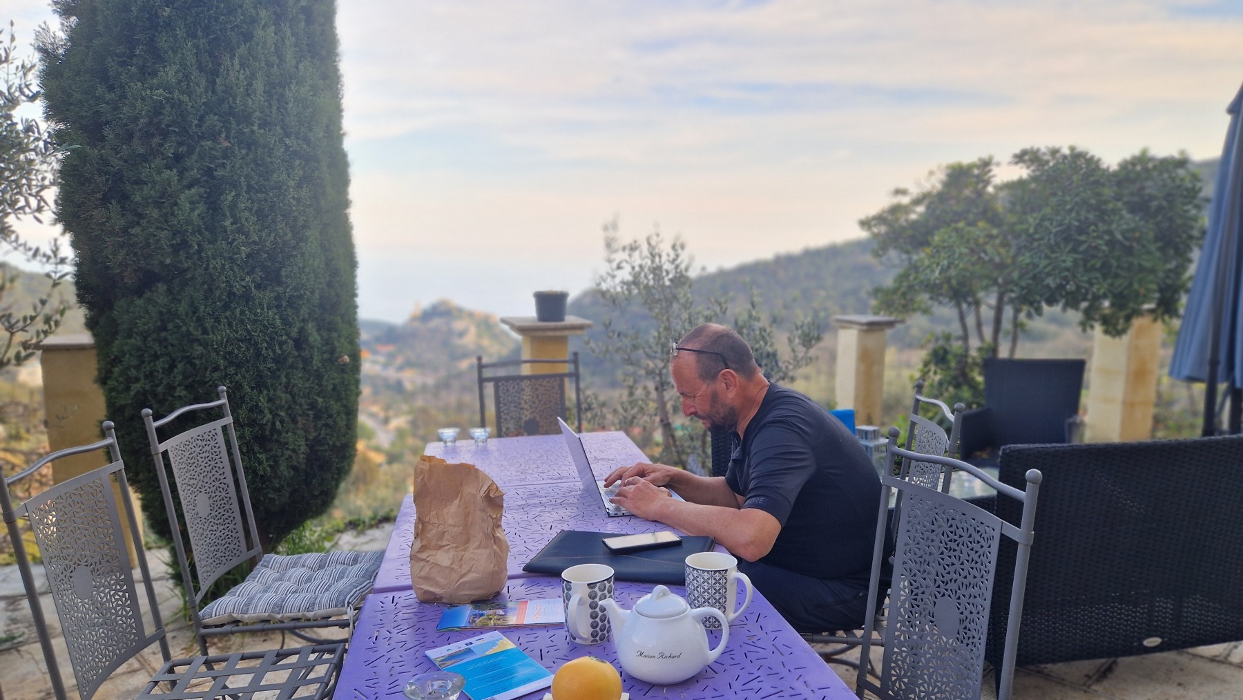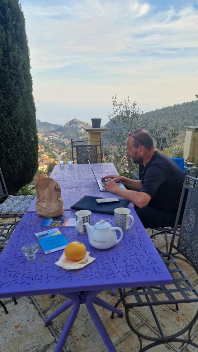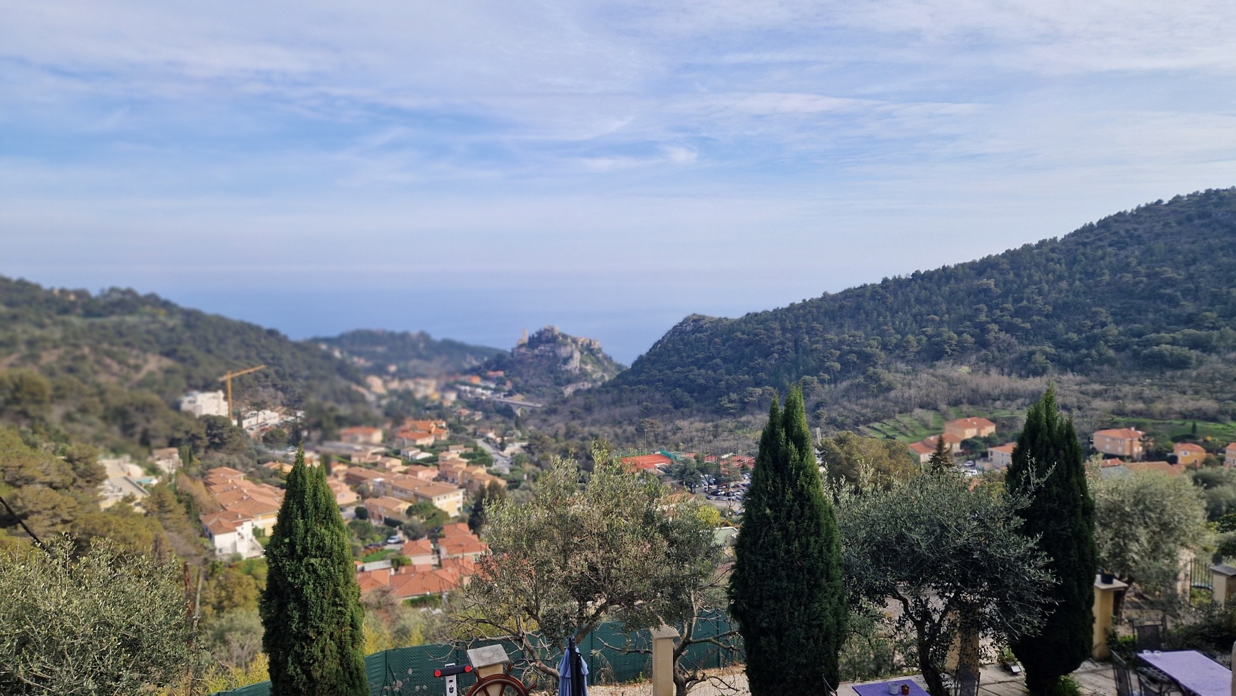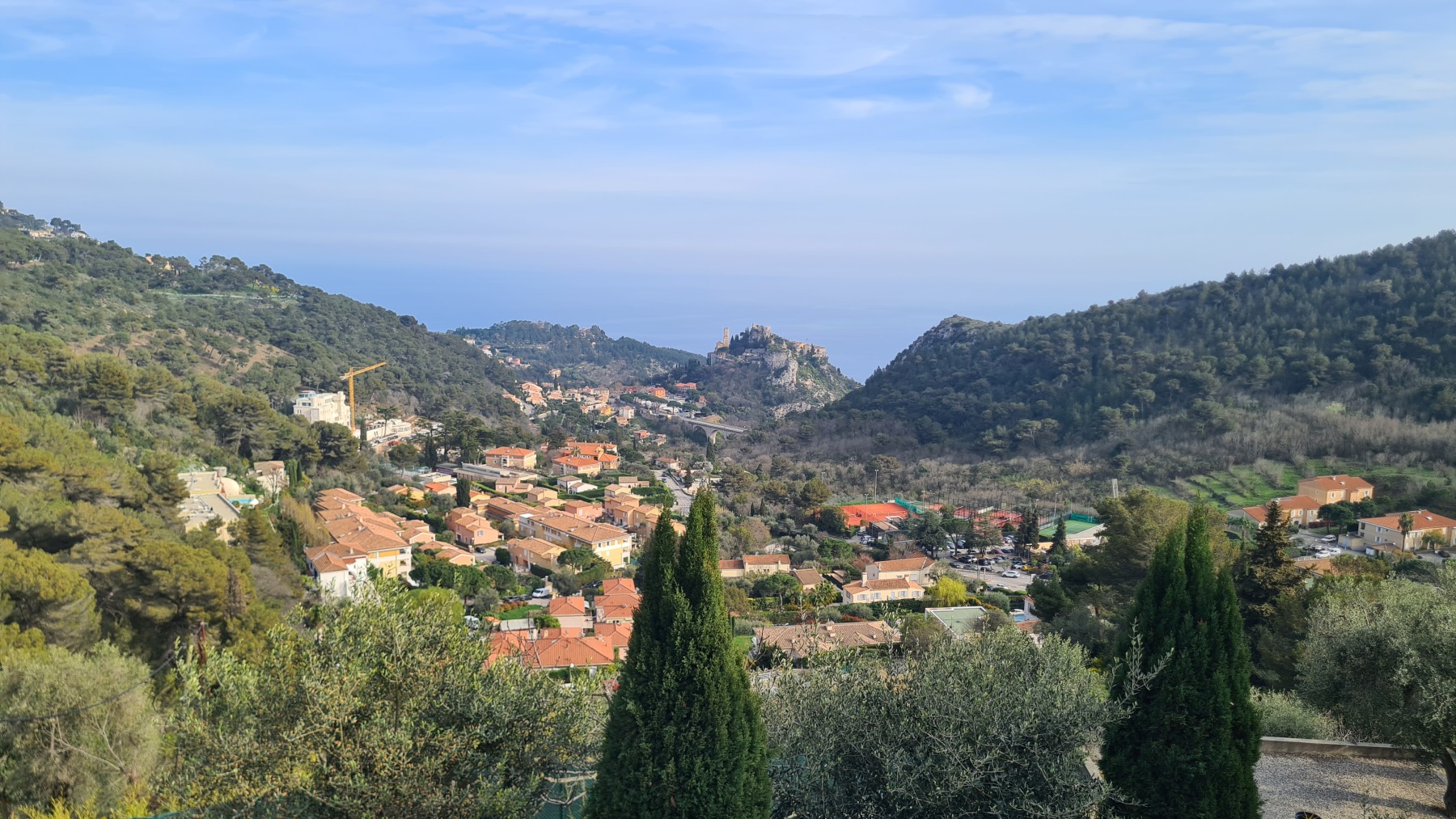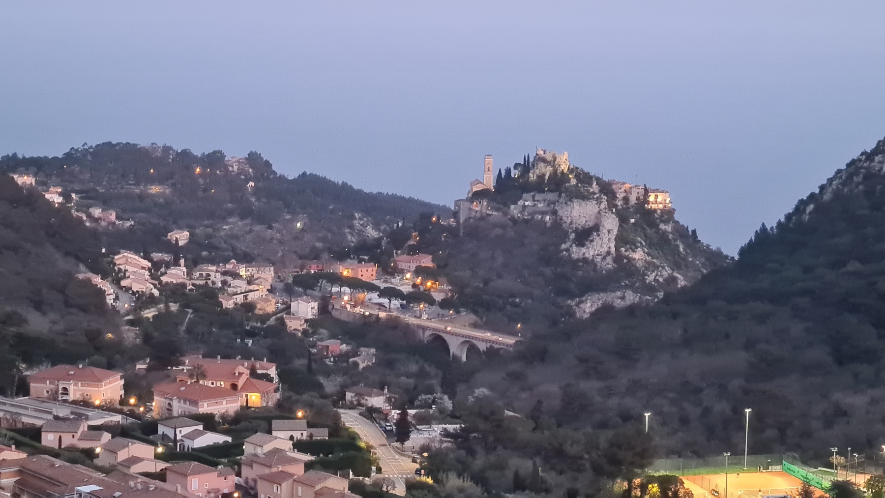 Nous dormons dans une chambre d’hôtes avec une vue splendide sur la mer et le village d’Eze.