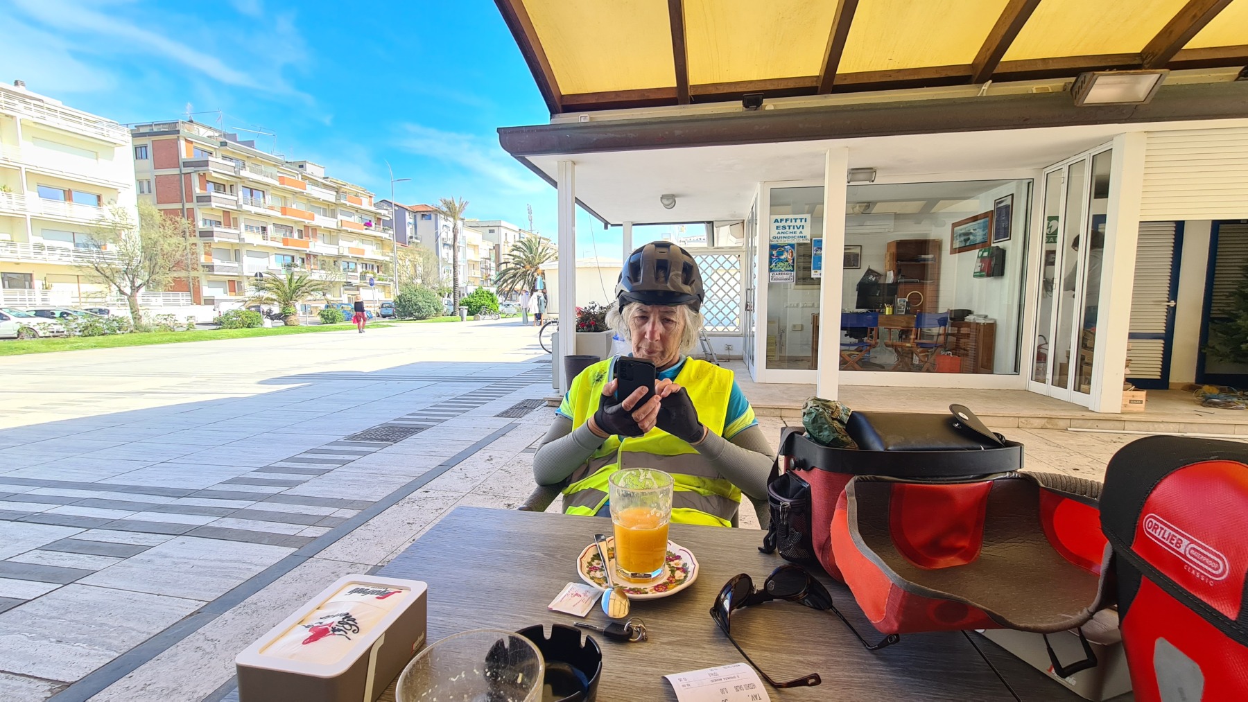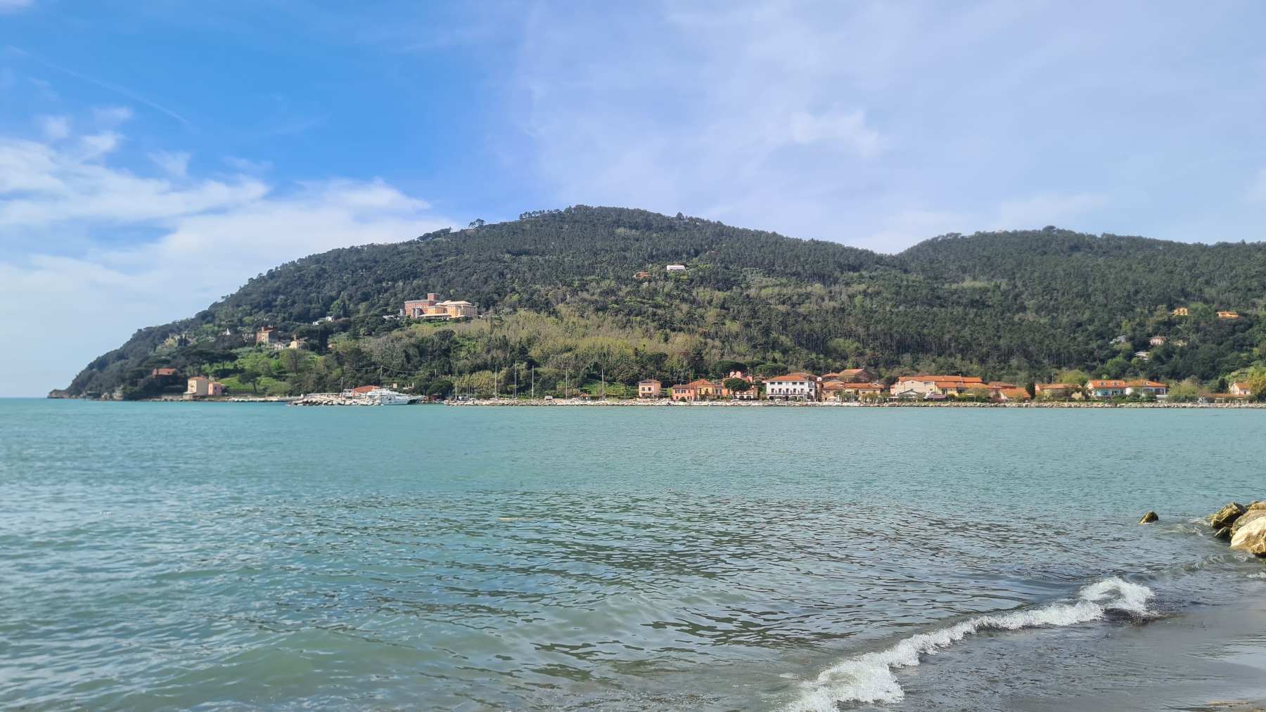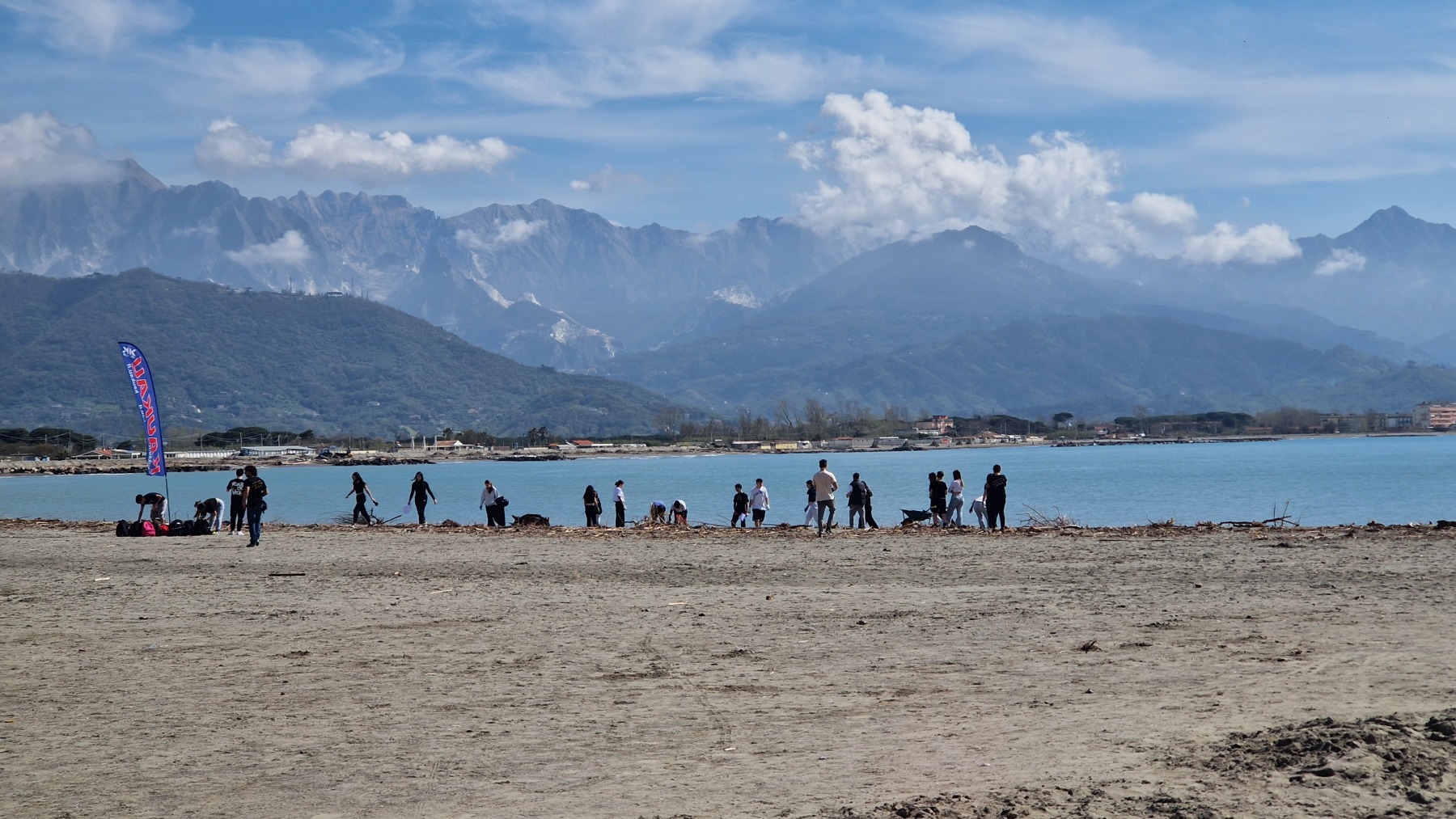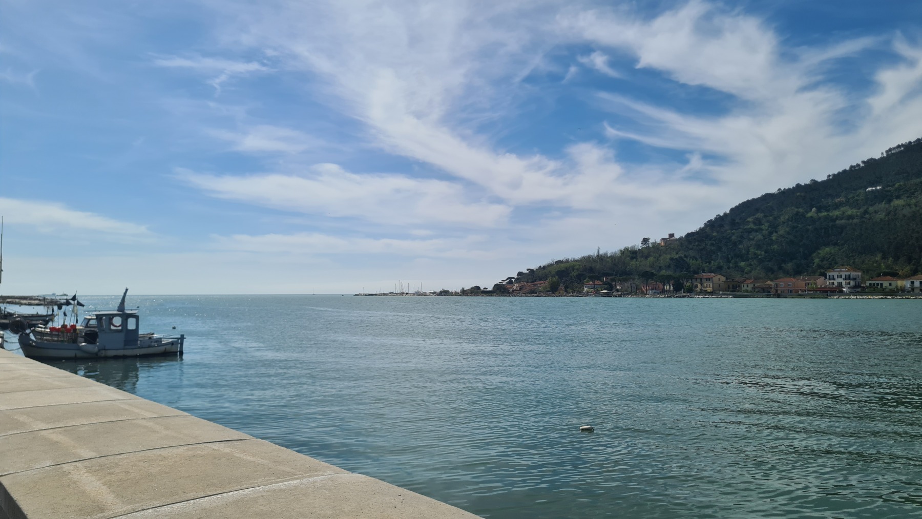 Après un peu de relief pour rejoindre la vallée de la Magra qui forme la frontière entre Ligurie et Toscane, notre itinéraire a suivi la côte pendant plus de 30 km. Une côte toscane bien différente de la Riviera ligure que nous avons suivi depuis Vintimille puisque le relief a disparu, que la côte est très rectiligne et quasiment entièrement privatisée. Nous avons donc pu suivre une belle piste cyclable, à quelques mètres de la plage sans pouvoir voir la mer cachée par les bâches vertes des plages privées !