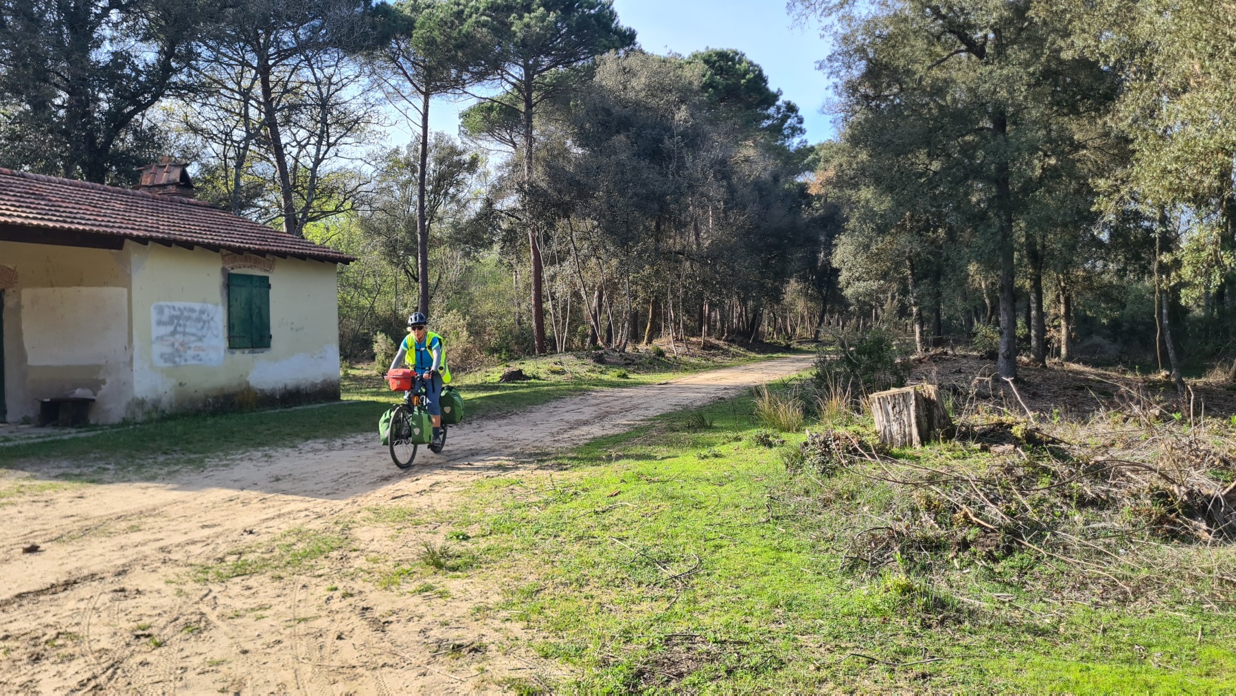 Les vingt derniers kilomètres, entre l’agréable station balnéaire de Viareggio et Pise ont été plus contrastés. Débutant idéalement sur une petite route fermée à la circulation vers la Torre del Lago Puccini nous nous sommes ensuite retrouvés sur des chemins forestiers sablonneux et boueux dans une forêt de pins avant de terminer sur la nationale.