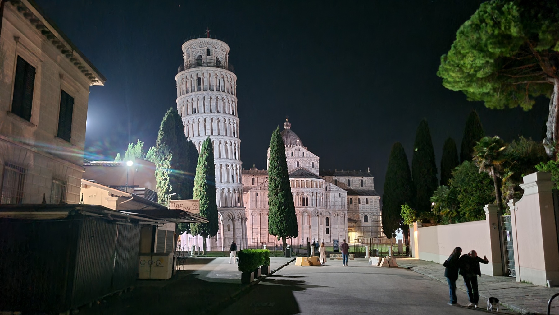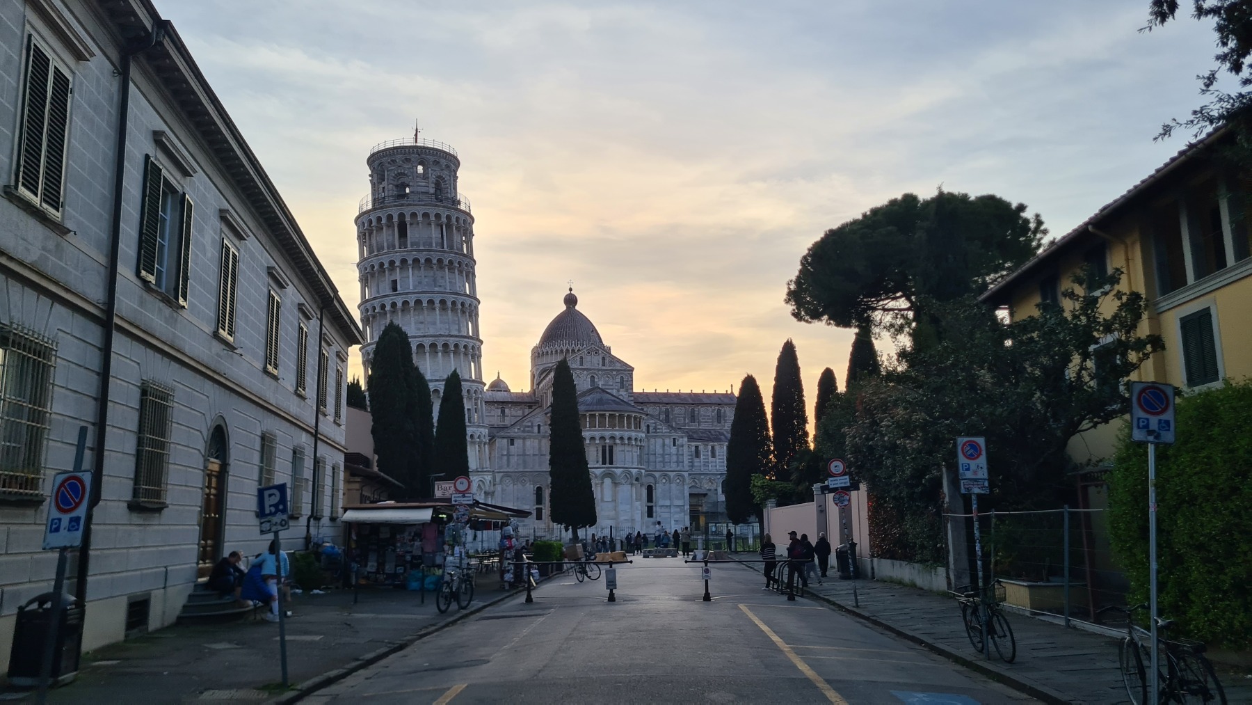 Ce soir nous campons pour la première fois du voyage. Pise dispose en effet d’un petit terrain de camping à 800m de la tour et nous avons planté la tente avant d’aller voir le site et de diner au restaurant, les moustiques nous ayant dissuadé de manger au camping !