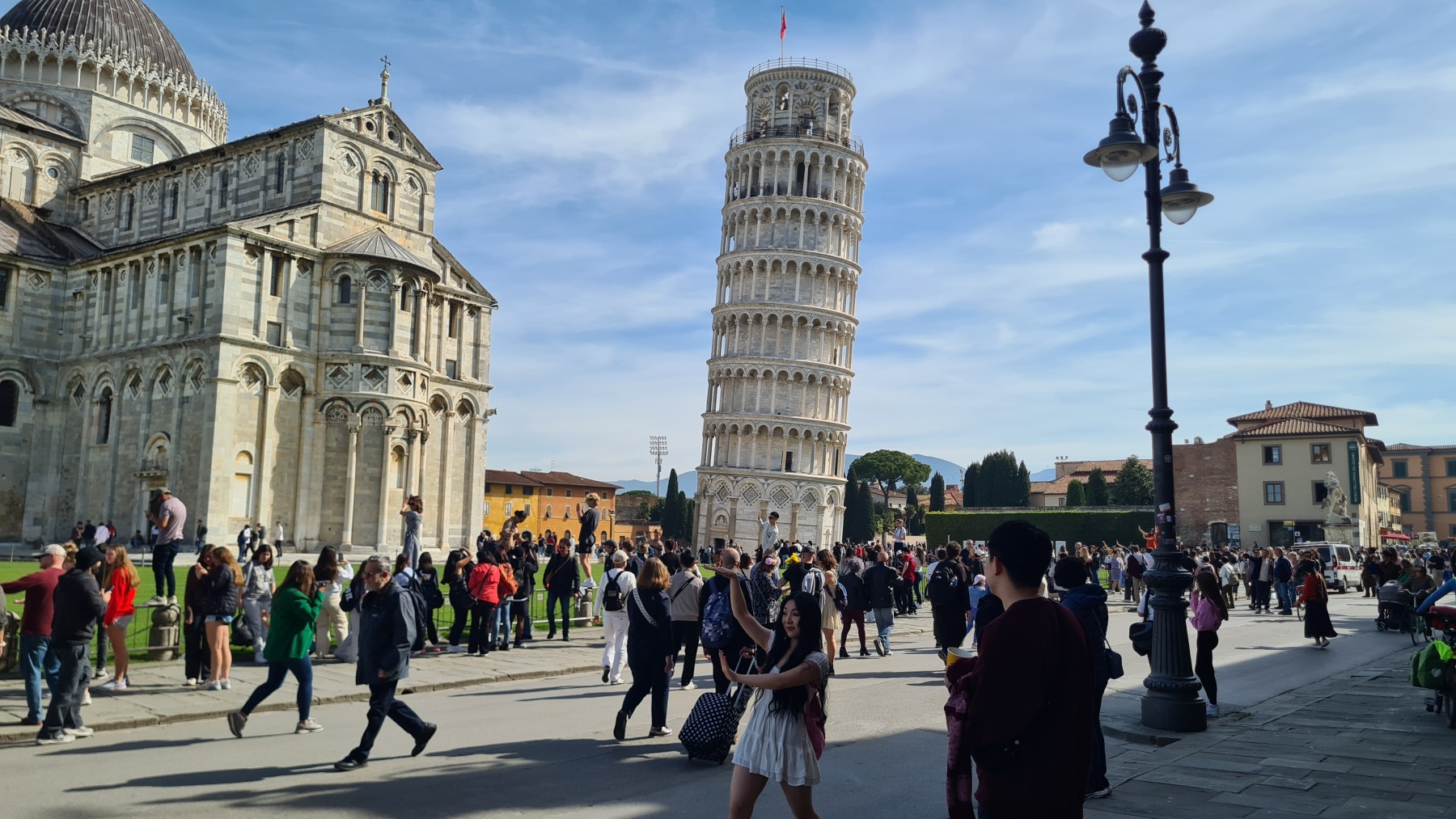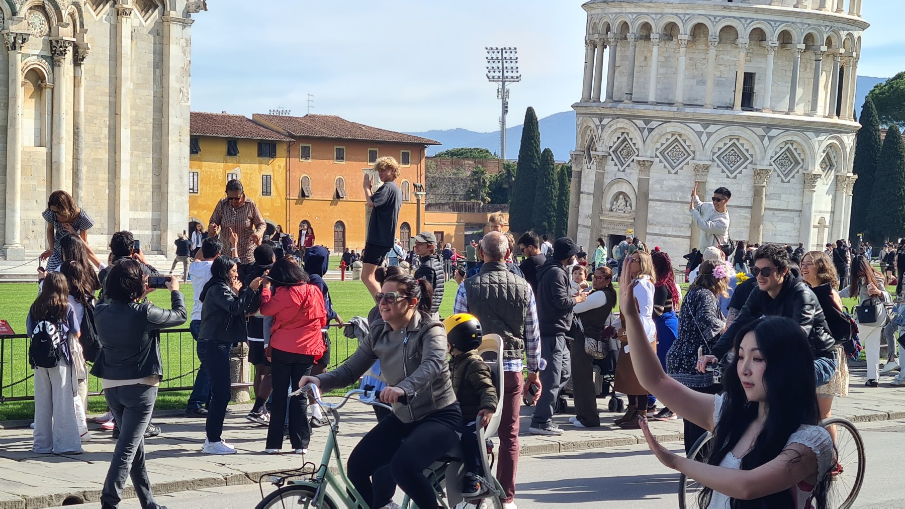 Nous avons commencé la journée par une nouvelle visite du site de la tour penchée dont une des attractions sont les touristes qui se font photographier dans des poses originales sensées les montrer en train de soutenir la tour.