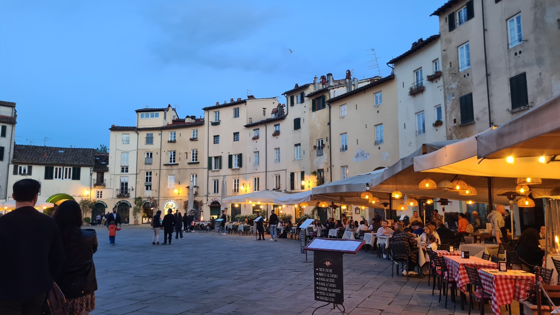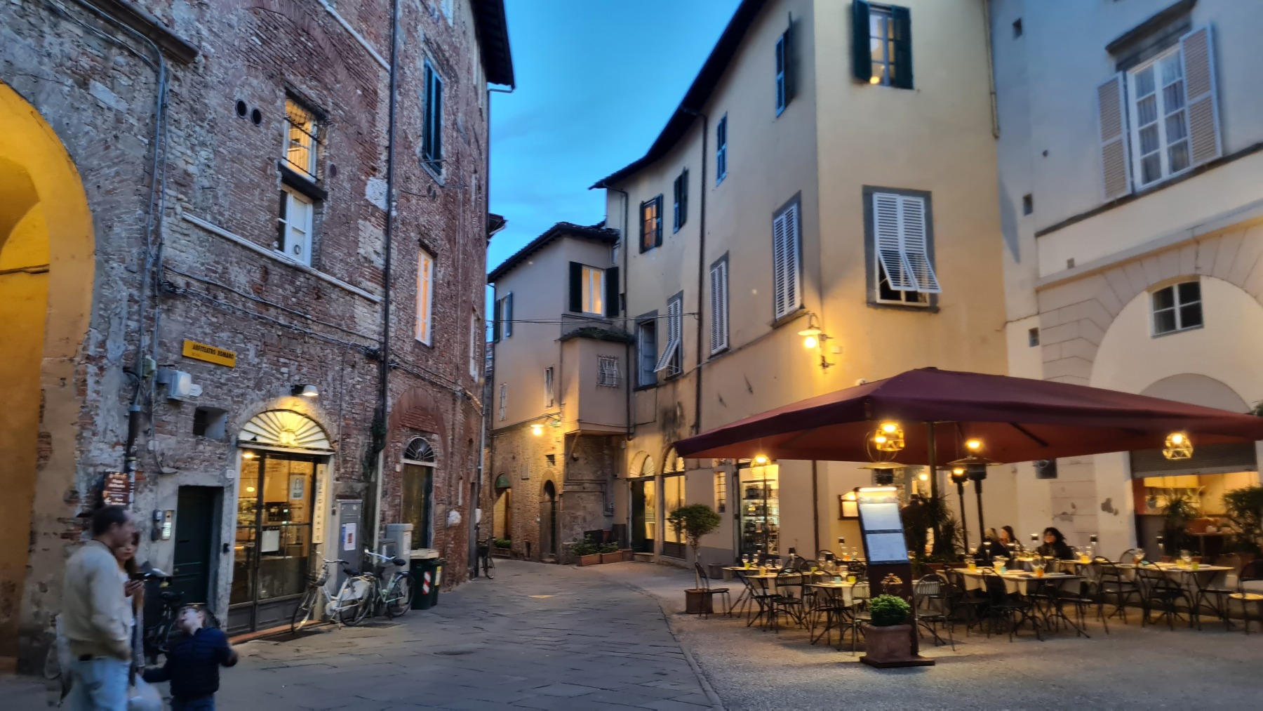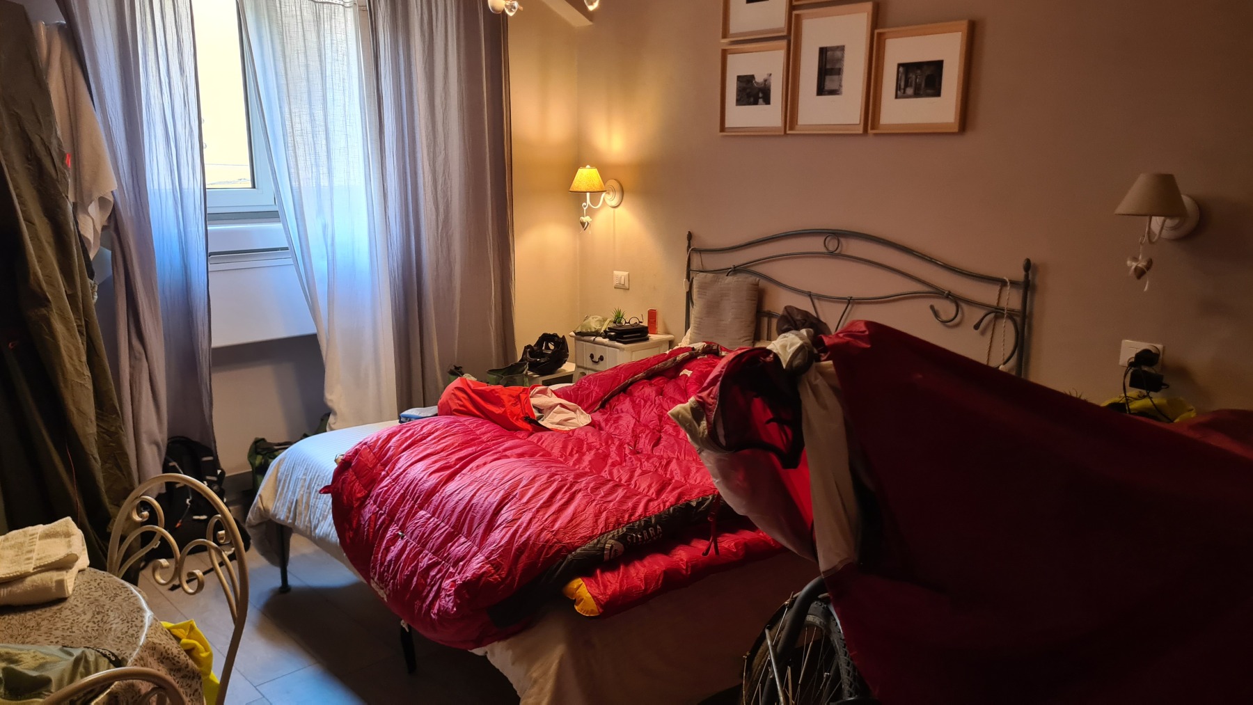 Arrivés dans le studio que nous avions loué à Lucques il ne nous a fallu que quelques minutes pour refaire la décoration à notre manière en étendant la tente et le sac de couchage que nous avions repliés encore humides et nous sommes ressortis bien vite pour explorer la ville.