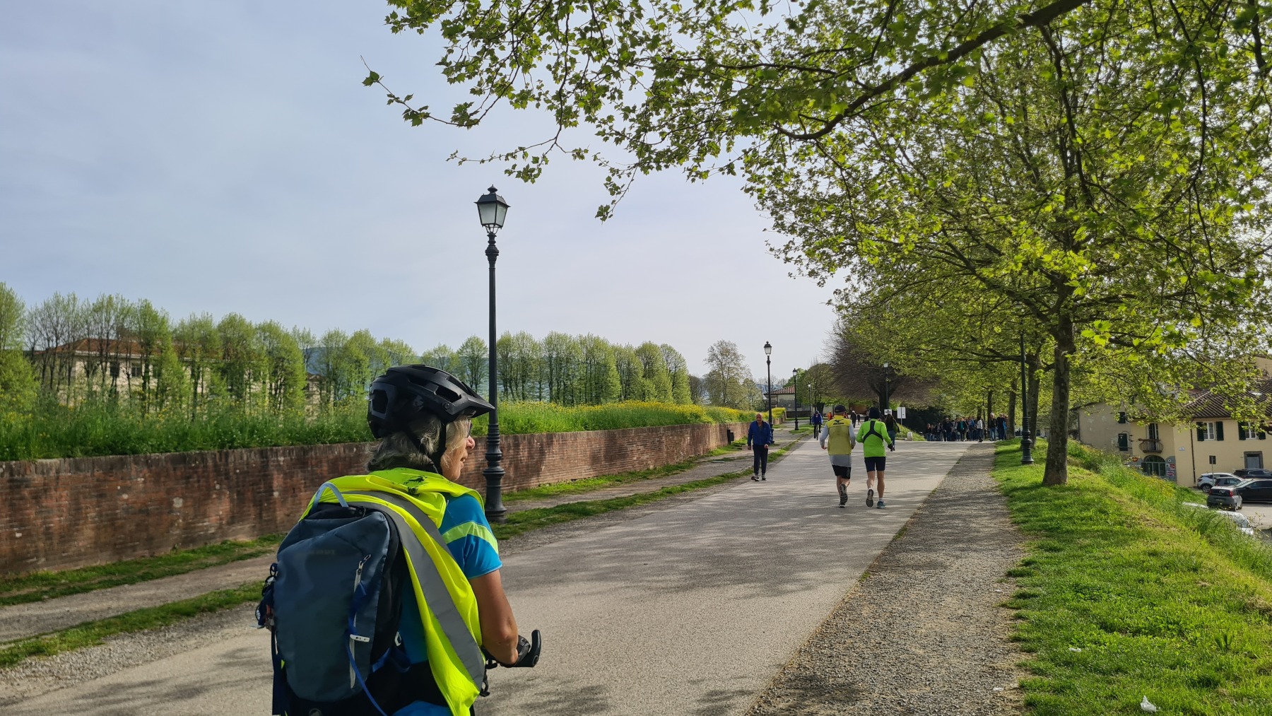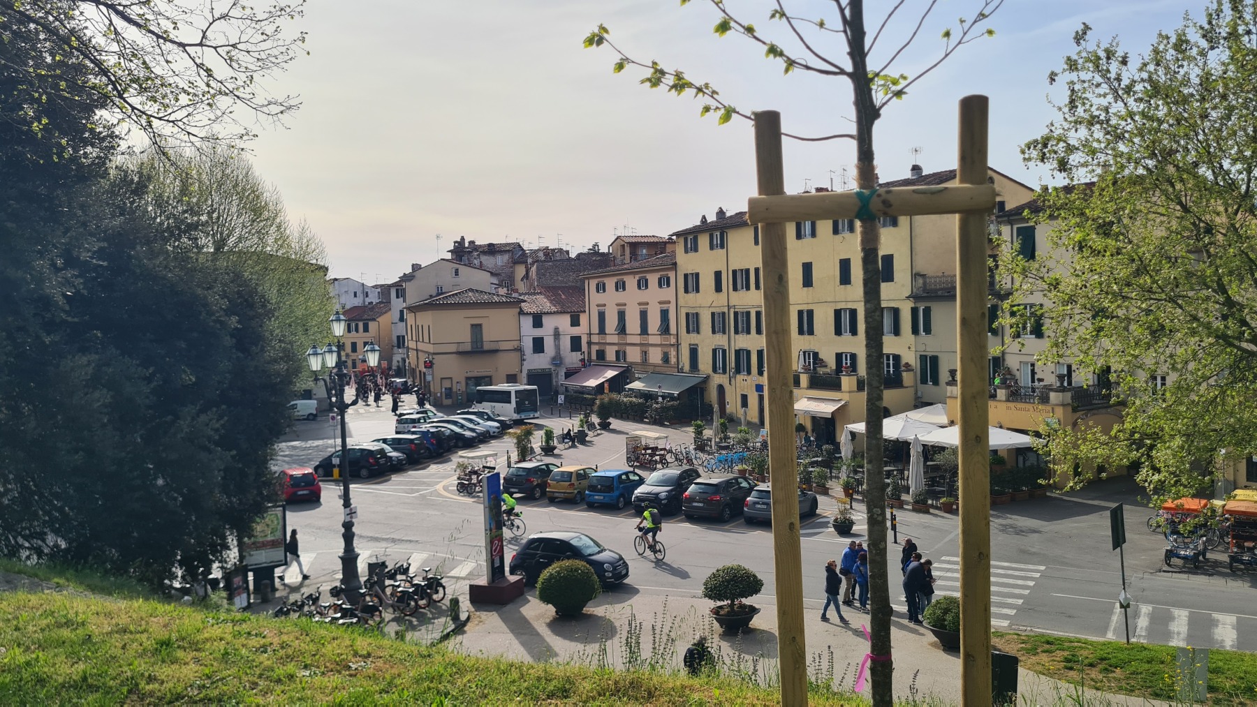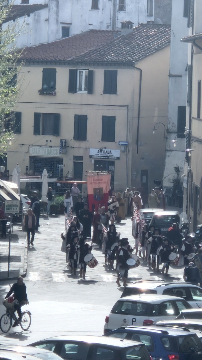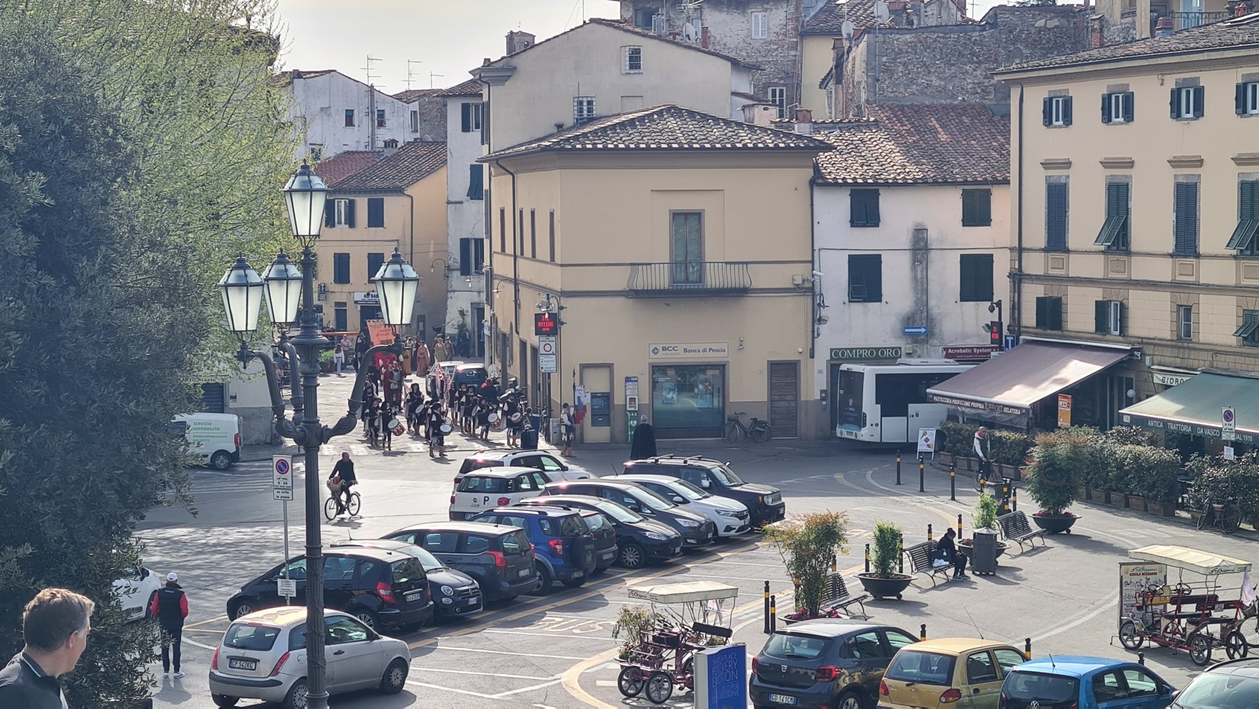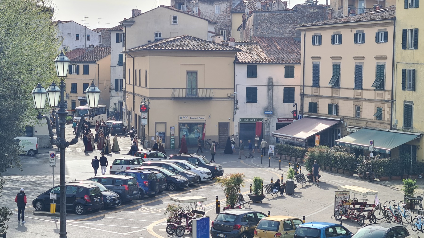 Nous avons débuté la journée par un passage sur les remparts de Lucques d’où nous avons vu la fanfare venue nous rendre hommage.
