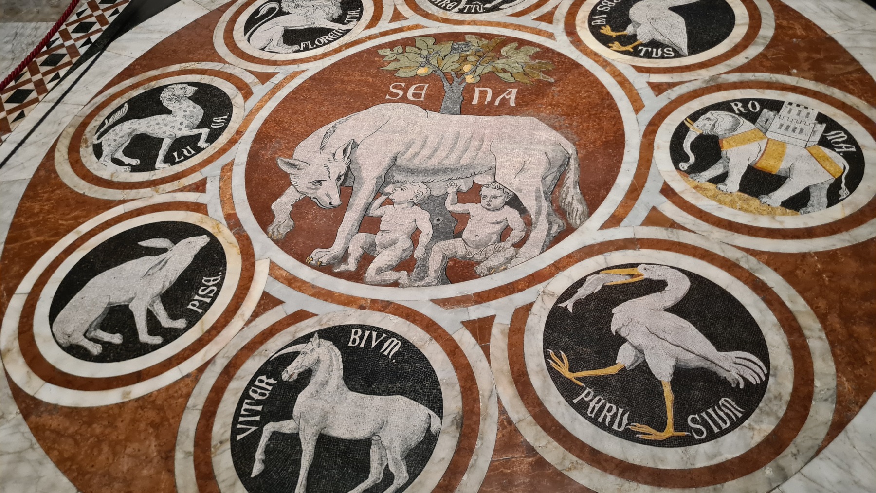 - La louve allaitant les jumeaux : c’est le symbole de Sienne et on la trouve un peu partout, souvent sous forme de statue.