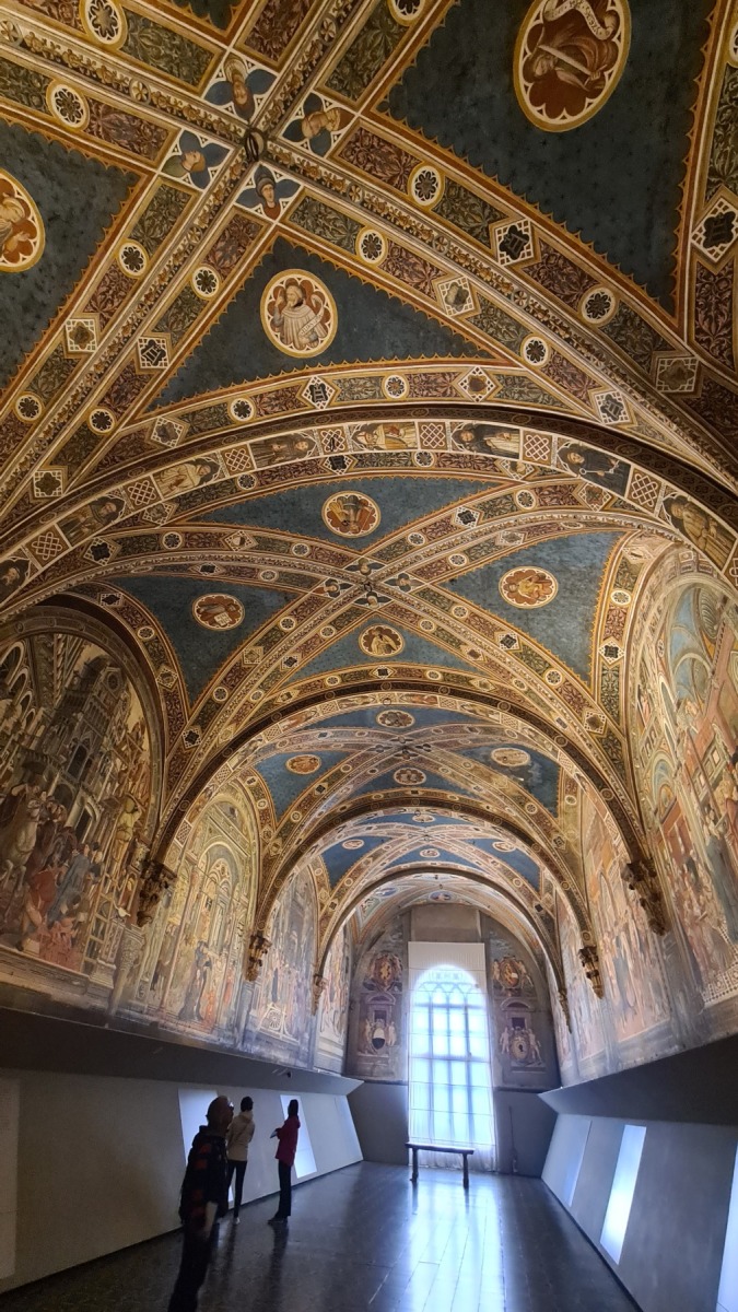Nous avons commencé par faire un tour sur la piazza del Campo et boire un café dans une rue adjacente puis avons été visiter la cathédrale et le très intéressant hôpital Santa Maria della Scala. Après le déjeuner, retour à la piazza del Campo pour visiter le museo civico hébergé dans le palazzo pubblico. Le soleil faisant son retour, nous avons marché jusqu’à la basilique San Clemente puis au jardin de l’Orto dei Pecci. Sur le chemin du retour nous avons terminé par la pinacothèque nationale de Sienne.
