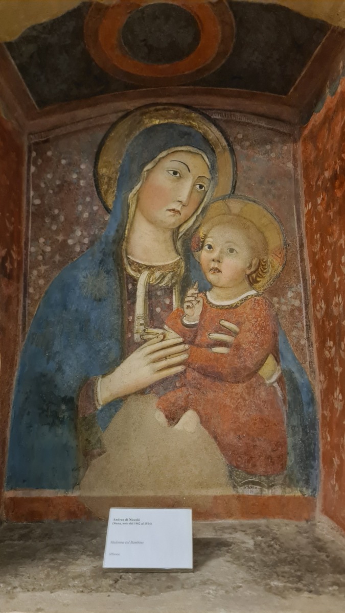- La madonna col bambino (la Vierge à l’enfant) : Sienne s’est placée sous la protection de la Vierge, elle est omniprésente dans les églises et les tous musées et le plus souvent représentée avec son enfant au point que nous avons eu l’impression que c’était le thème de plus de la moitié des tableaux que nous avons vu.