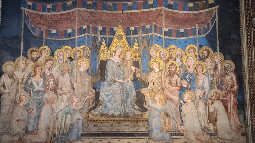- Sainte Catherine de Sienne : c’est la patronne de Sienne et on la trouve sur de nombreux tableaux, y compris parfois à côté de la Vierge à l’enfant !