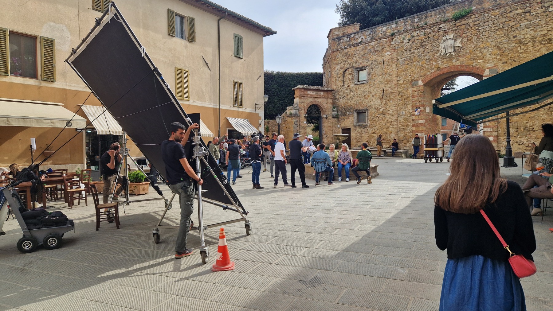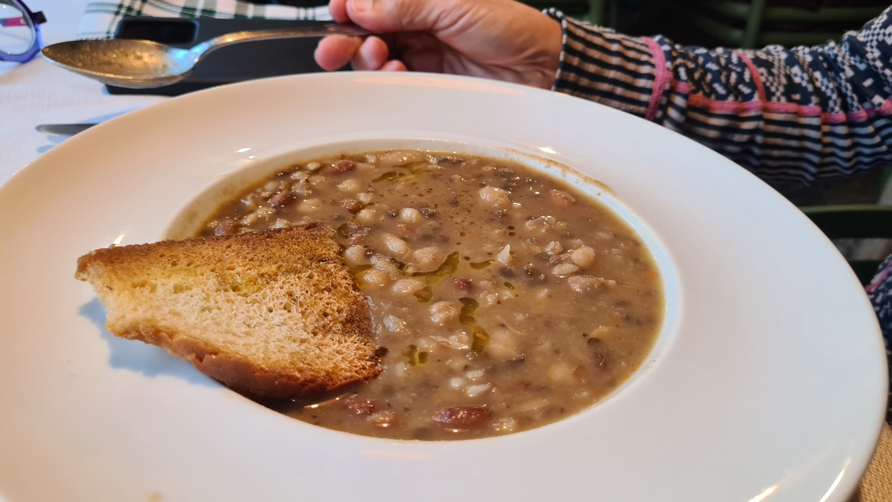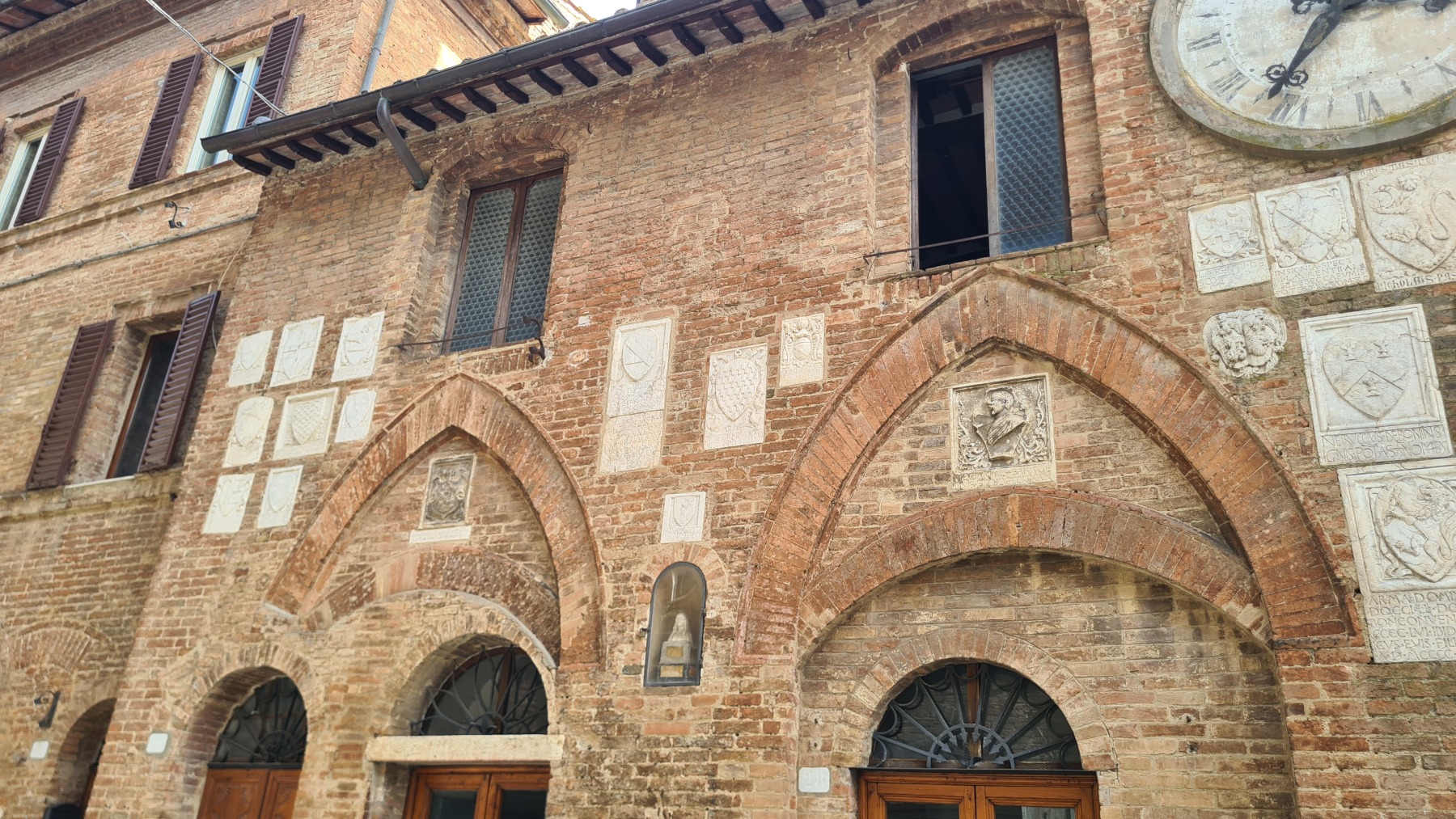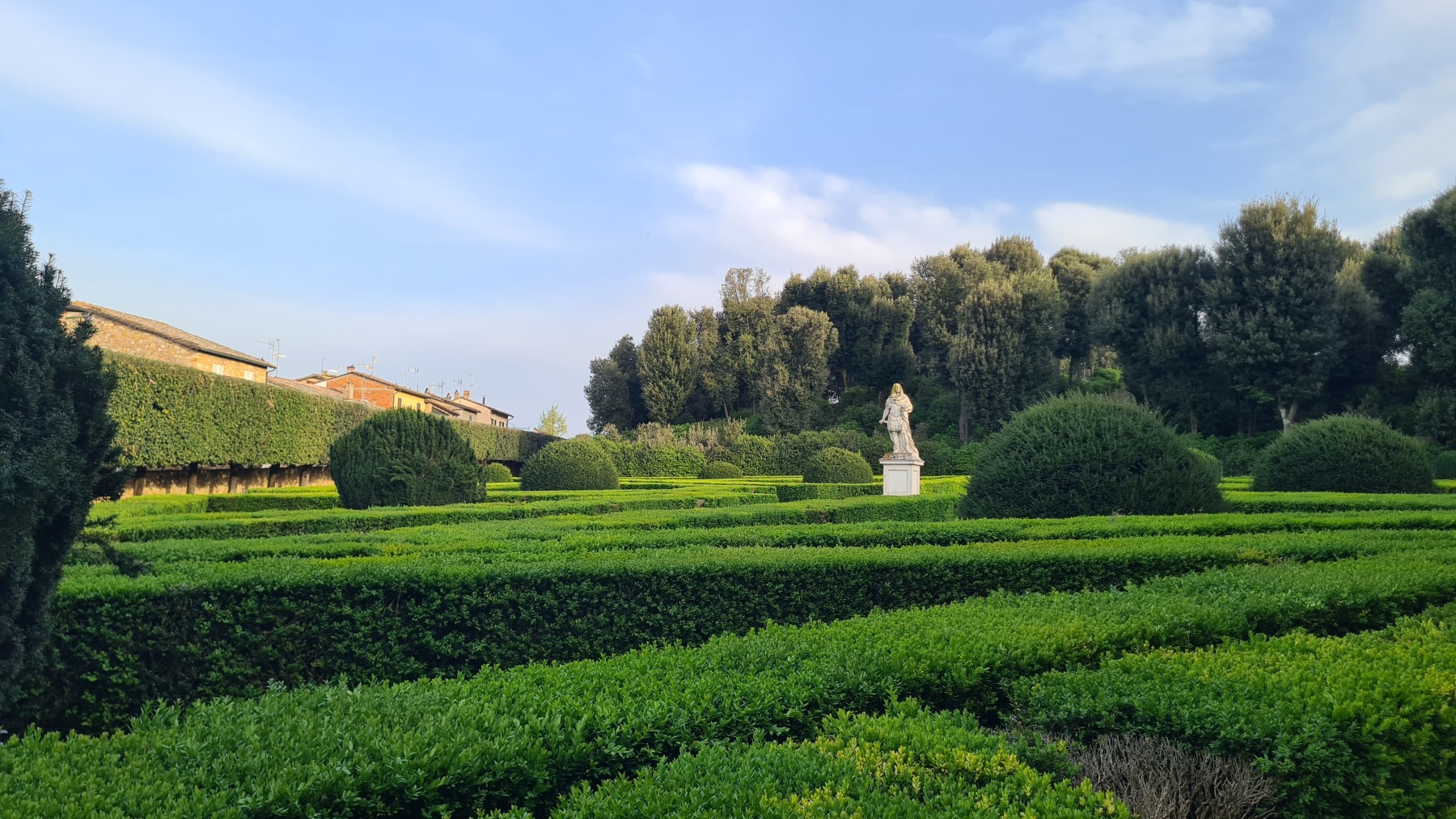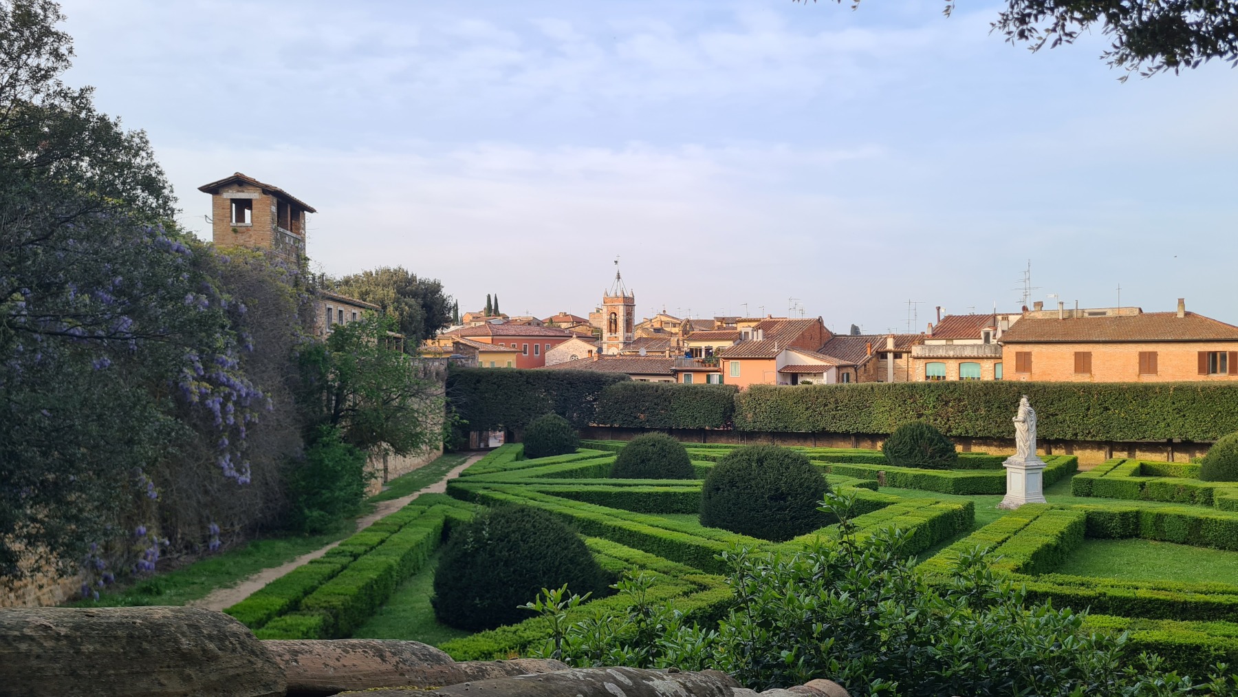 Sur cette étape entre Sienne et San Quirico, la Via Francigena évite la nationale en cheminant dans les collines du Val d’Arbia et du Val d’Orcia ce qui explique ce dénivelé. Les paysages n’en sont que plus beaux mais la progression est rendue plus difficile par le fait que l’itinéraire emprunte beaucoup de pistes gravillonnées et que les pentes sont parfois si raides que le vélo patine et que même en le poussant on dérape facilement. Mon genou apprécie d’ailleurs peu l’exercice de poussée de vélo et j’ai du mettre ma genouillère pour le soulager.