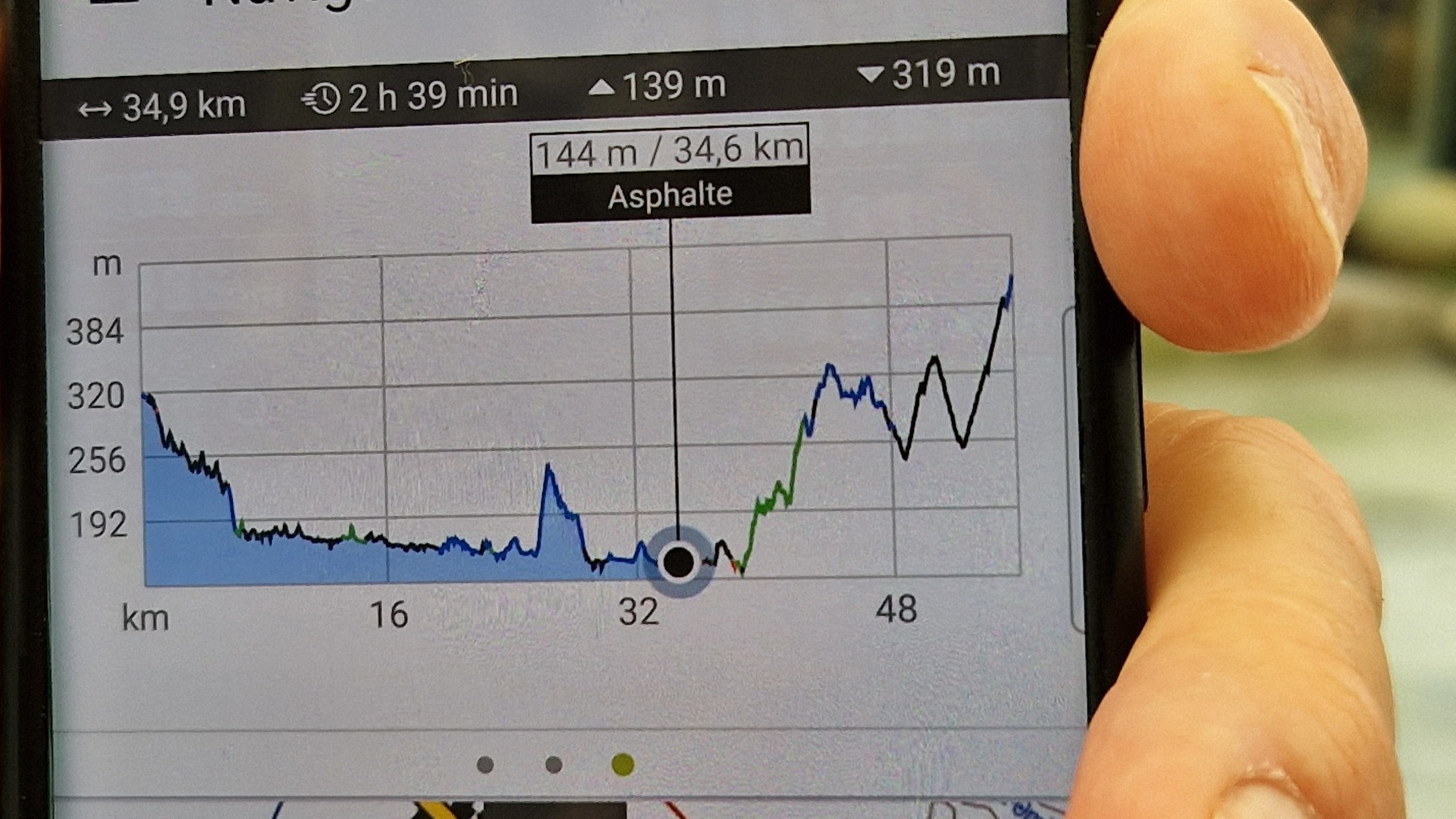 Encore une journée relativement courte en distance (55 km) mais non négligeable en dénivelé (outdooractive indique 560 m de dénivelé positif et mon application 875 ce qui semble plus vraisemblable que les 923 m calculés plus bas).