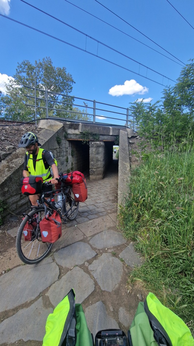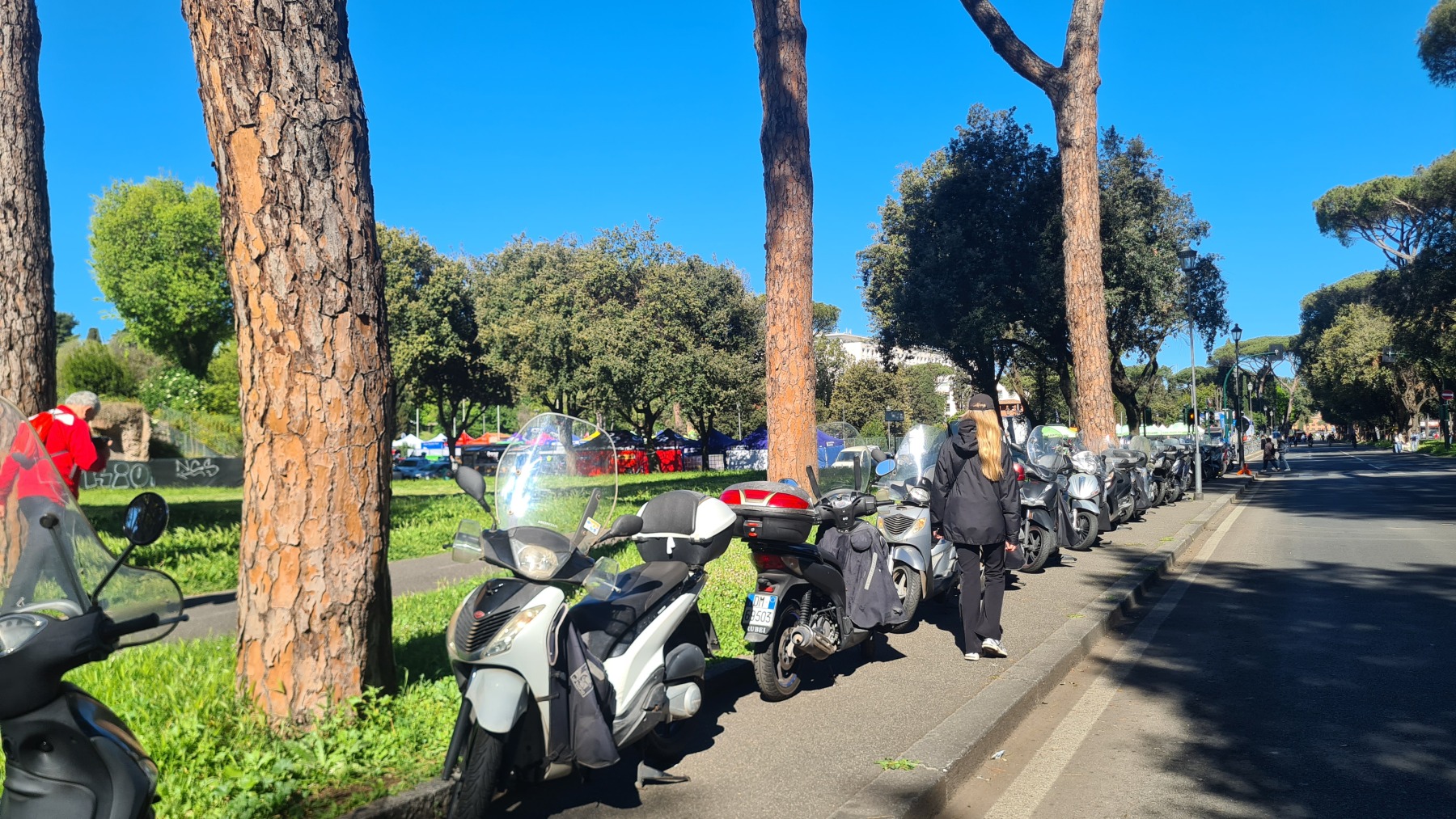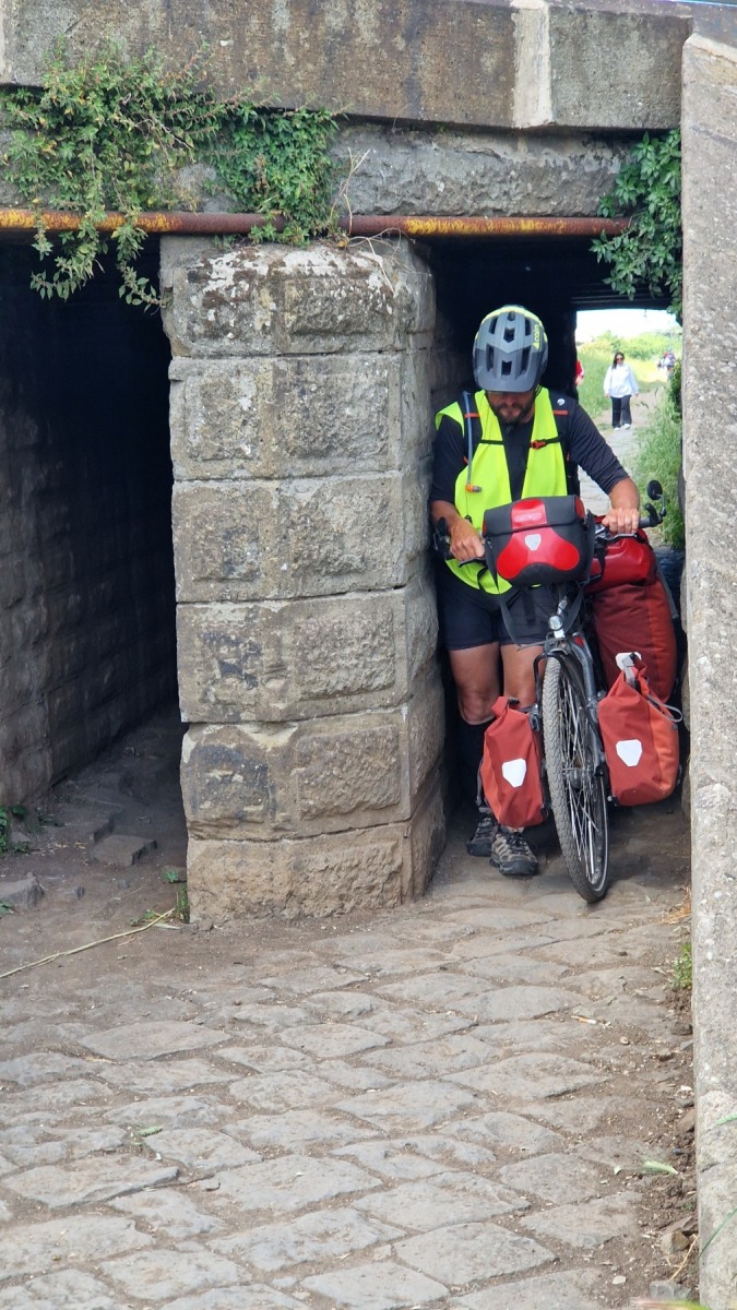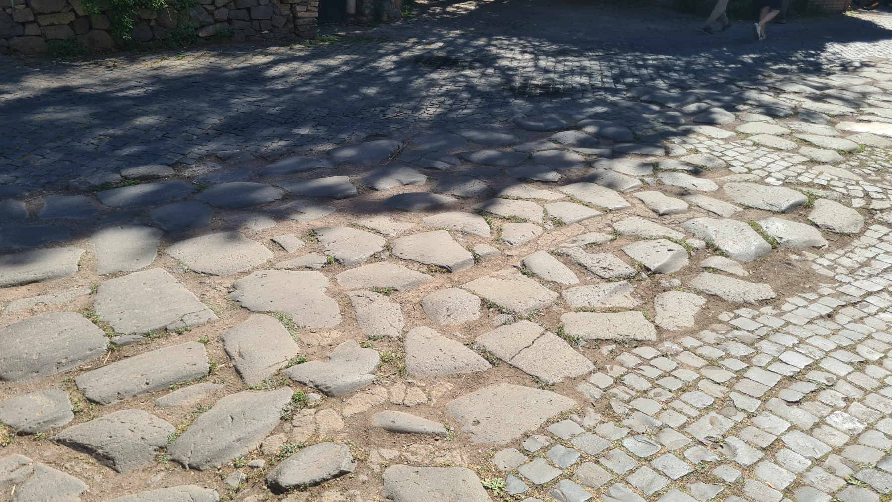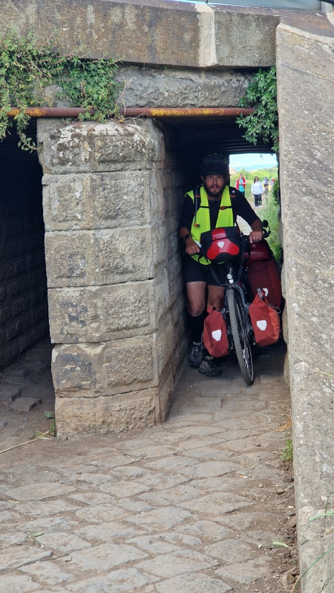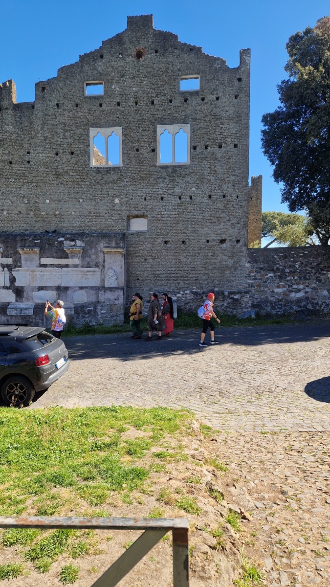 Nous avions déjà fait l’expérience des dalles de basalte bombées qui recouvraient les voies romaines et savions que la Voie Appienne ne serait pas de tout confort avec nos vélos et nous avions prévue l’étape en conséquence. Nous étions aussi rassurés de quitter Rome un dimanche, jour où il devrait y avoir moins de circulation qu’en semaine. Ce que nous n’avions pas prévu en revanche c’est que le 21 avril était le jour de l’Appia Run 2024 et que nous ne serions pas seuls sur les premiers kilomètres de la Via Appienne ! Après un peu de négociation nous avons tout de même pu nous mêler aux participants et passer avec nos vélos…