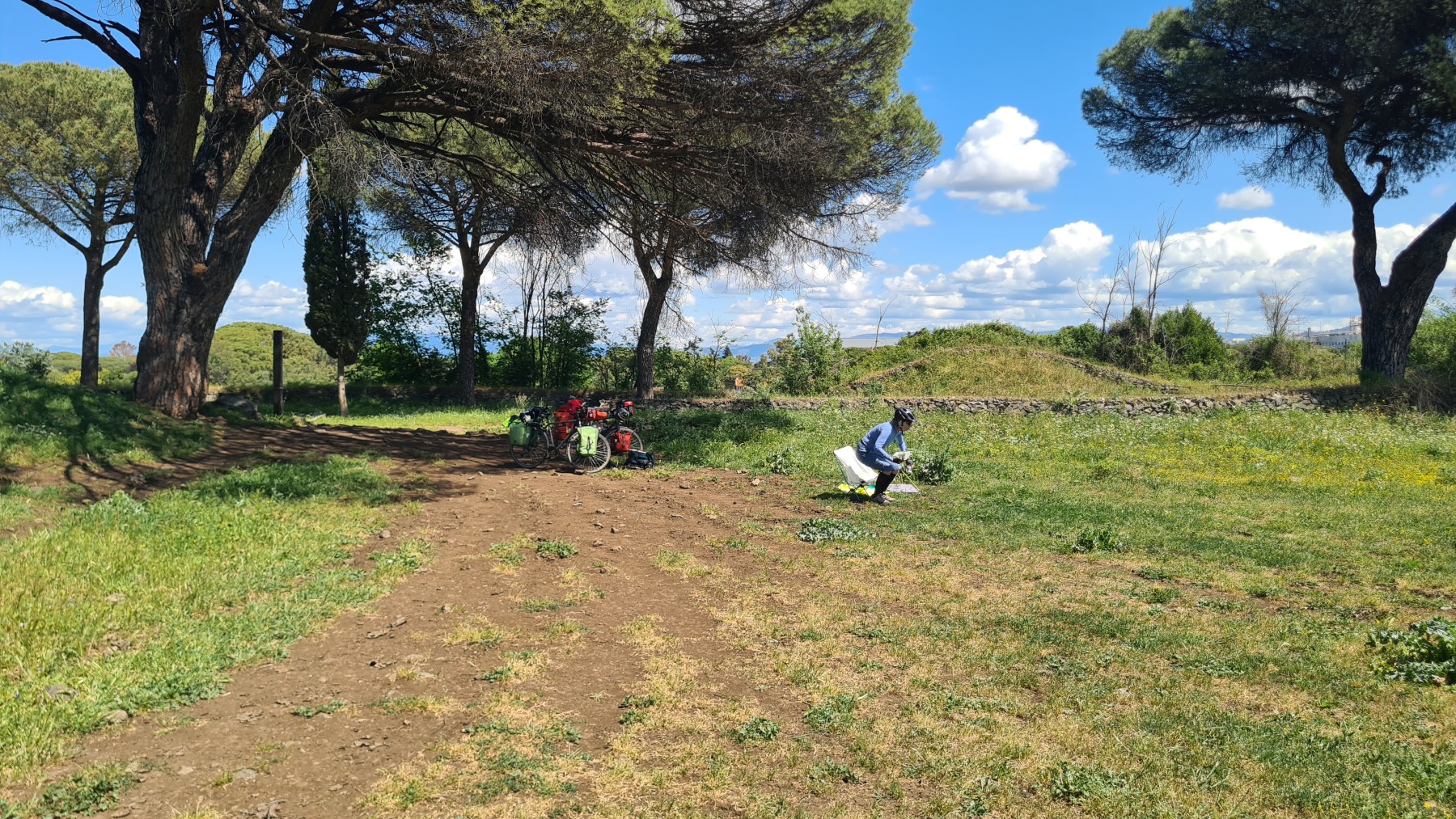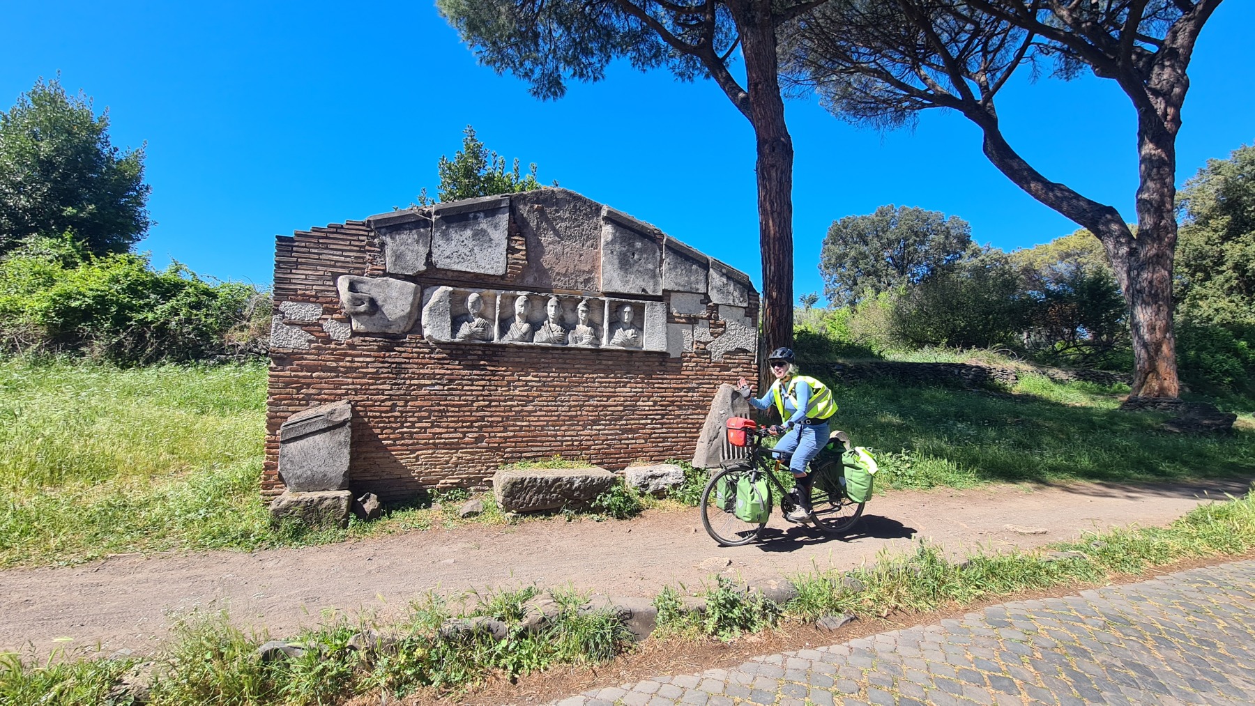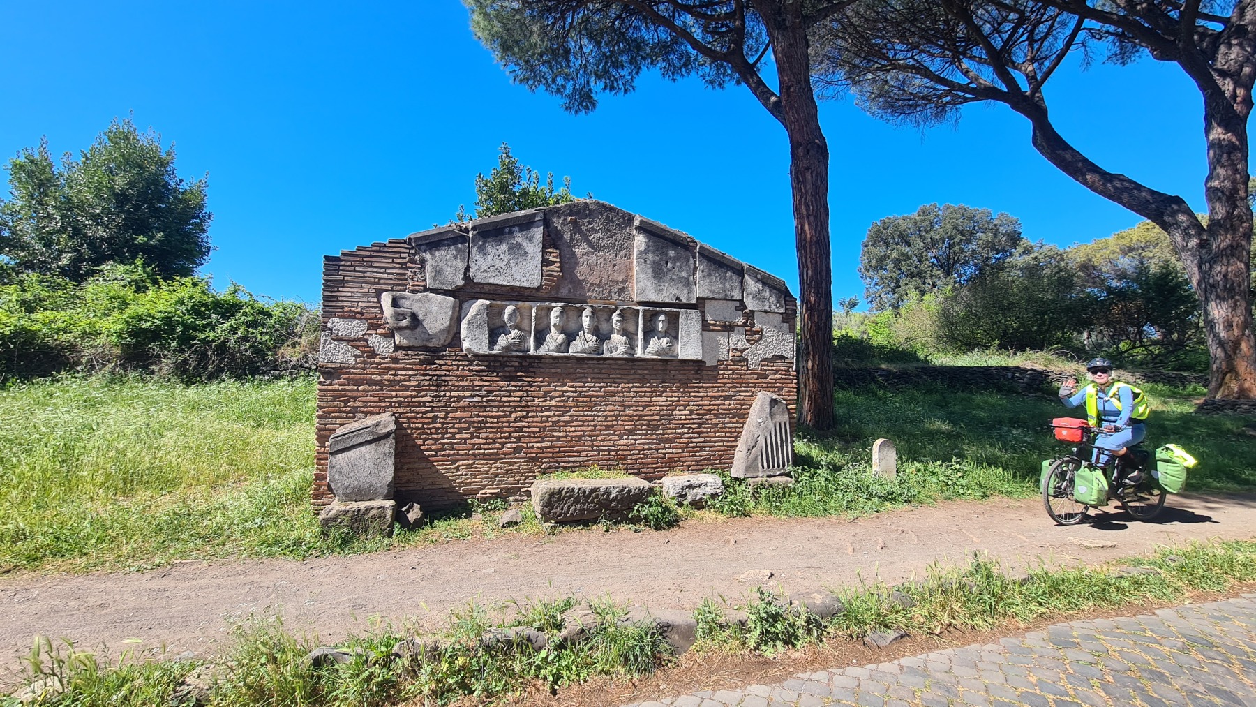 Bien que la Voie Appienne ne soit pas vraiment adaptée à nos vélos chargés (les œufs du picnic en ont souffert), c’est une promenade vraiment extraordinaire avec les monuments qui la jalonnent un peu partout.