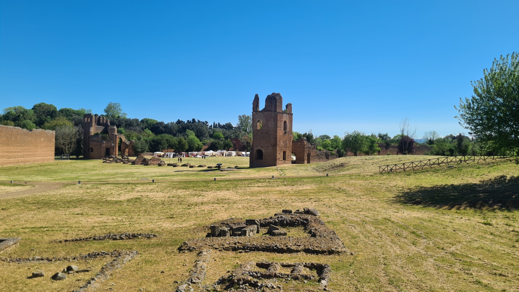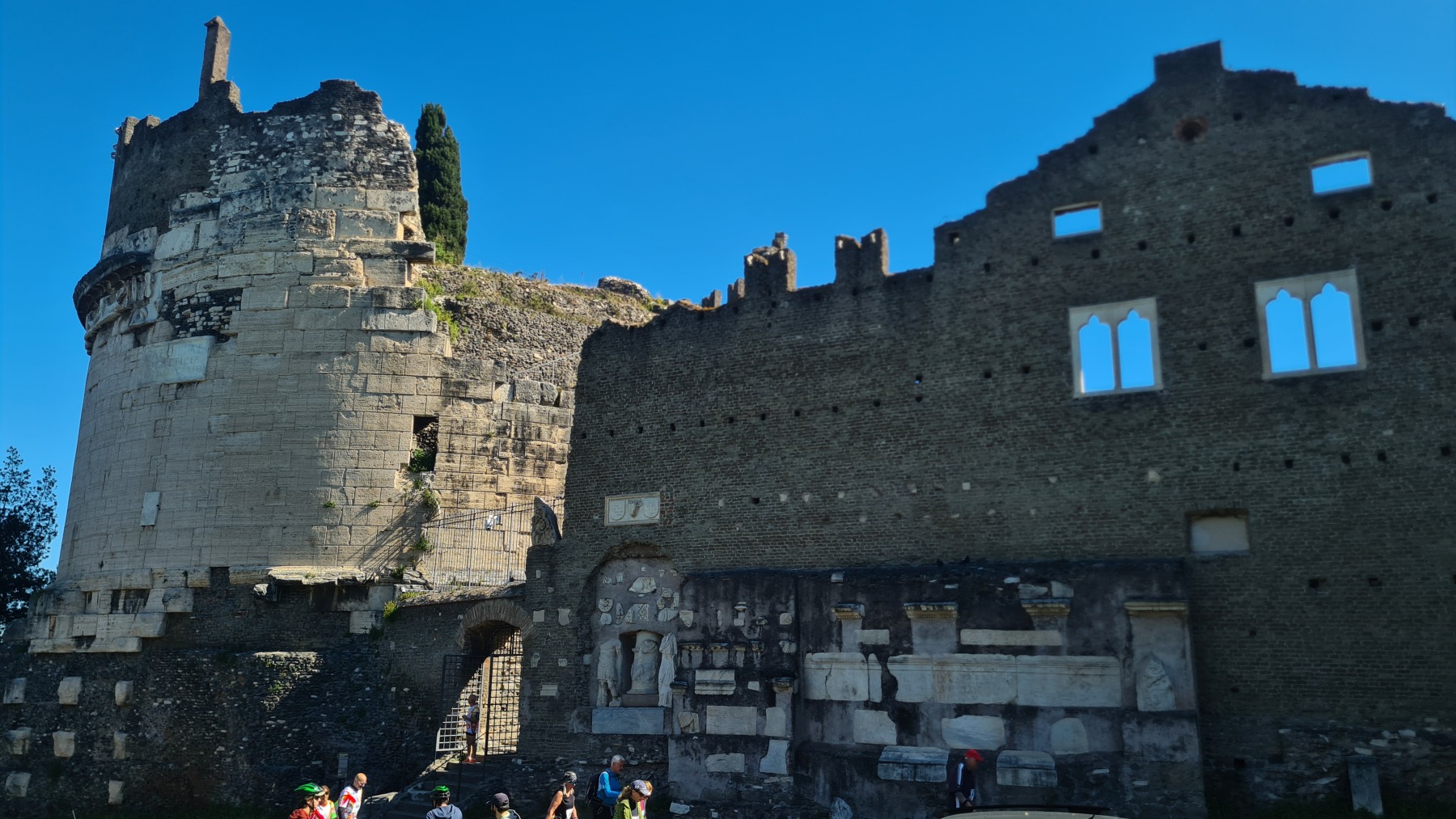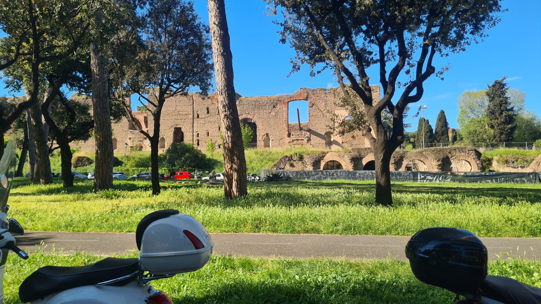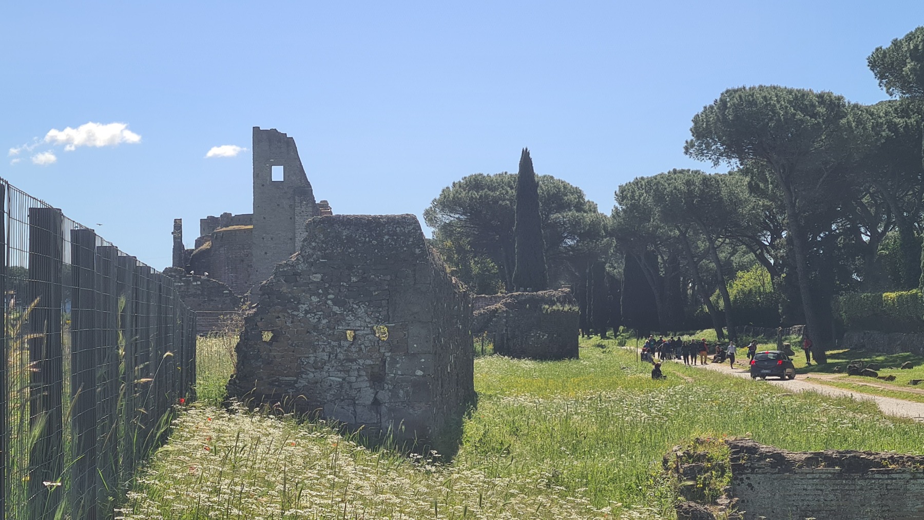 Bien que la Voie Appienne ne soit pas vraiment adaptée à nos vélos chargés (les œufs du picnic en ont souffert), c’est une promenade vraiment extraordinaire avec les monuments qui la jalonnent un peu partout.