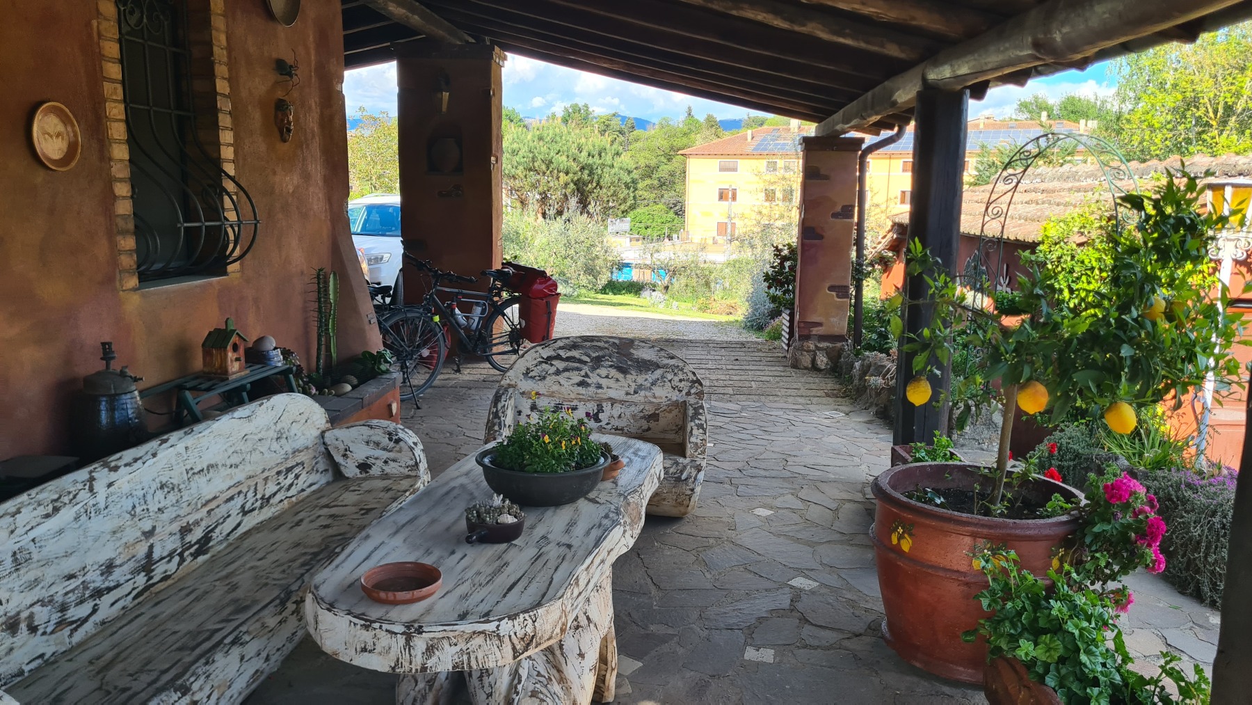 La suite du parcours, sur route, a été plus sinueux et vallonné puisque nous avons commencé à grimper sur les montagnes qui entourent Rome avant d’arriver à l’étape dans une petite maison bien accueillante.