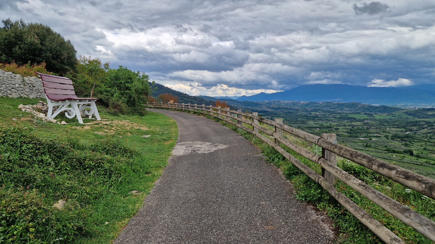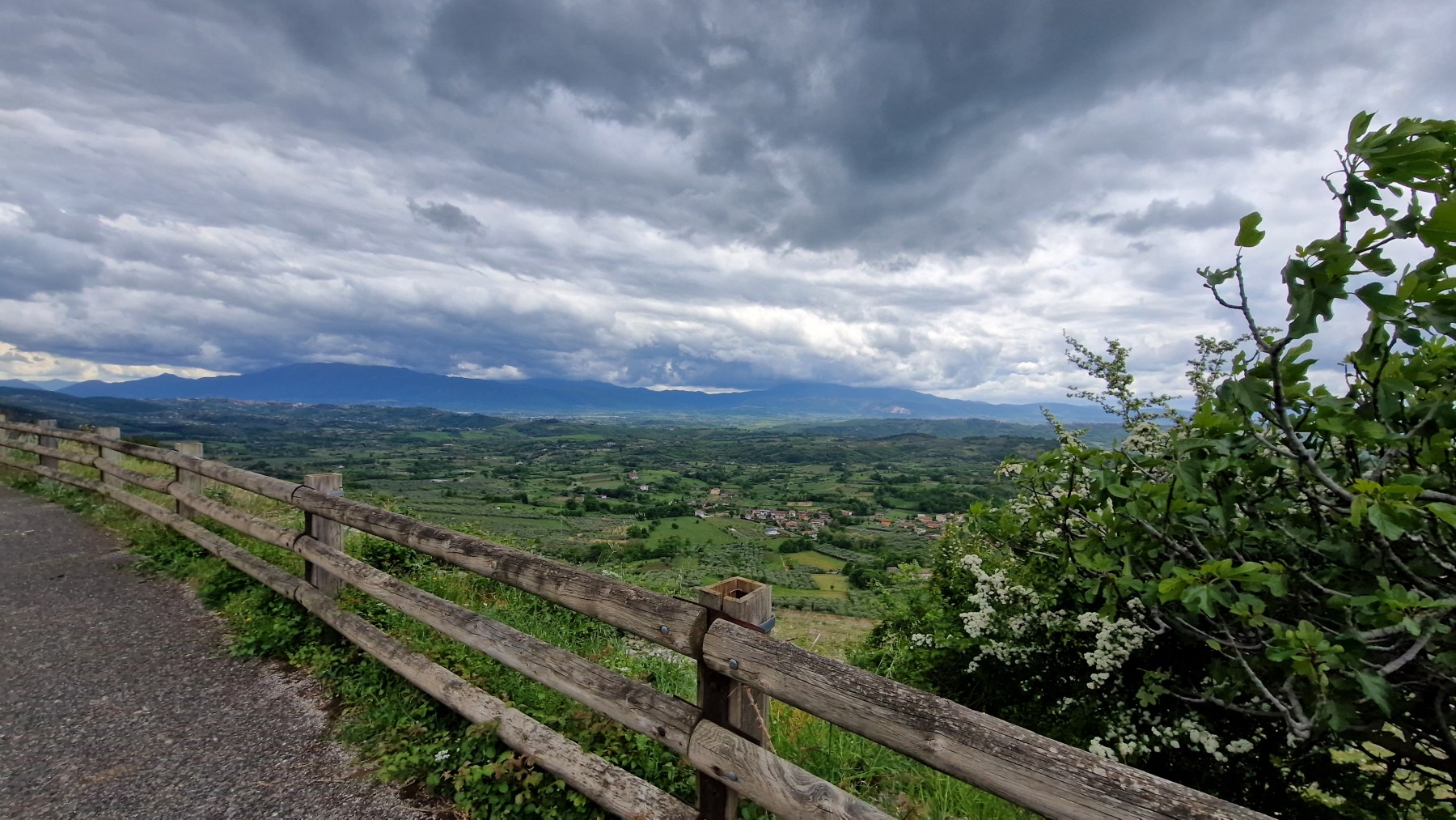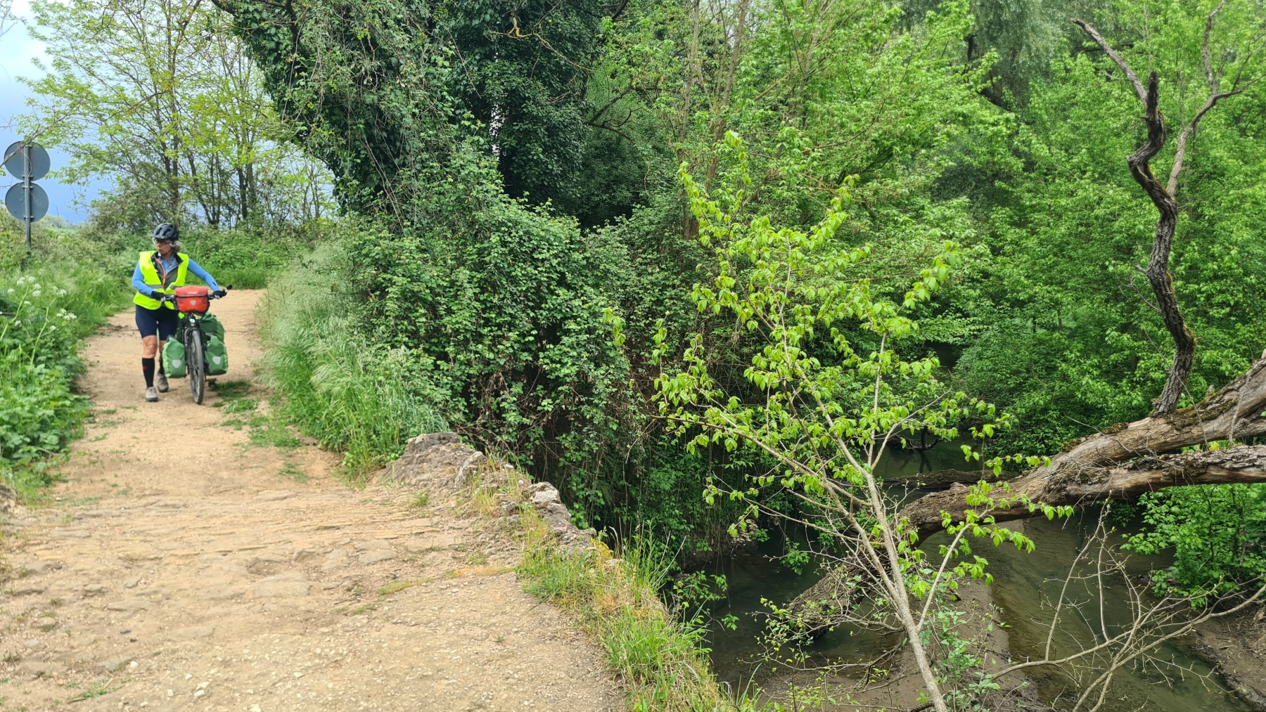 Nous avons suivi les traces Eurovelo 5 et avons été plutôt agréablement surpris : nous avons largement évité les routes à grandes circulation, les chemins de terre que nous avons emprunté étaient plutôt roulants et nous n’avons pas du pousser les vélos trop souvent et nous avons même terminé par 25 km d’une piste cyclable en plutôt bon état qui montait en balcon avec de superbes paysages.