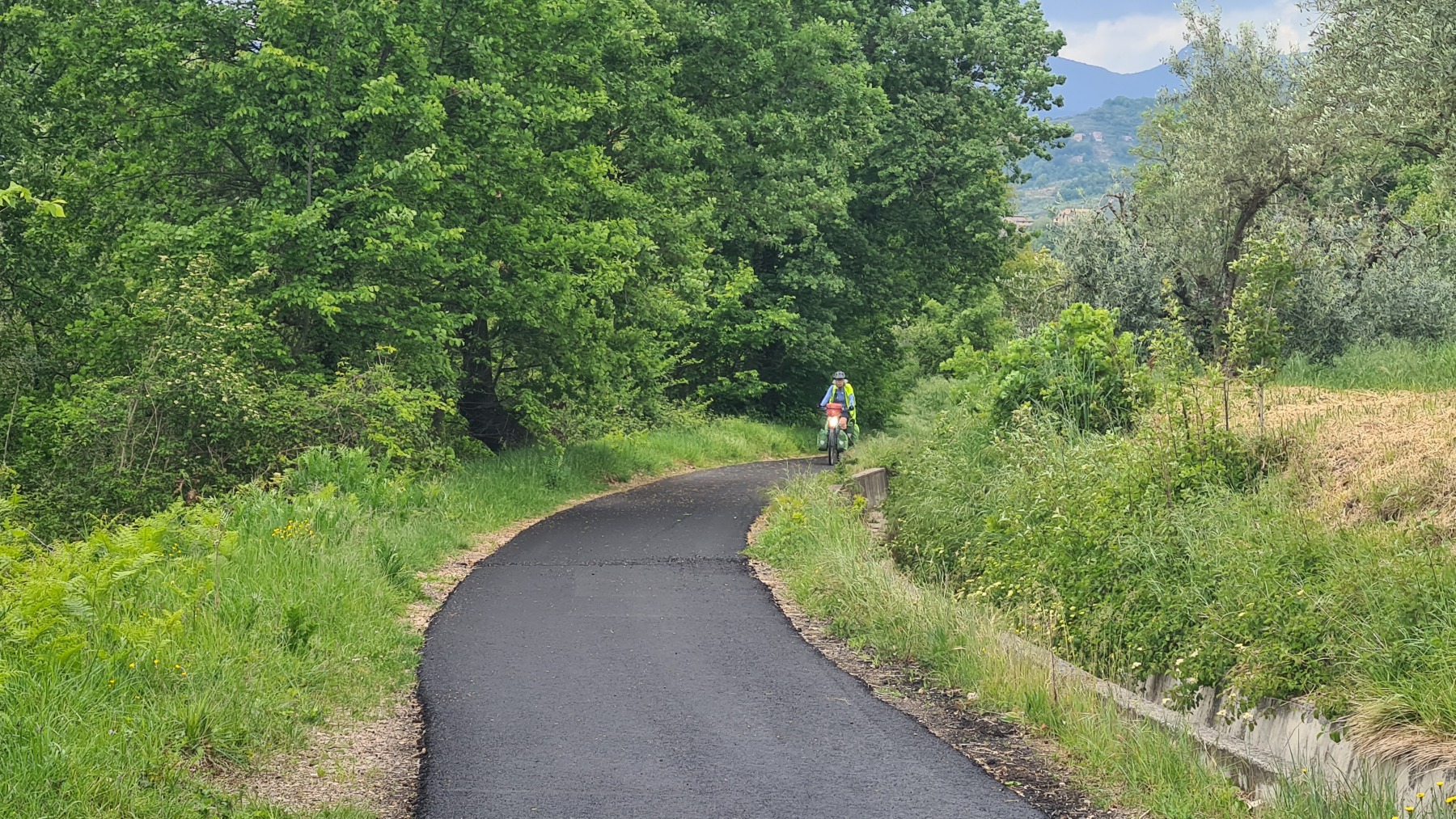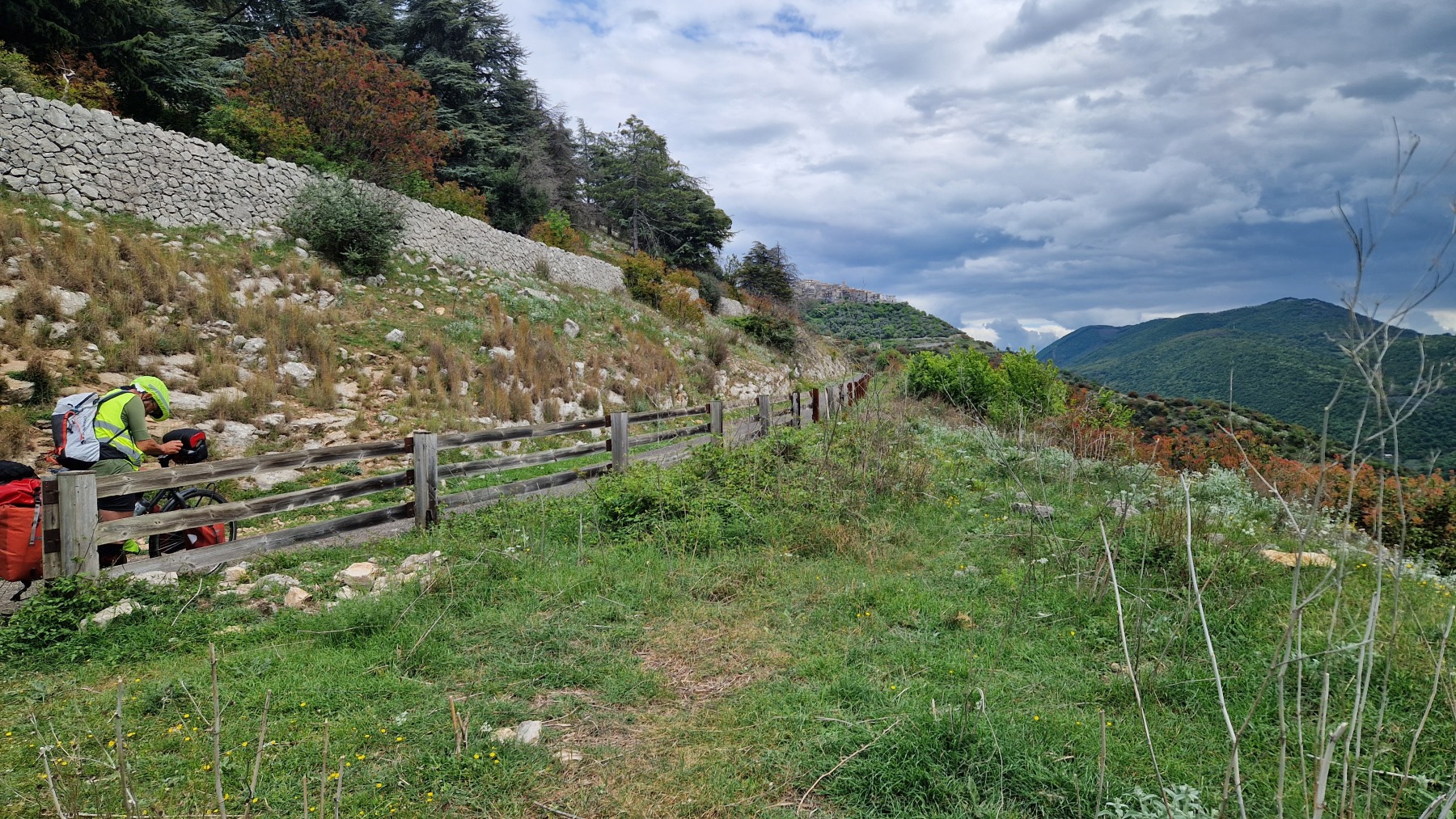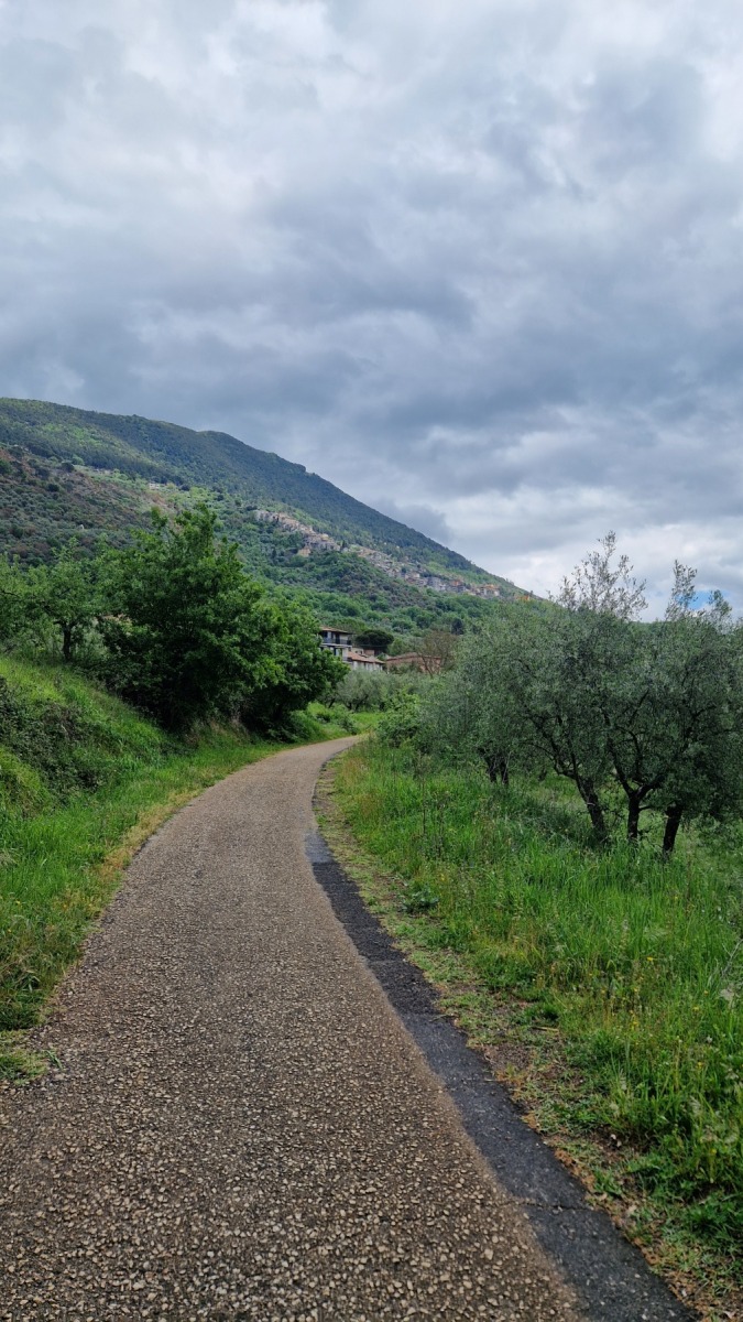 Nous avons suivi les traces Eurovelo 5 et avons été plutôt agréablement surpris : nous avons largement évité les routes à grandes circulation, les chemins de terre que nous avons emprunté étaient plutôt roulants et nous n’avons pas du pousser les vélos trop souvent et nous avons même terminé par 25 km d’une piste cyclable en plutôt bon état qui montait en balcon avec de superbes paysages.