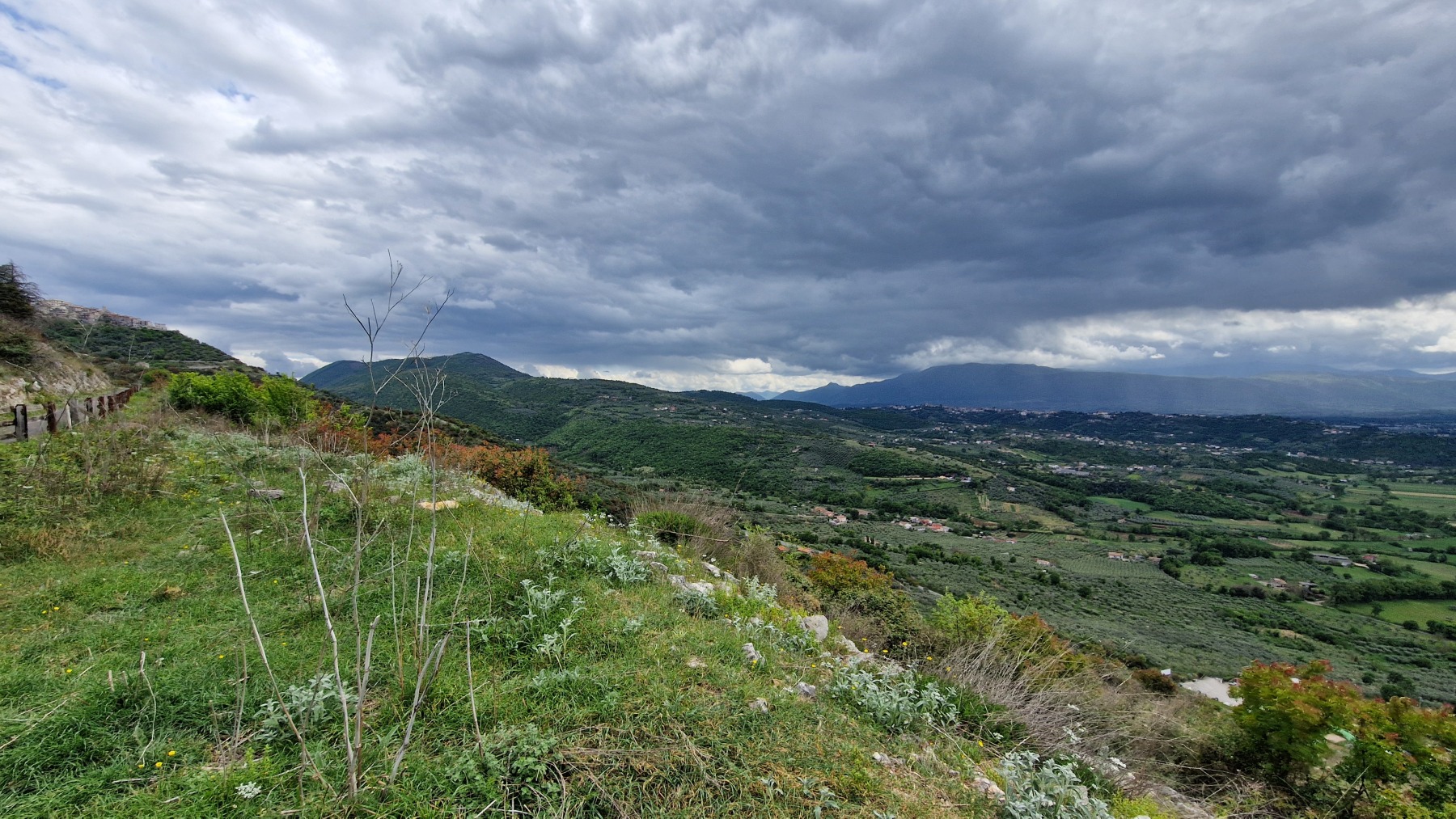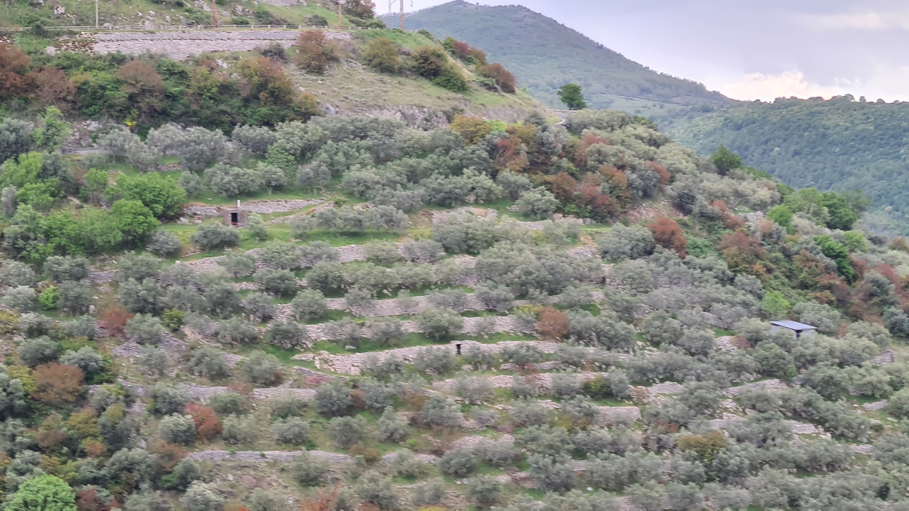 Ce matin nous étions plutôt en fond de vallée et la végétation, très verte faisait d’avantage penser à la Normandie qu’à l’idée que j’avais du sud de l’Italie ! Cet après midi, par contre en prenant un peu de hauteur, les cultures d’oliviers en terrasse étaient typiquement méditerranéens…
