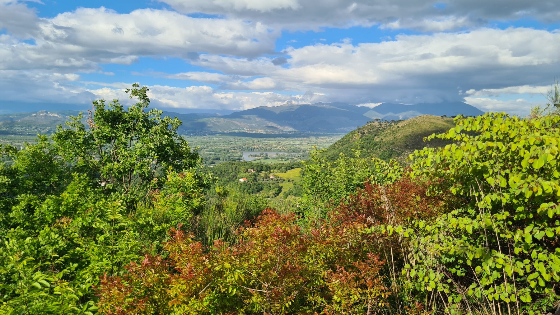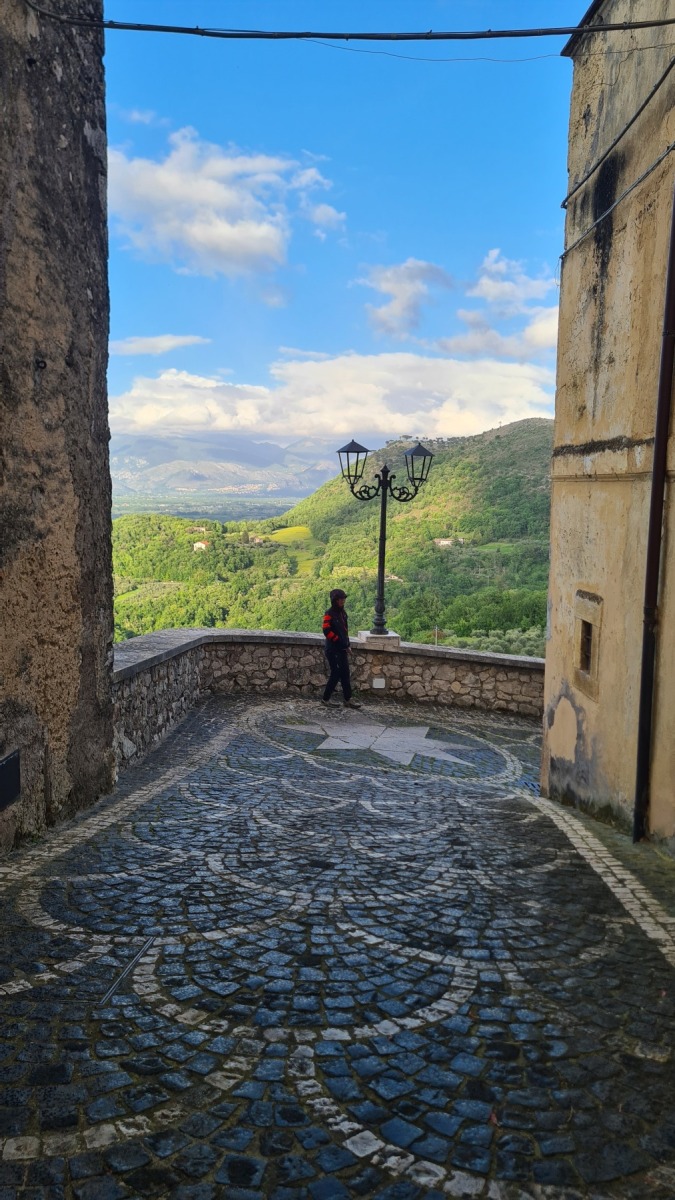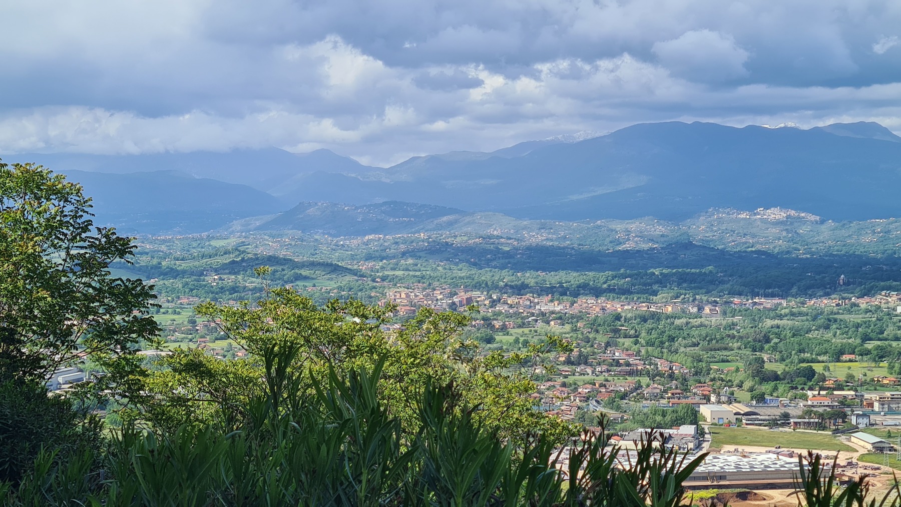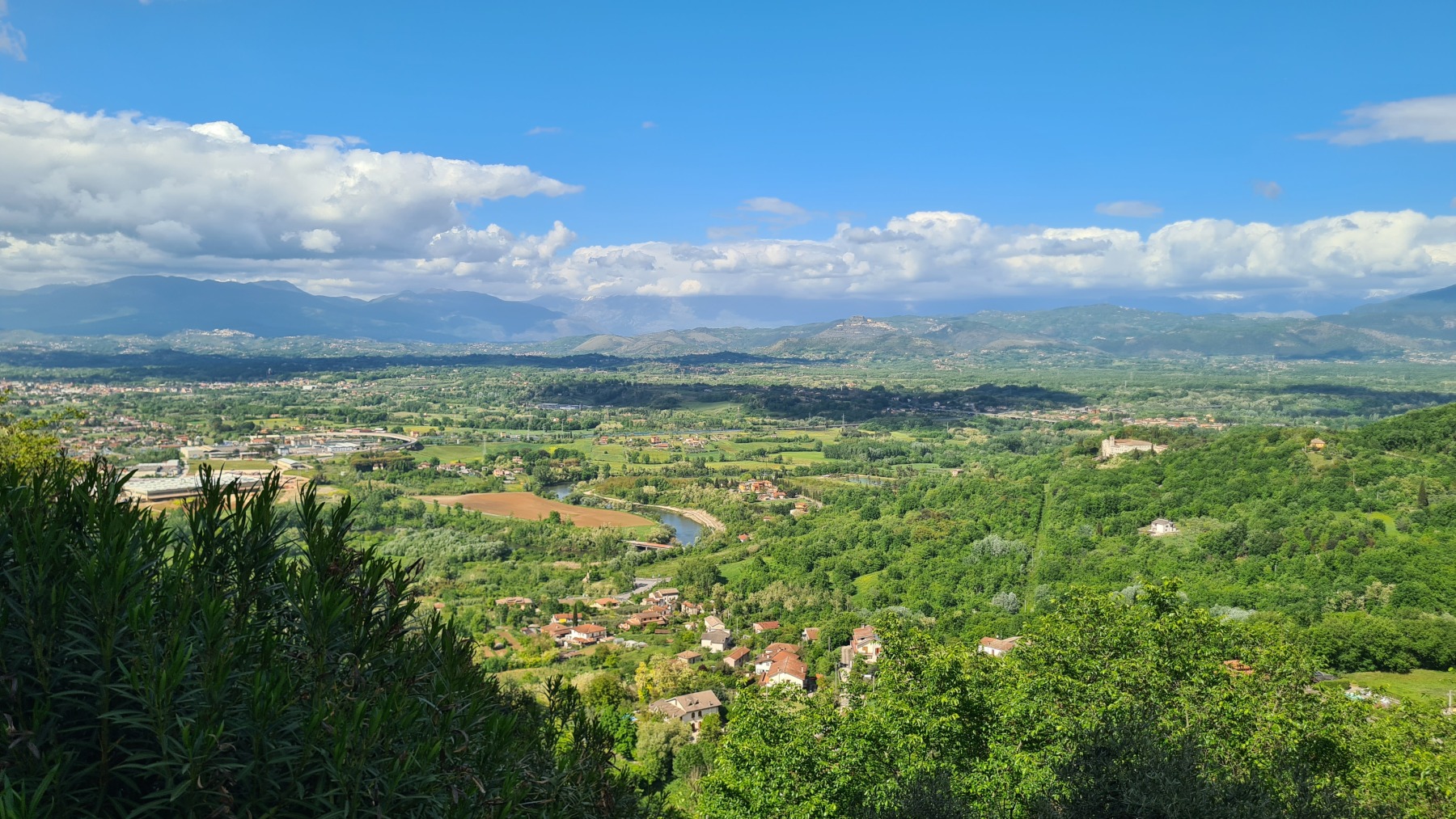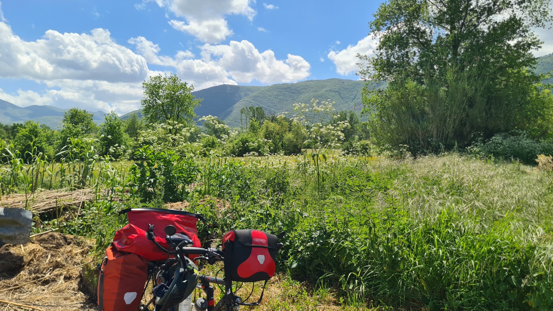 Après nous avoir fait grimper sur les contreforts des Apennins pour dormir à Fiuggi, Eurovelo 5 nous a fait redescendre dans la grande vallée du Sacco puis du Liri. C’est une vallée très large, appelée aussi Vallée Latine, avec de belles vues sur les sommets enneigés des Apennins et la chaine moins imposante des Monts Lépins qui nous sépare de la mer mais aussi des paysages moins bucoliques puisque la vallée est une voie de communication importante entre Rome et Naples.