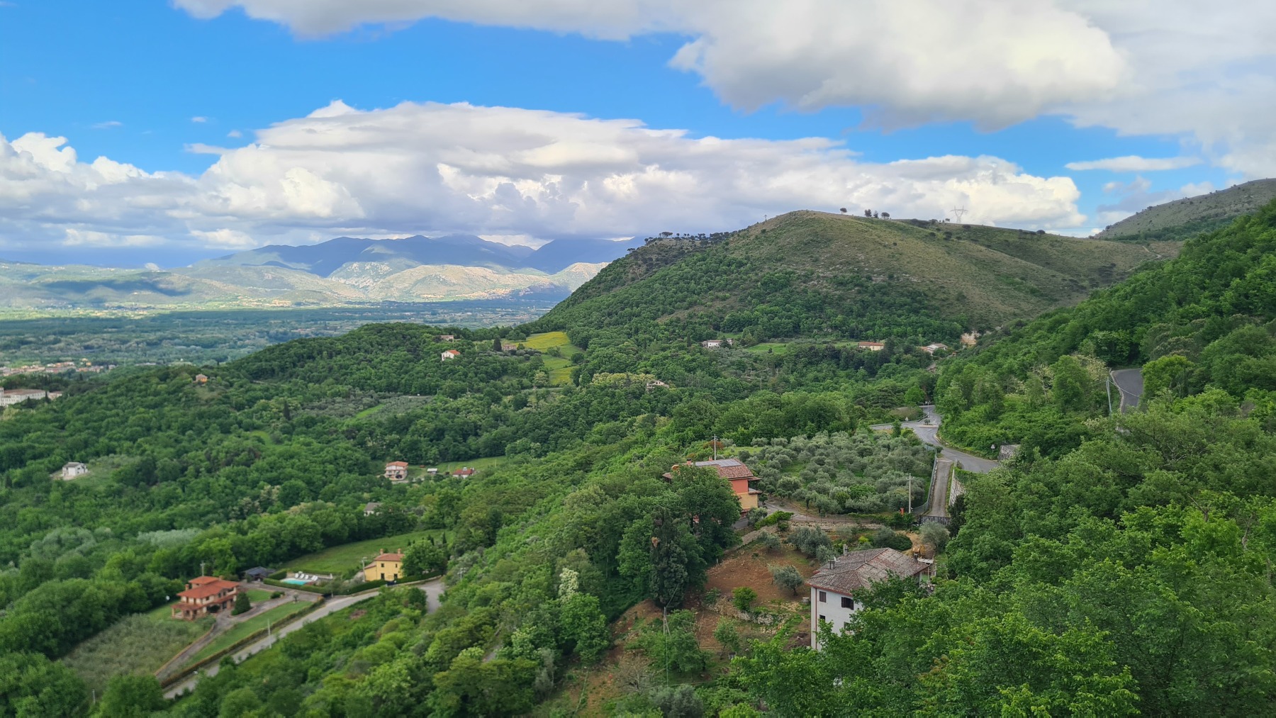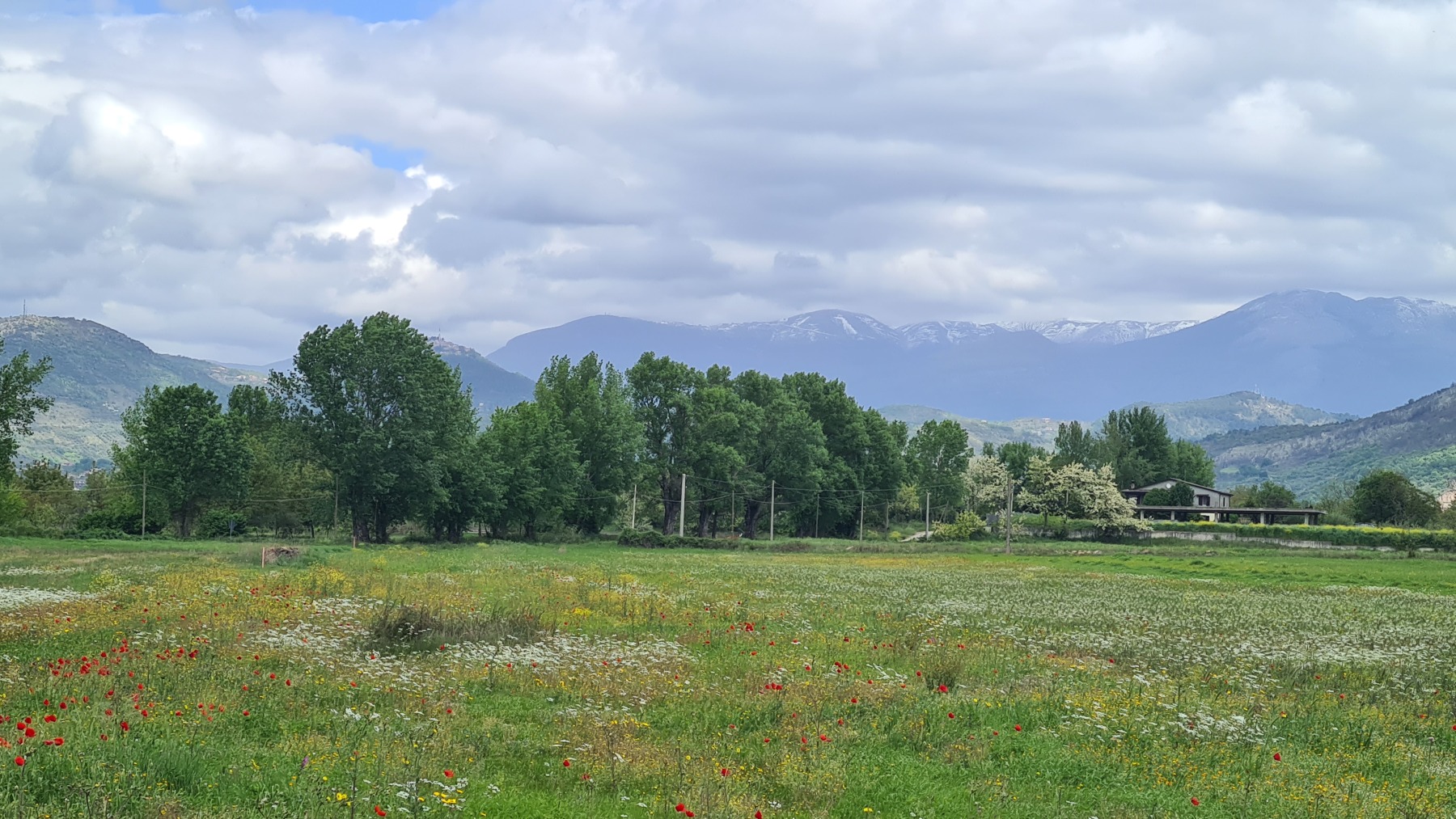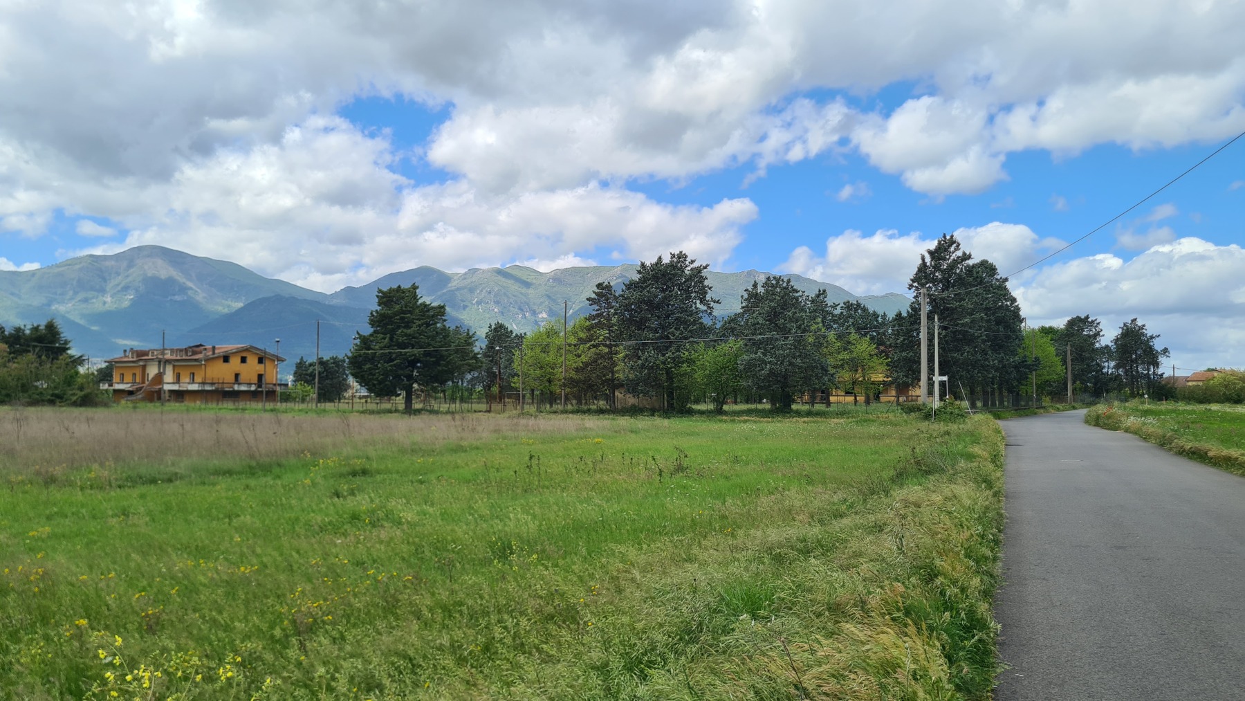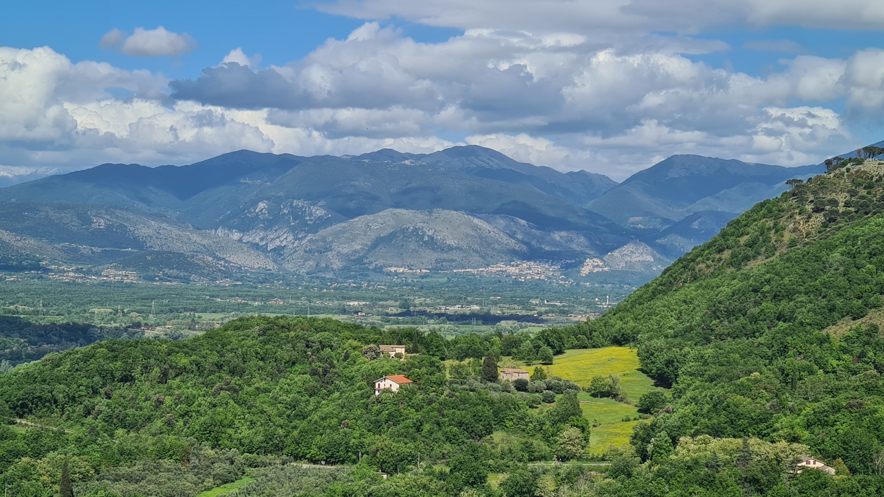Après nous avoir fait grimper sur les contreforts des Apennins pour dormir à Fiuggi, Eurovelo 5 nous a fait redescendre dans la grande vallée du Sacco puis du Liri. C’est une vallée très large, appelée aussi Vallée Latine, avec de belles vues sur les sommets enneigés des Apennins et la chaine moins imposante des Monts Lépins qui nous sépare de la mer mais aussi des paysages moins bucoliques puisque la vallée est une voie de communication importante entre Rome et Naples.