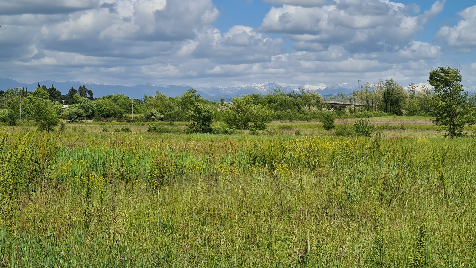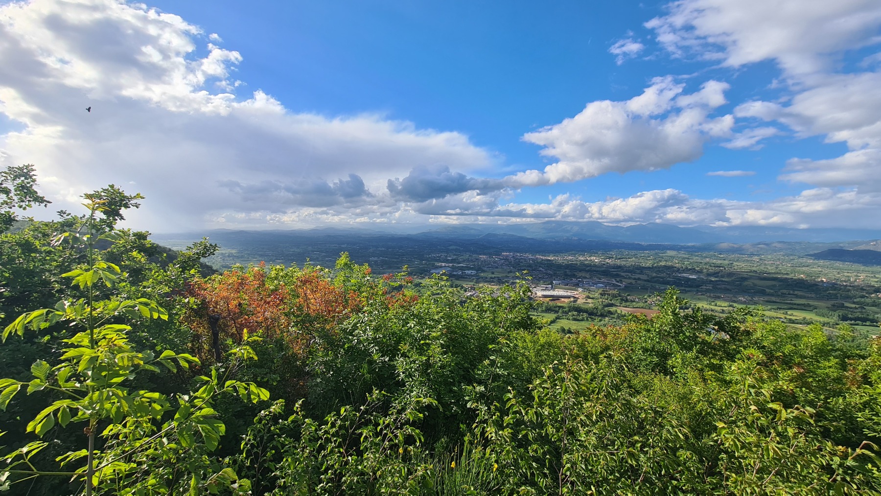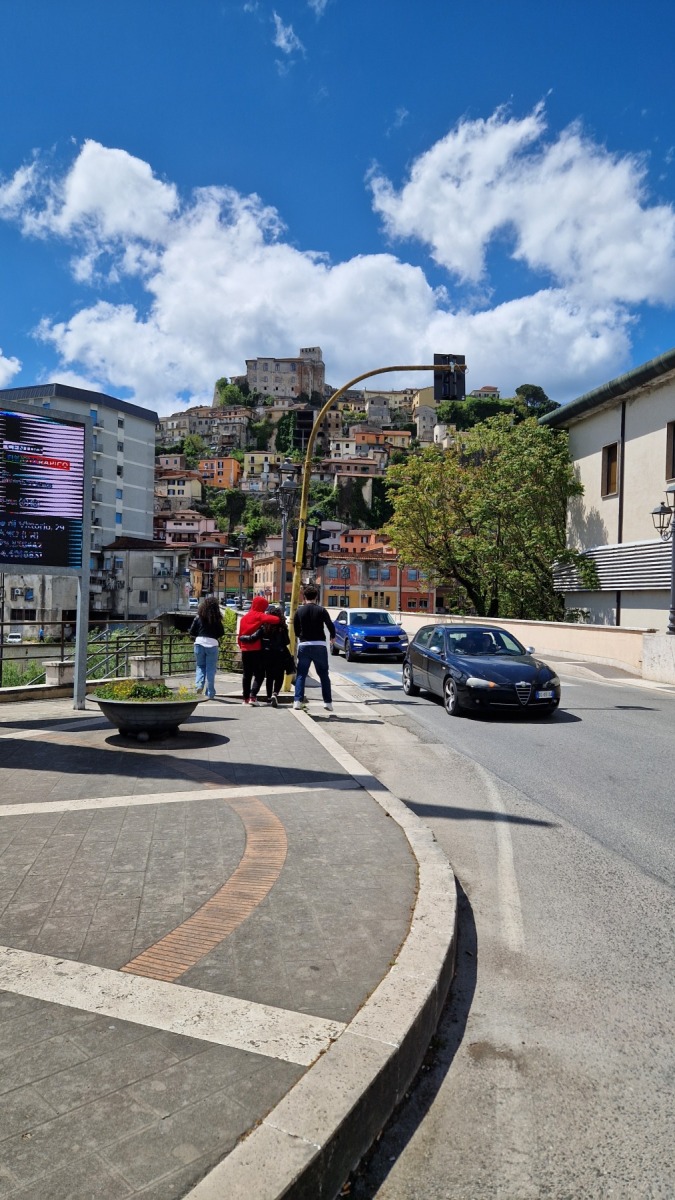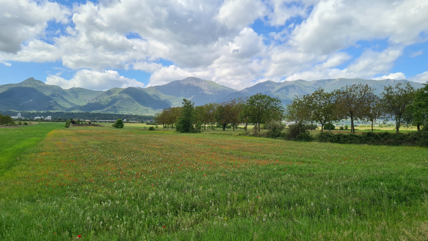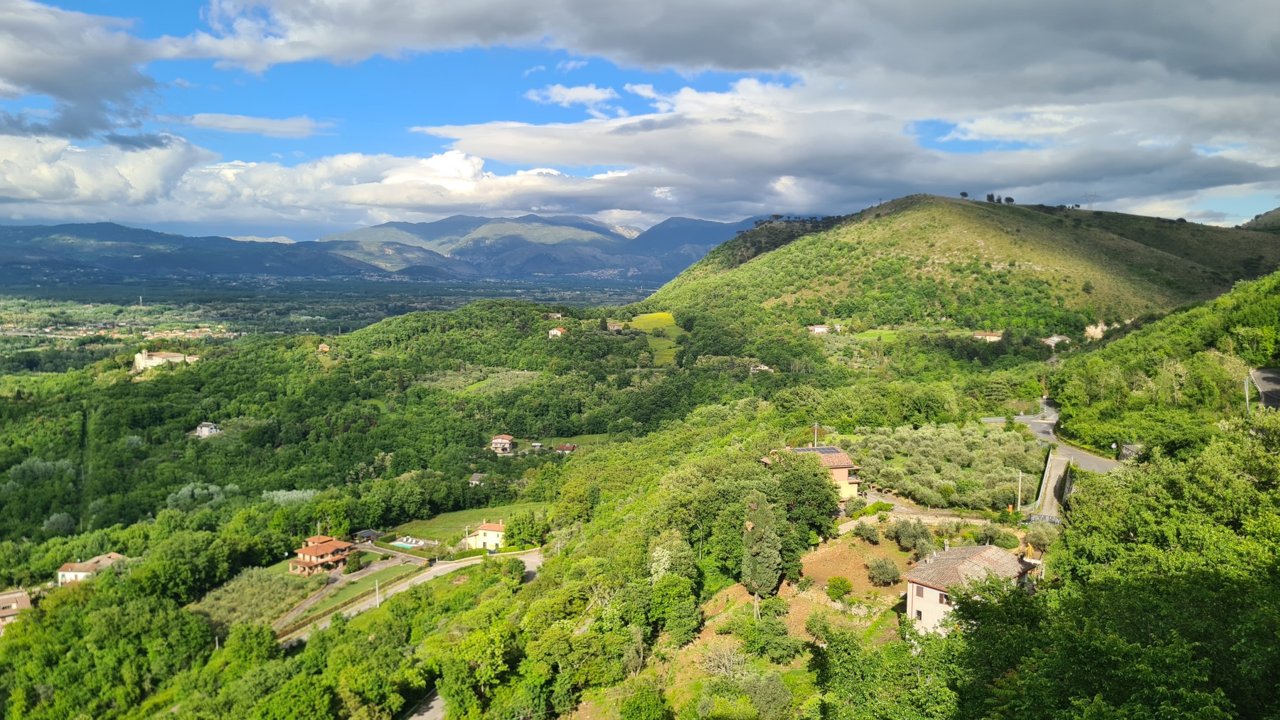 Après nous avoir fait grimper sur les contreforts des Apennins pour dormir à Fiuggi, Eurovelo 5 nous a fait redescendre dans la grande vallée du Sacco puis du Liri. C’est une vallée très large, appelée aussi Vallée Latine, avec de belles vues sur les sommets enneigés des Apennins et la chaine moins imposante des Monts Lépins qui nous sépare de la mer mais aussi des paysages moins bucoliques puisque la vallée est une voie de communication importante entre Rome et Naples.