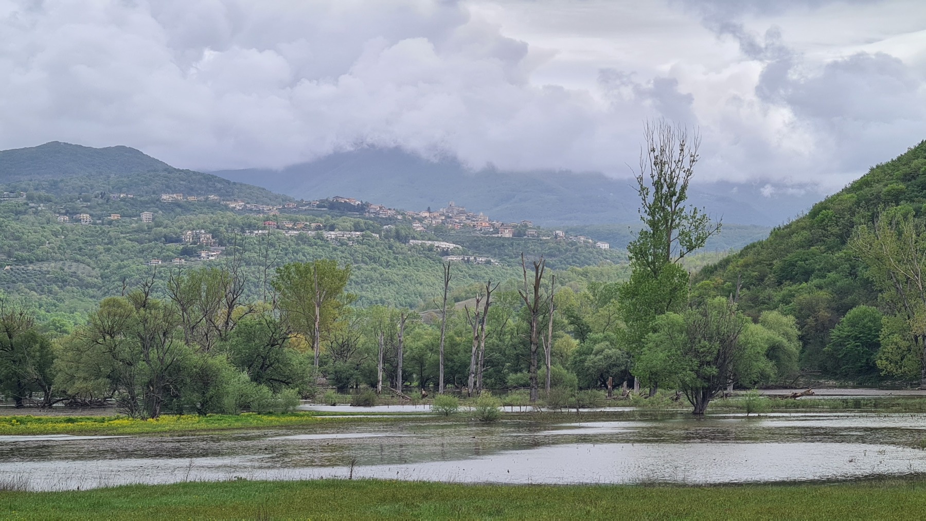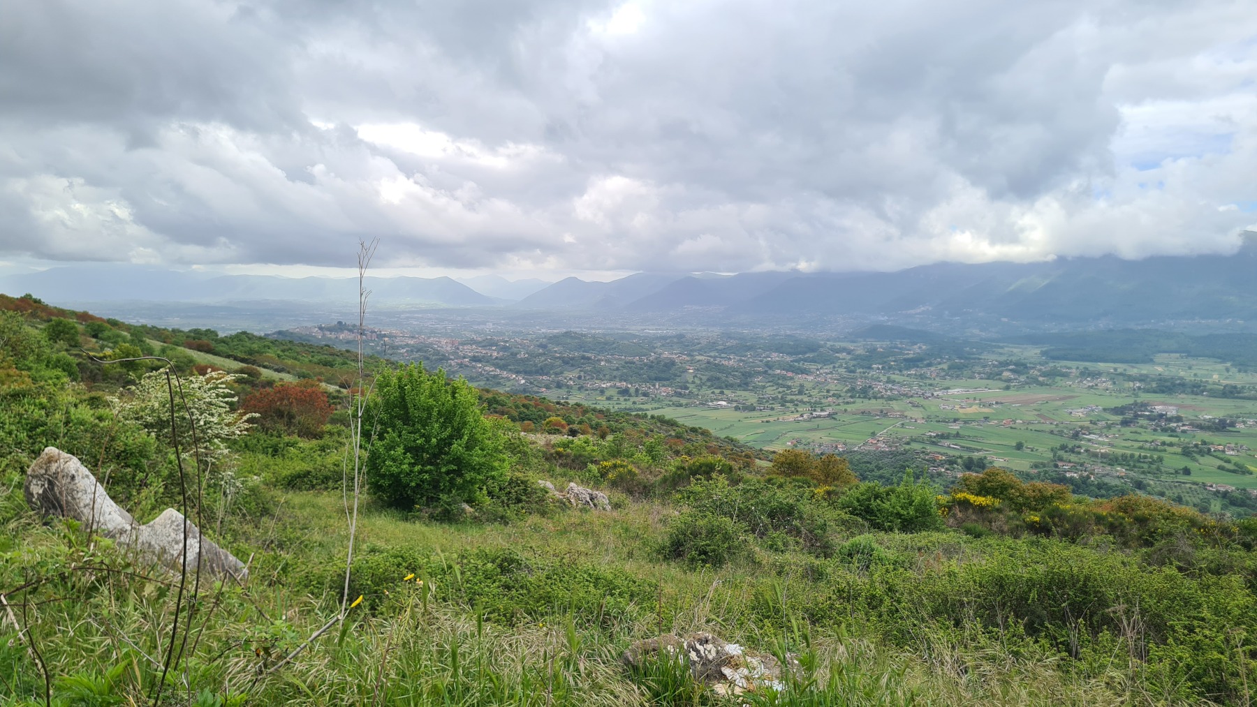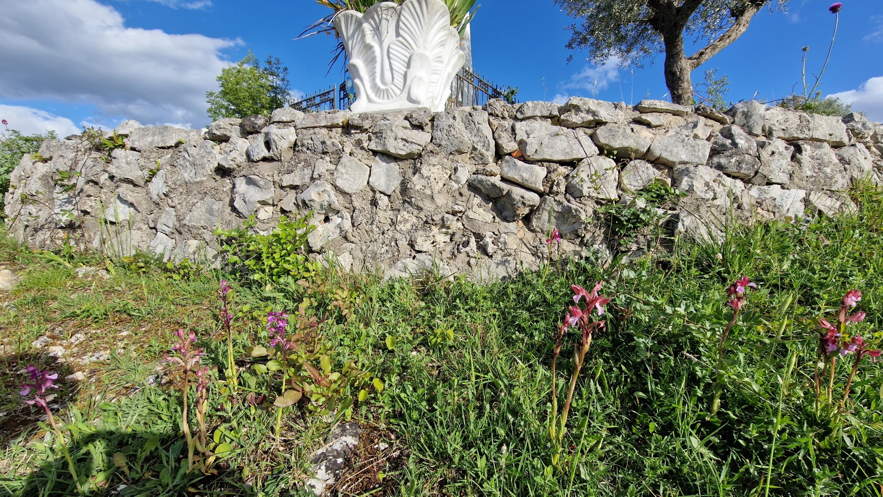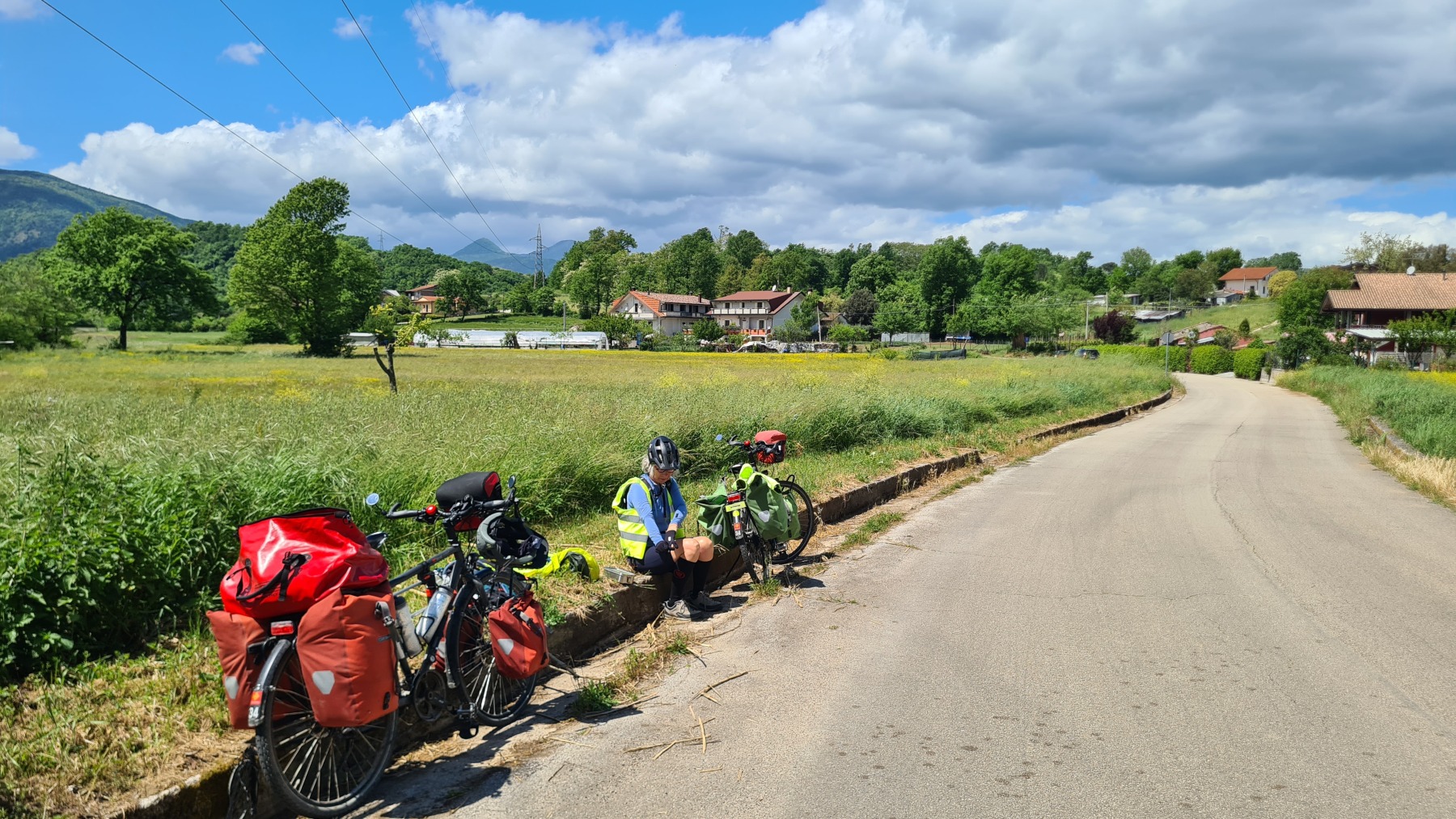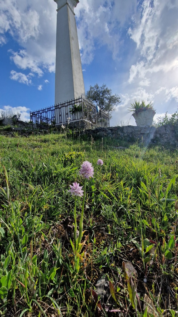Nous avons fait étape dans l’un de ces villages, Falvaterra qui ne domine le tracé de l’Eurovelo 5 « que » de 150 m (ce qui n’est déjà pas mal en fin de journée). Nous en avons profité pour visiter le village et son chemin de croix, riche en asperges sauvages, qui mène à un beau belvédère avec une pelouse sèche pleine d’orchidées.