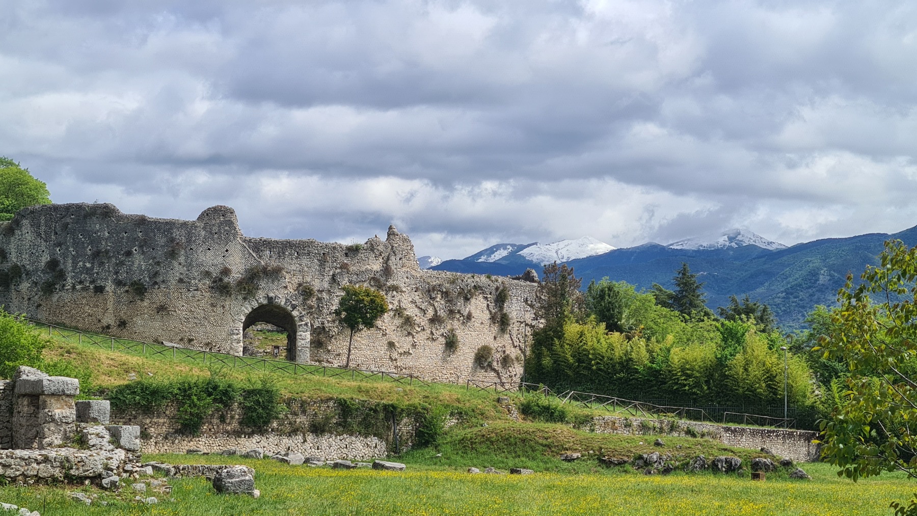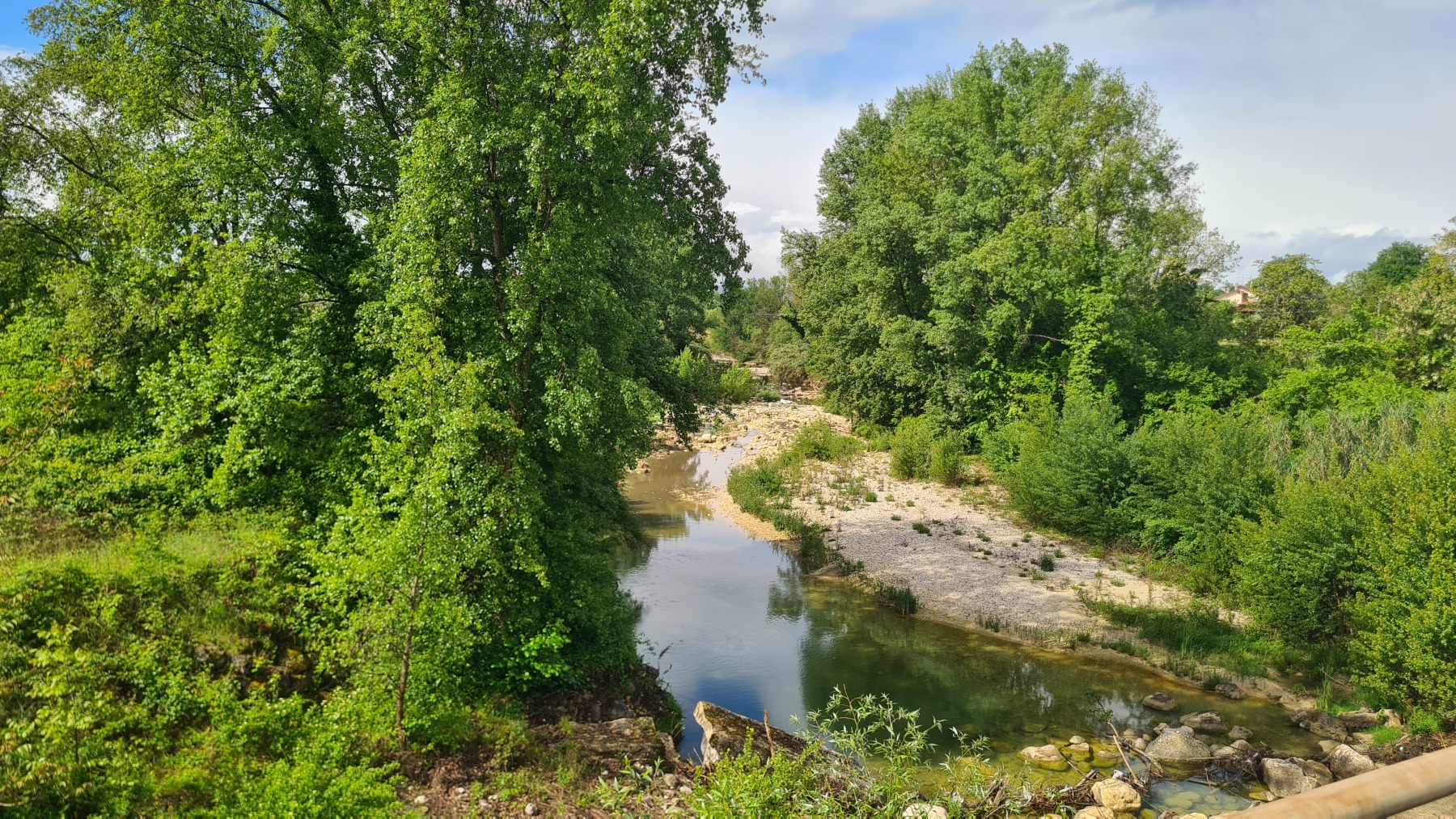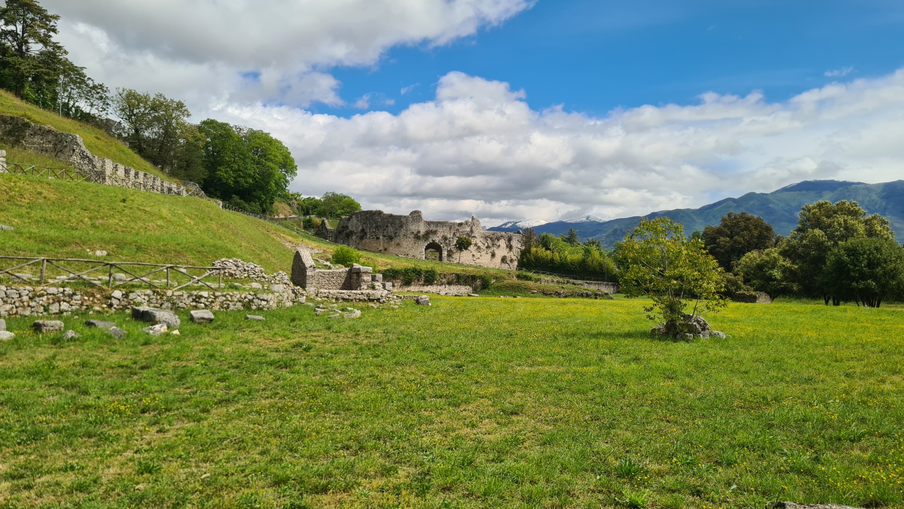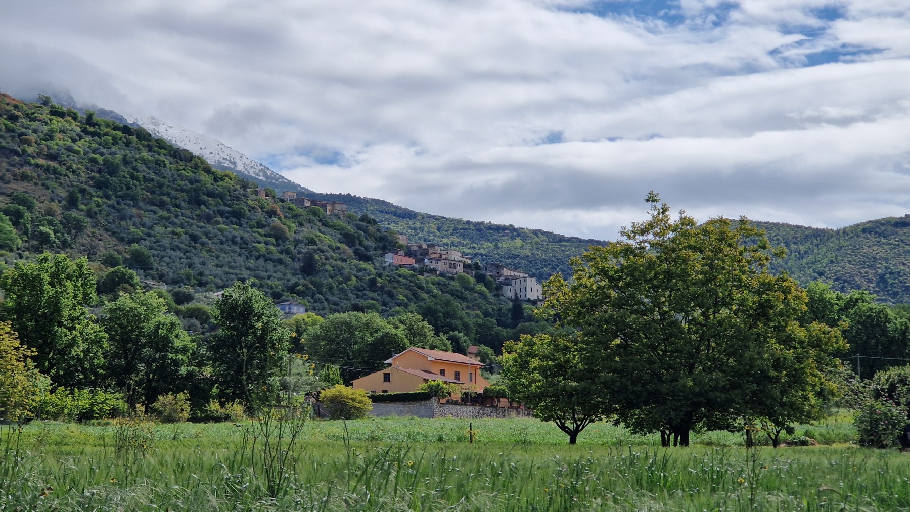 Cela n’a pas duré bien longtemps et nous sommes repartis. Eurovelo 5 nous a fait traverser la vallée jusqu’à Roccasecca (qui méritait mal son nom aujourd’hui) et nous suivi les contreforts des Apennins jusqu’à Cassino, terme de notre étape, que nous avons atteint avant le déjeuner.