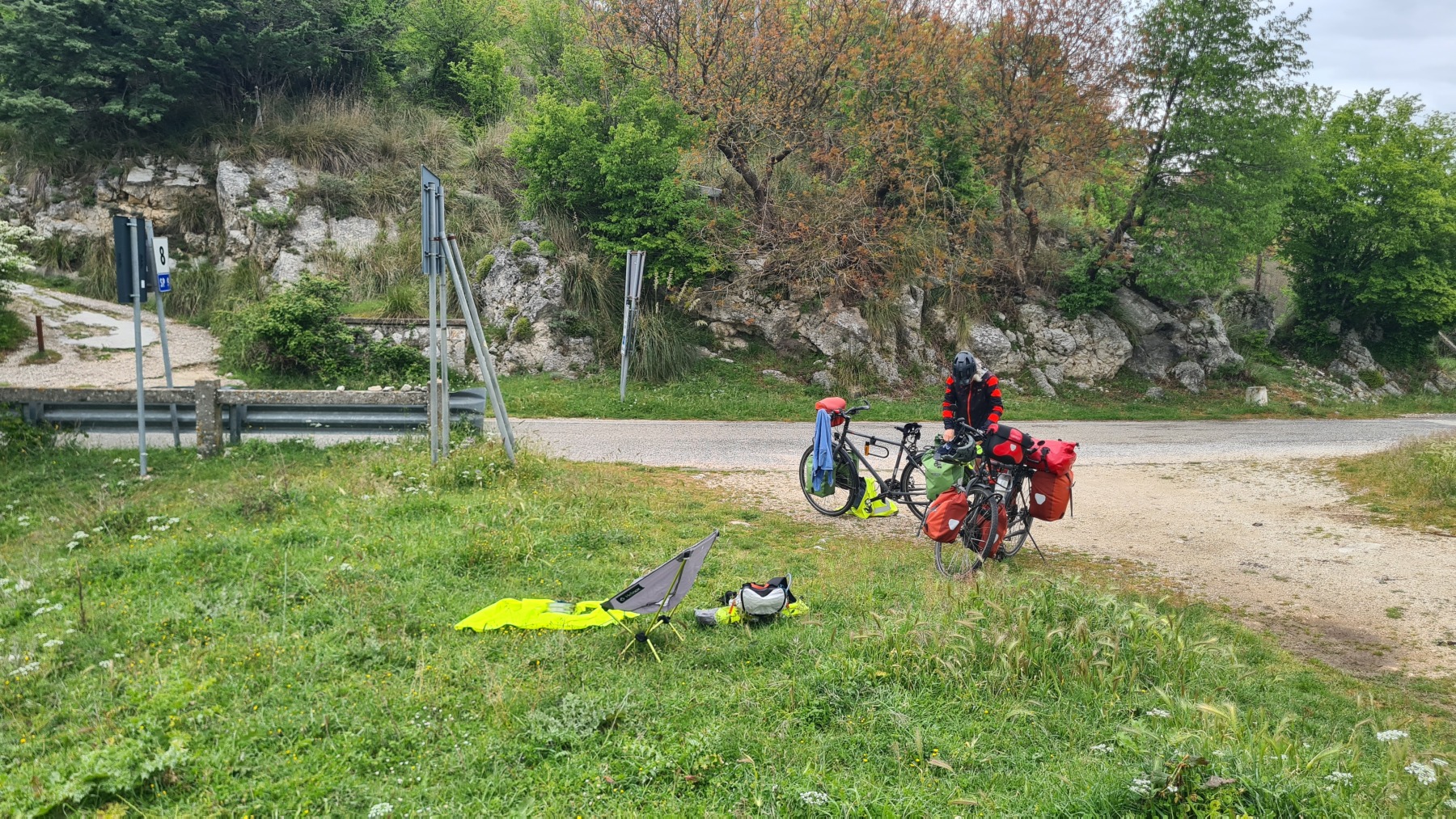 Gisèle avait heureusement bien emballé les œufs qui sont arrivés intacts pour le picnic en haut du col où nous avons croisé deux cyclotouristes allemands en sens inverse.