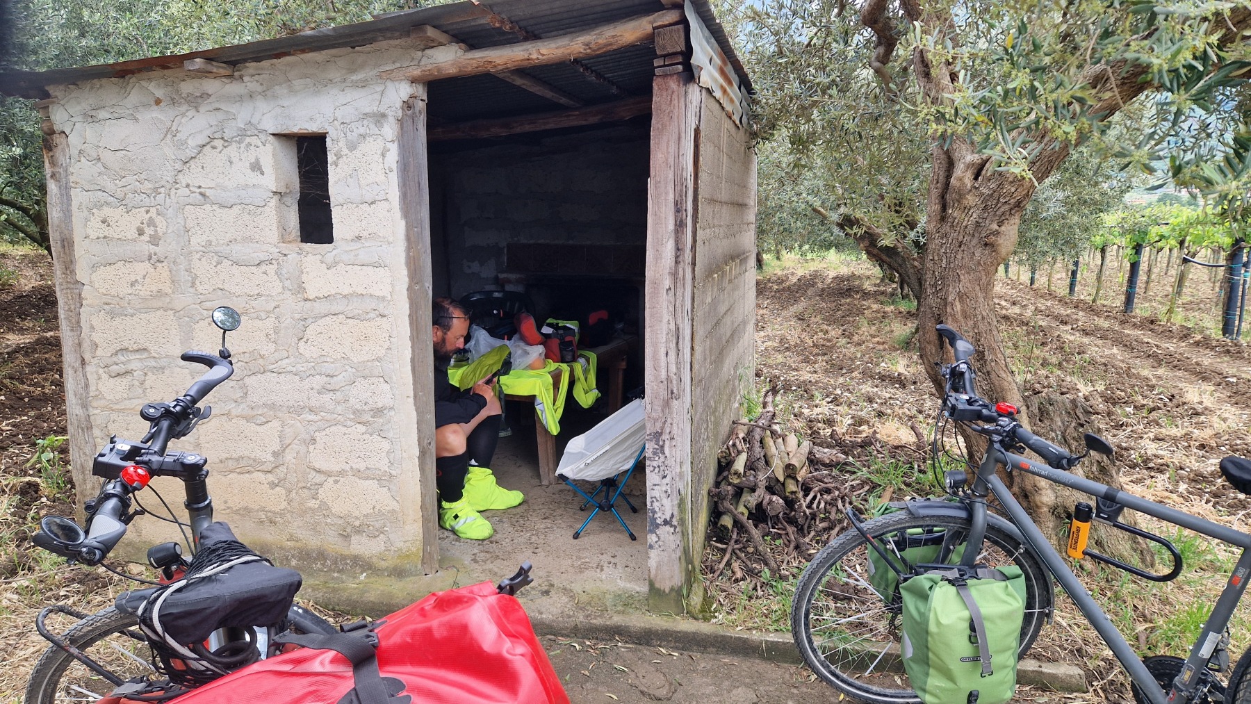 Arrivés au centre Lipu qui est géré par des volontaires il n’y avait personne mais Massimo nous a indiqué où trouver les clés et nous attendons un coupe d’allemands qui doivent camper ici et un volontaire Lipu qui doit venir nous accueillir et, nous l’espérons, nous montrer comment allumer l’eau chaude et la chauffage !