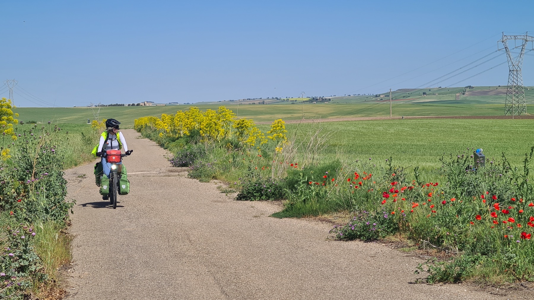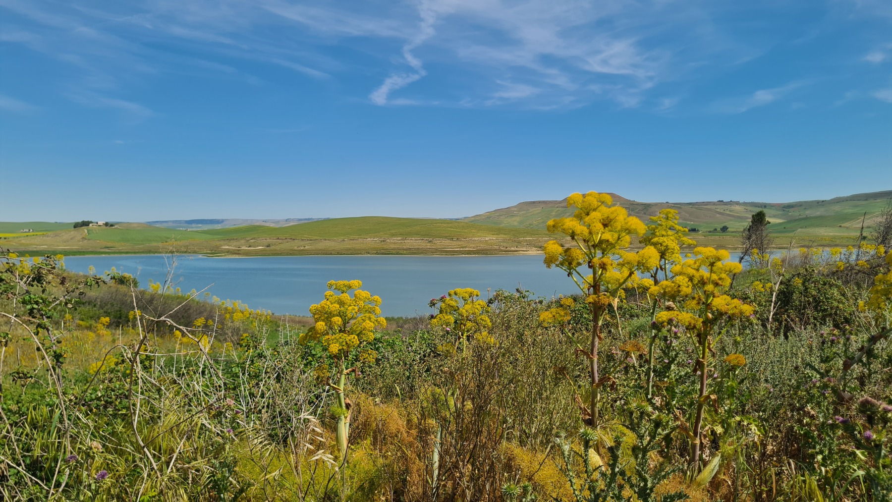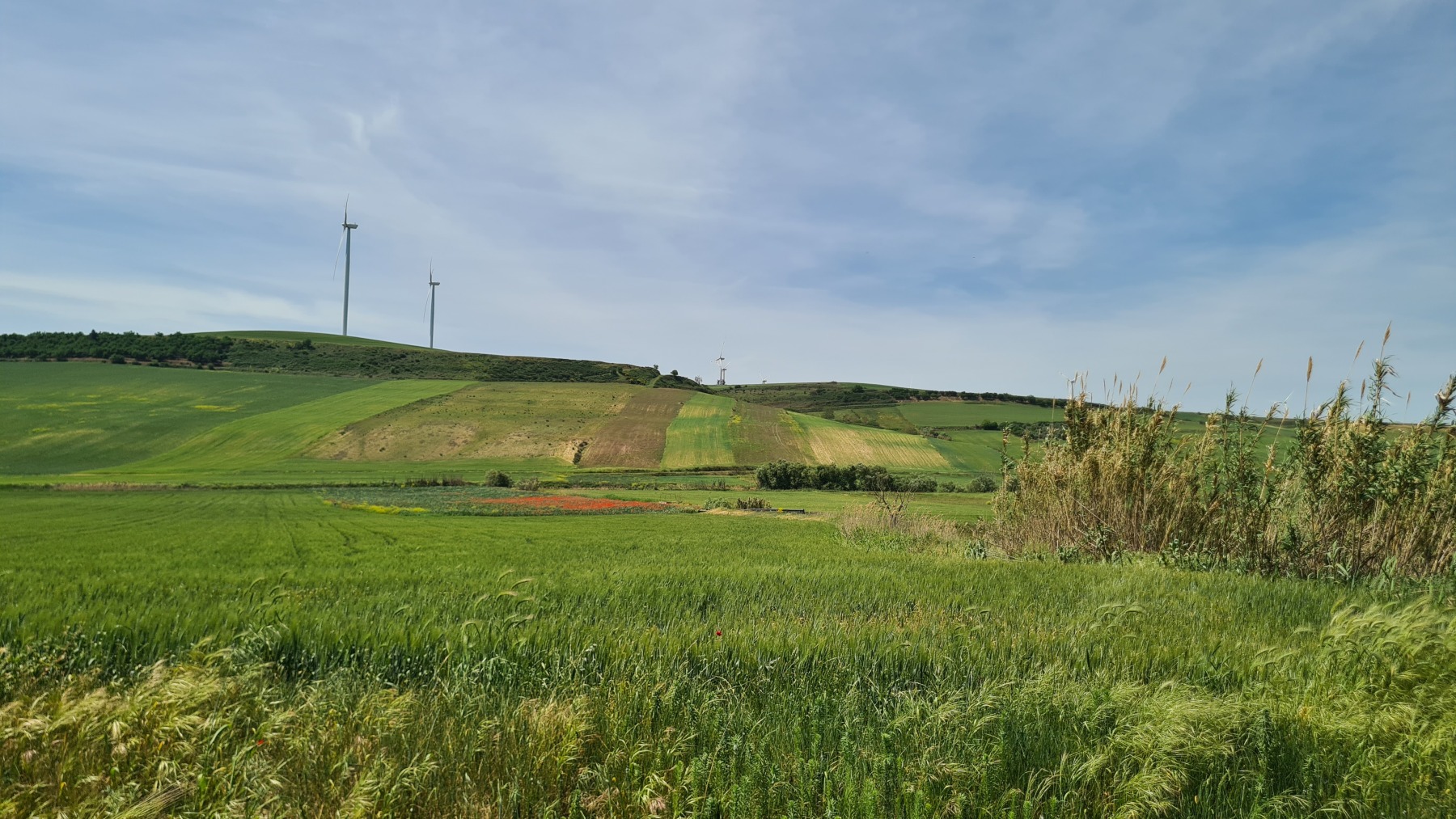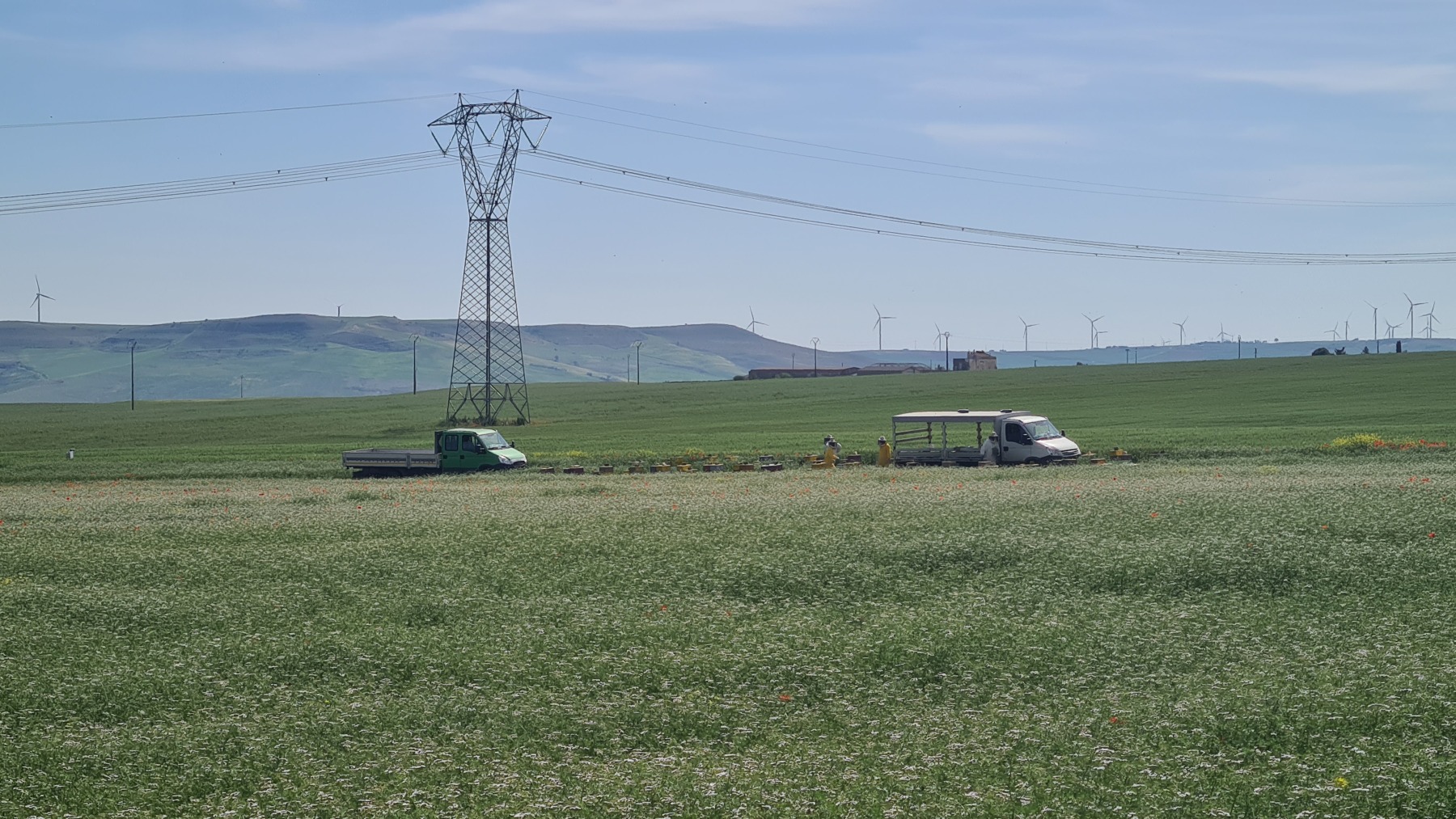 Les cultures me semblent toujours plutôt diversifiées et nous avons même longé un champ de coriandre en fleur trahi par l’odeur. Vu la taille du champ, j’imagine que cela devait être pour la production de graines. Des apiculteurs travaillaient sur des ruches installées en bordure du champ et les abeilles étaient nombreuses à butiner le coriandre qui produit un très bon miel.