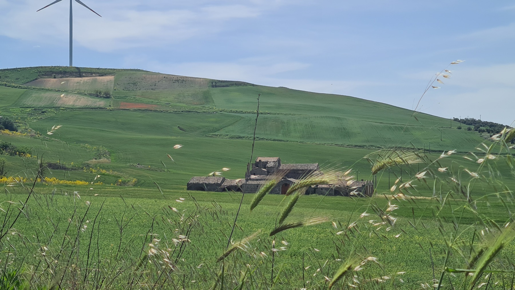 L’exode rural a frappé durement le sud de l’Italie et on voit beaucoup de maisons et de fermes abandonnées le long des routes. Les champs sont parfaitement cultivés mais la mécanisation a fait qu’il n’y a plus besoin de grand monde pour cela.