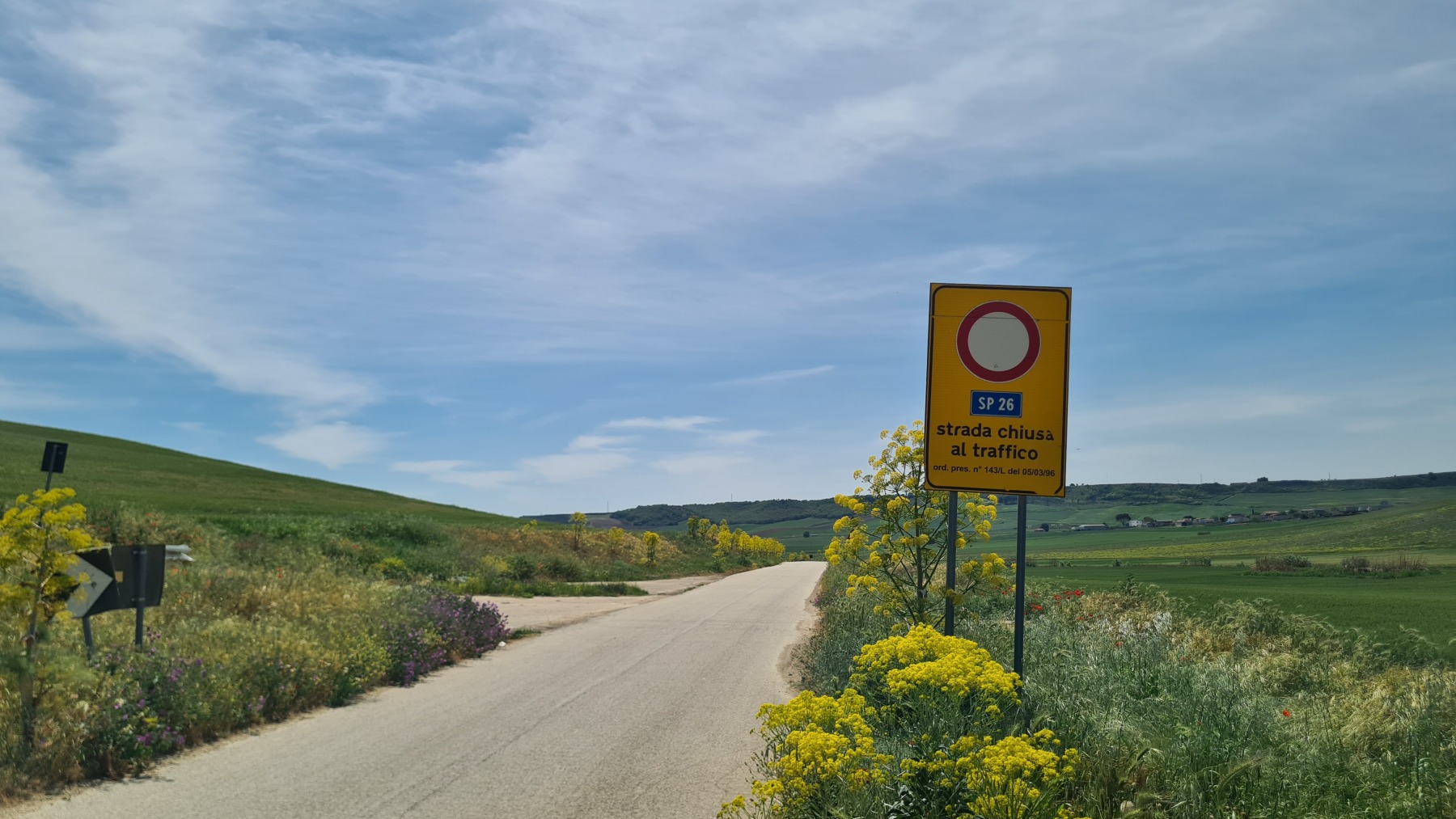 Elle s’est déroulée en bonne partie sur des routes marquées fermées à la circulation (en raison d’une ordonnance du 5 mars 96) sans que nous n’en comprenions la raison. Ces panneaux nous inquiétaient un peu au début mais les routes en question sont une bénédiction pour les cyclistes : même si elles sont souvent en mauvais état, la circulation est quasi nulle (seuls de rares camions, tracteurs et voitures les fréquentent) et on peut y rouler en toute sécurité.