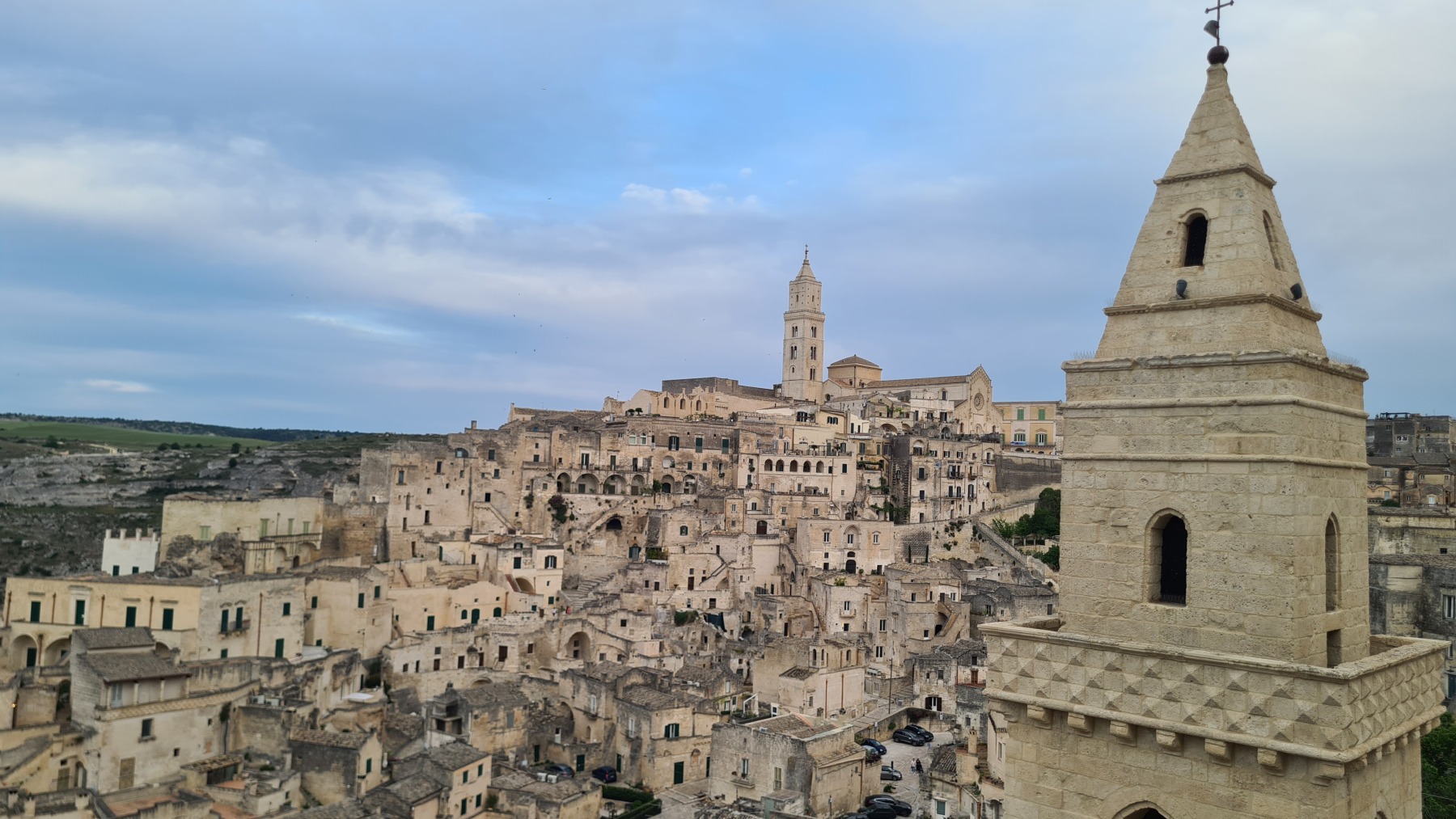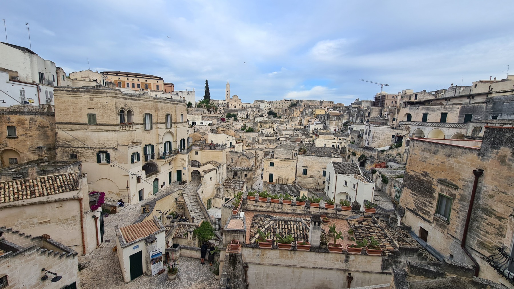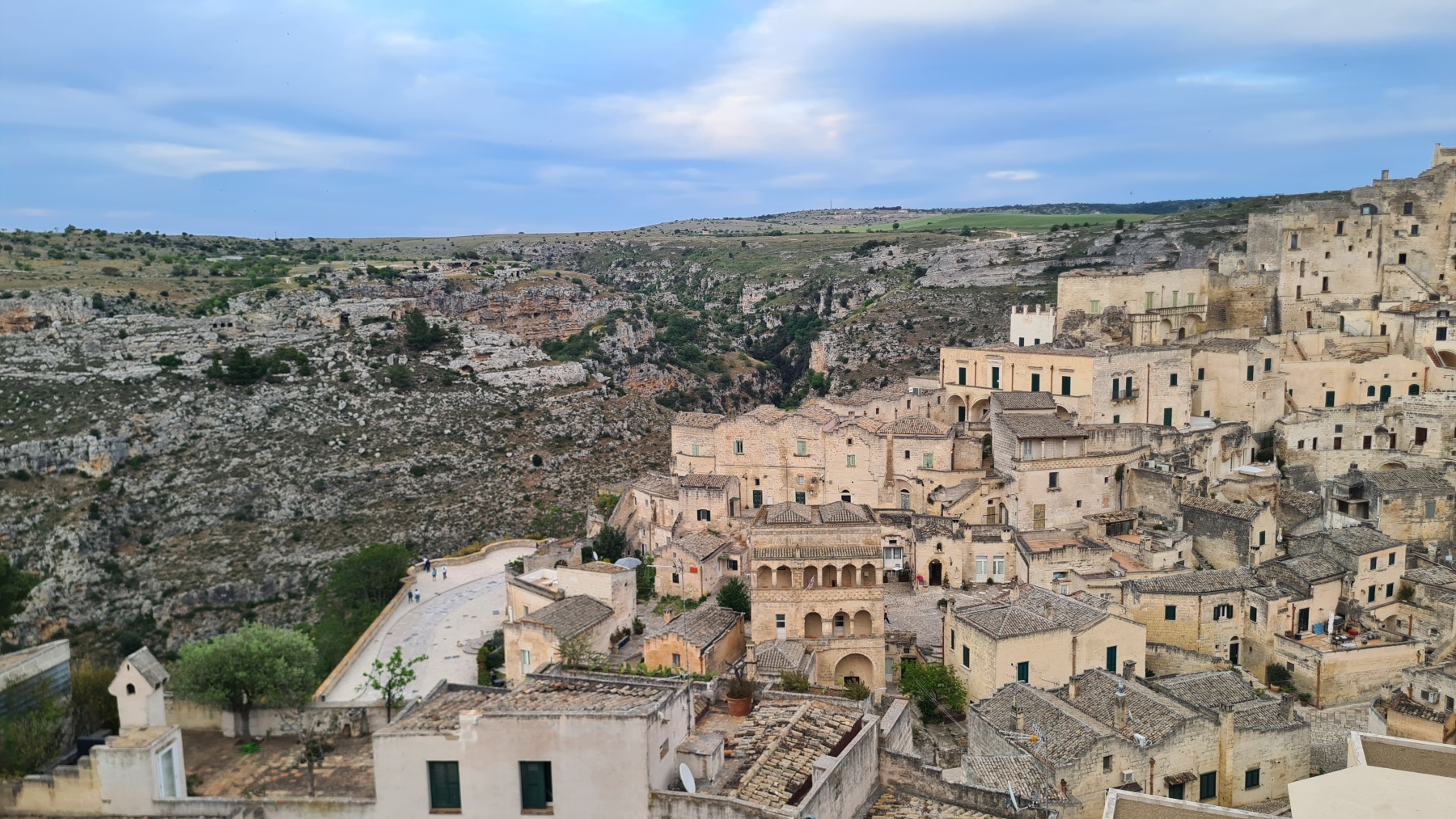 L’arrivée à Matera se fait par une dernière montée (une centaine de mètres) et quand nous sommes arrivés au sommet une voiture nous a dit en anglais que c’était une très belle ville et que ça se méritait « no pain, no gain comme disent les américains » nous a t-il expliqué.