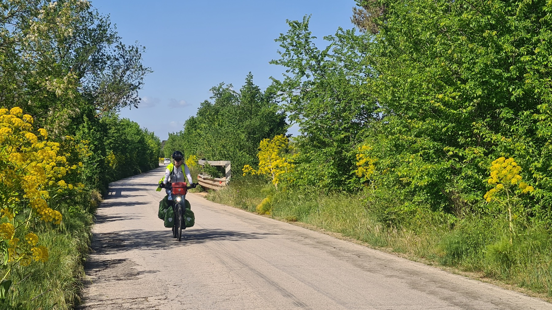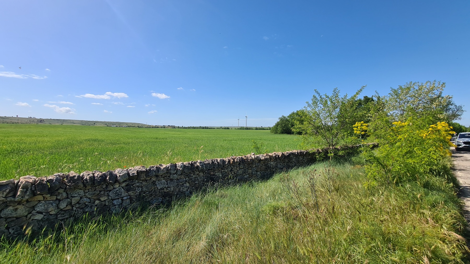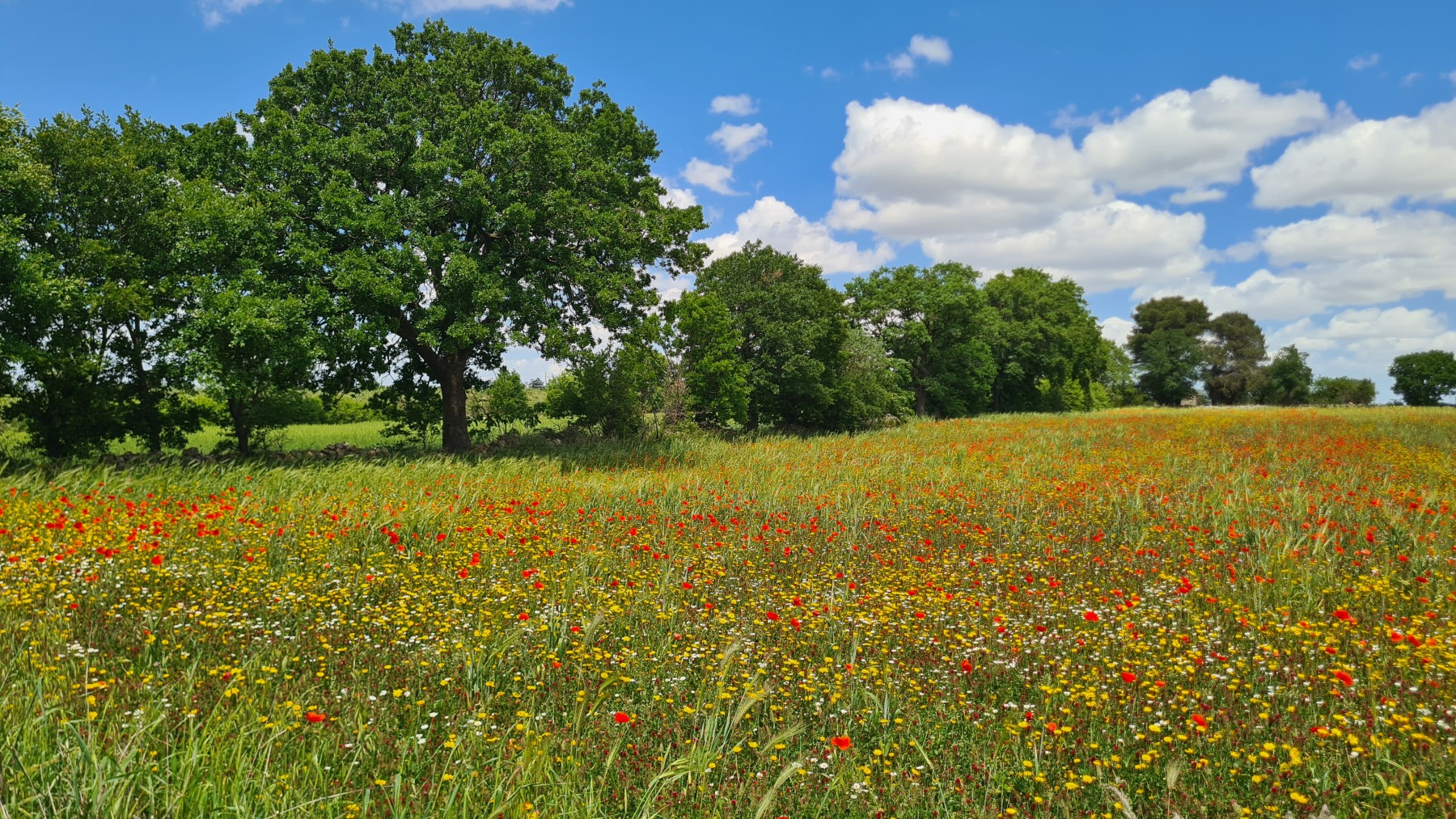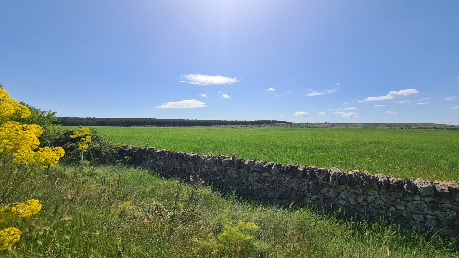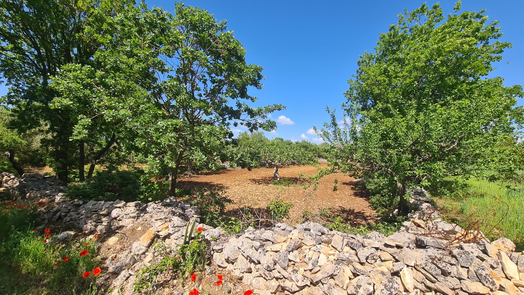 L’endroit où nous avons quitté Eurovelo 5 correspondait également à notre retour dans la région des Pouilles et à un changement de paysage marqué par l’apparition de murets de pierres sèches pour séparer les champs et beaucoup plus d’arbres sous forme de bosquets mais aussi dans les champs.