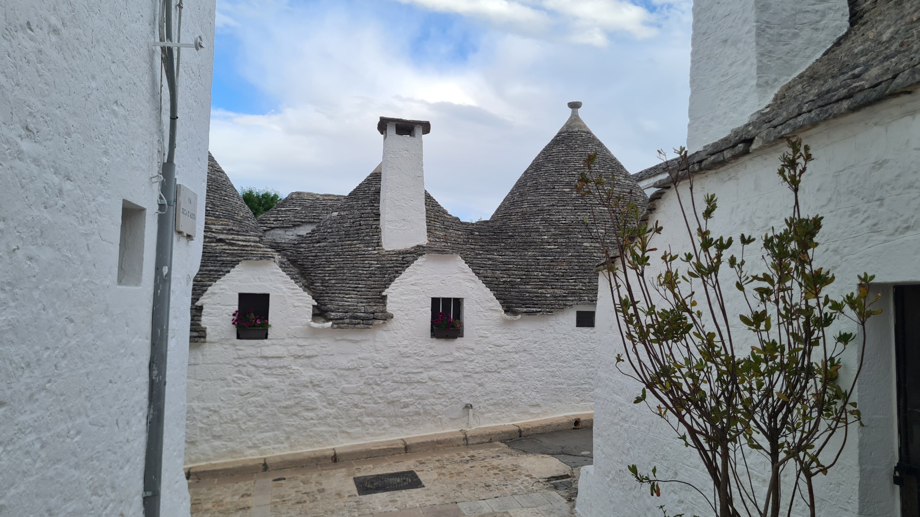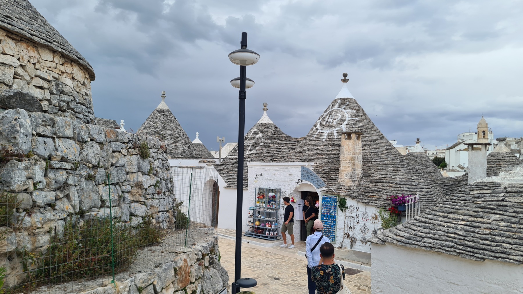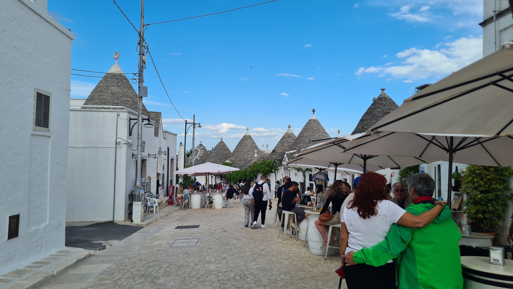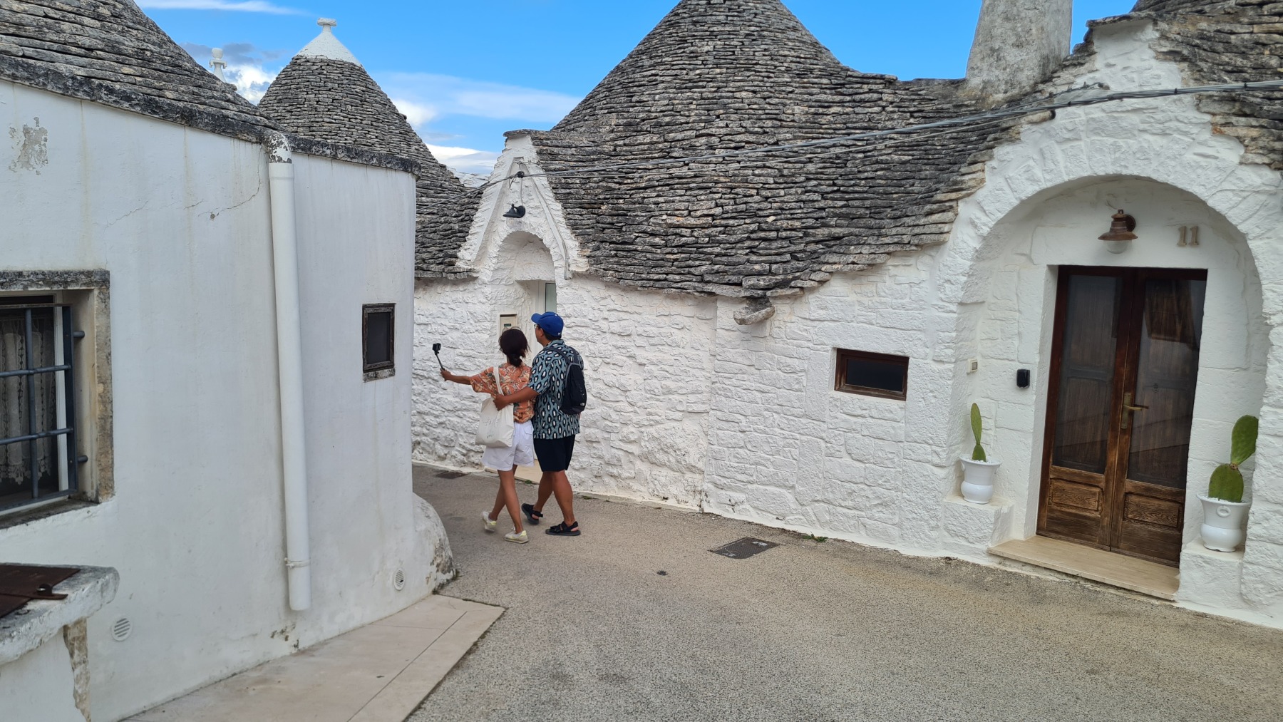 Nous avons donc quitté l’Eurovelo 5 à une quinzaine de kilomètres de Matera pour faire un crochet par le village d’Alberobello et ses célèbres trulli et nous dormons ce soir dans un authentique trullo.