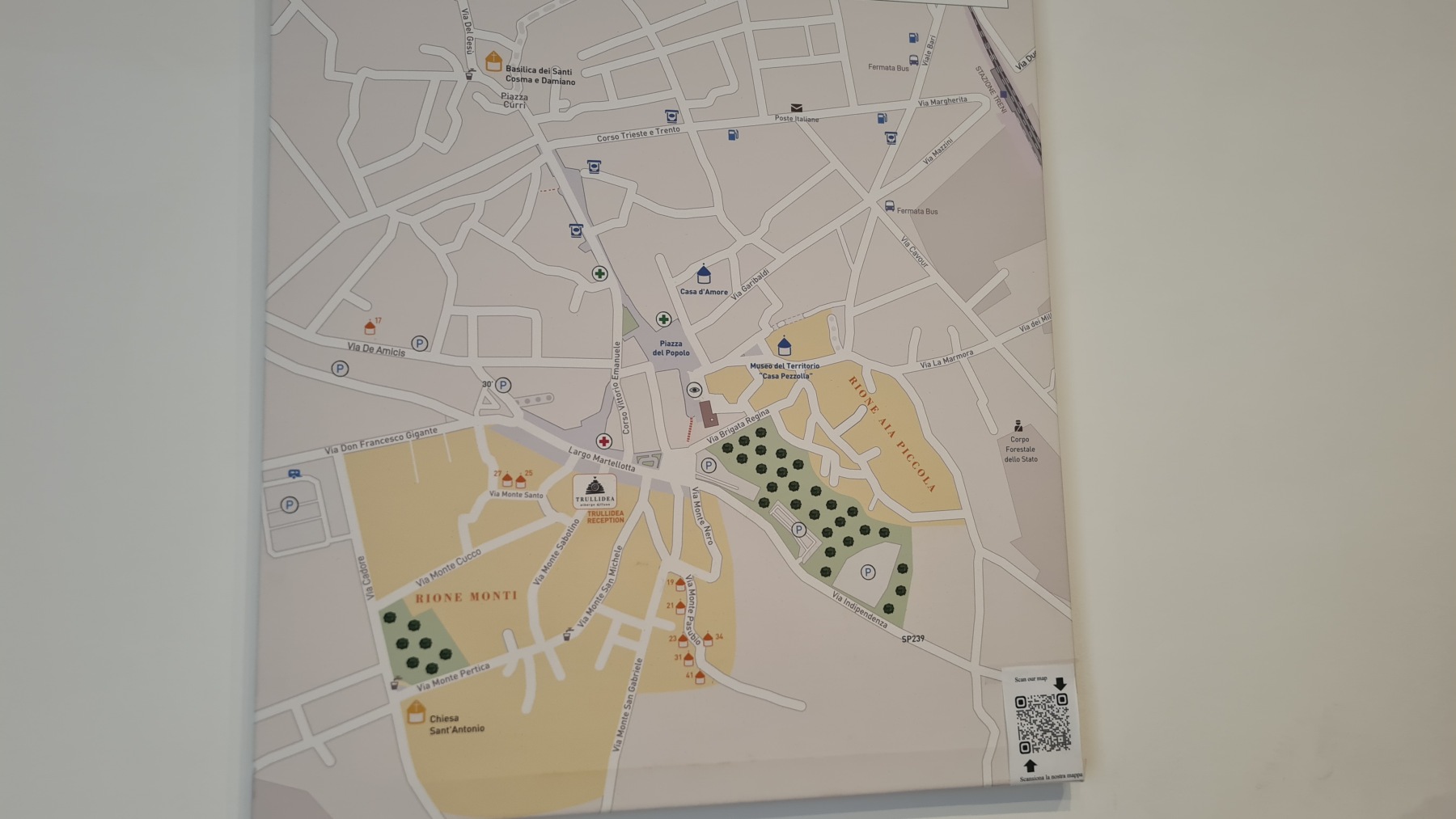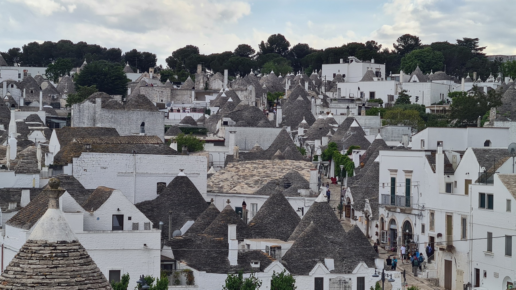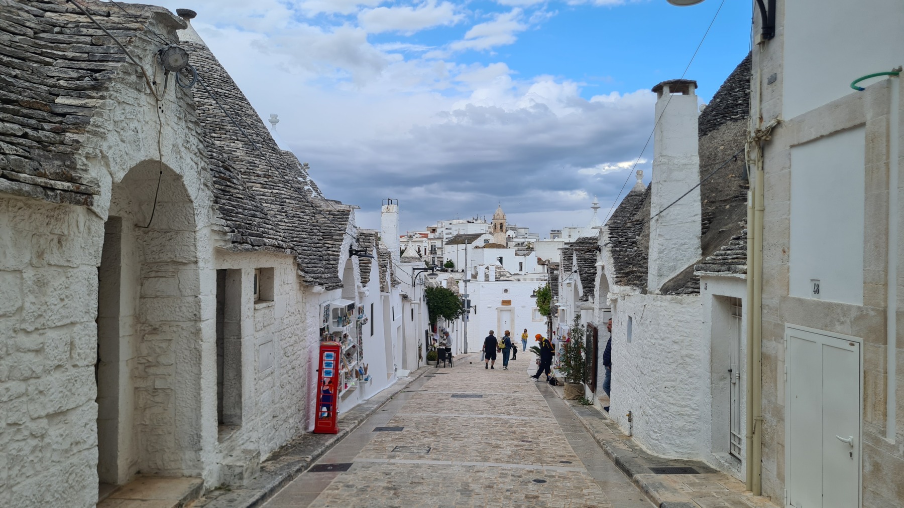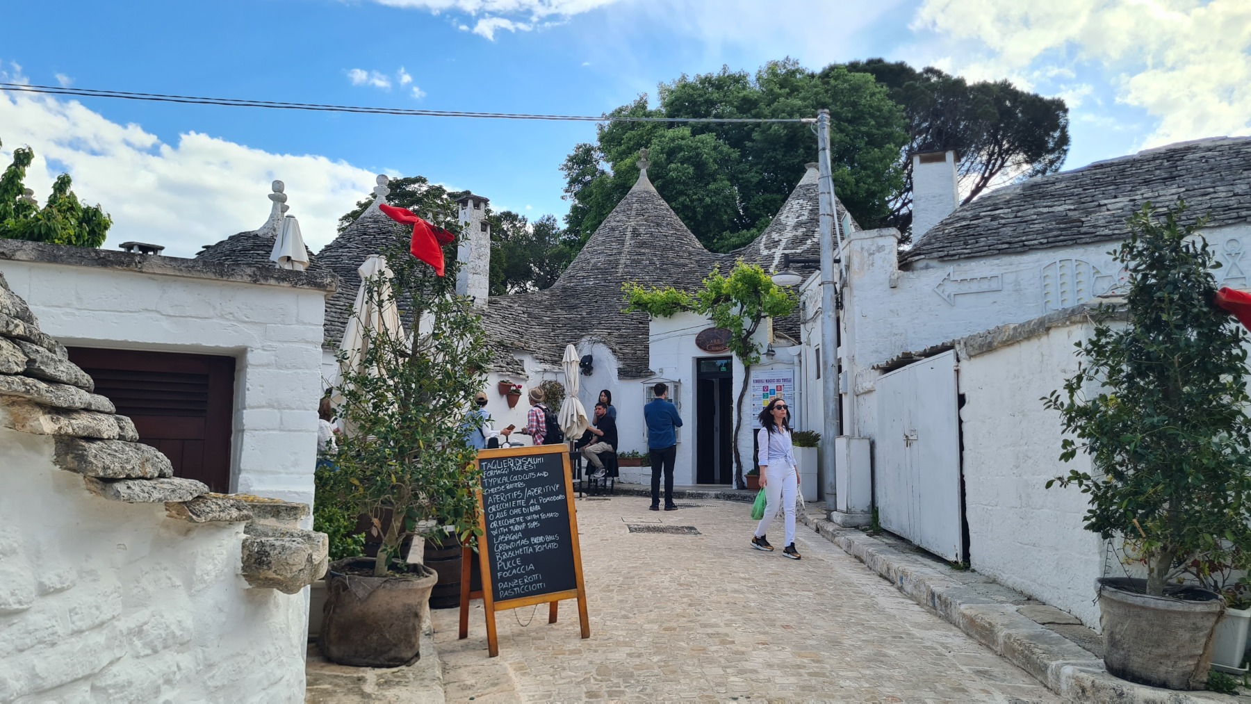 Nous avons donc quitté l’Eurovelo 5 à une quinzaine de kilomètres de Matera pour faire un crochet par le village d’Alberobello et ses célèbres trulli et nous dormons ce soir dans un authentique trullo.