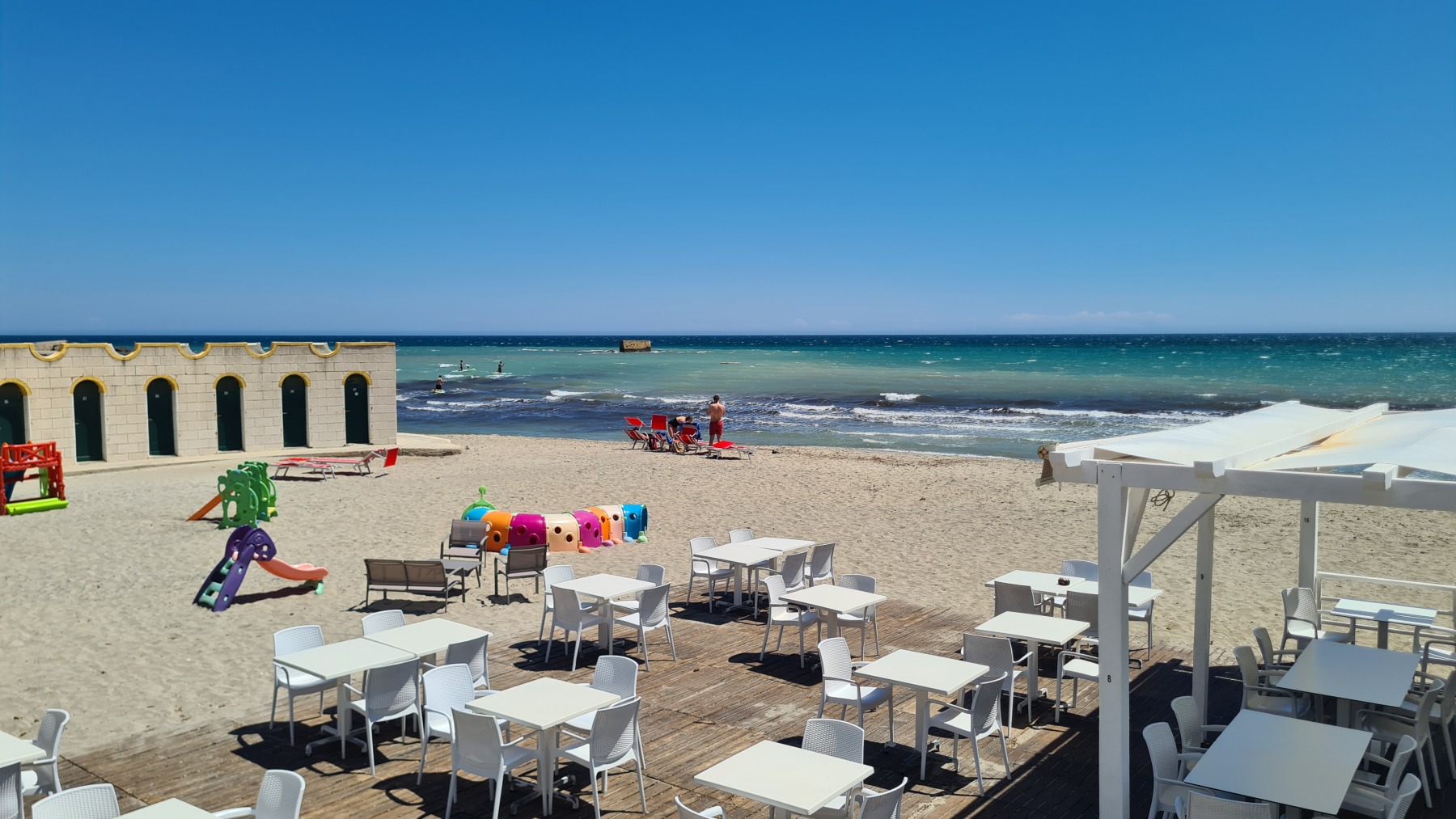 Pour notre dernière nuit en Italie, nous avons une villa un peu kitch avec jardin et terrasse, près de la plage dans une petite station balnéaire quasiment déserte en semaine en cette saison.