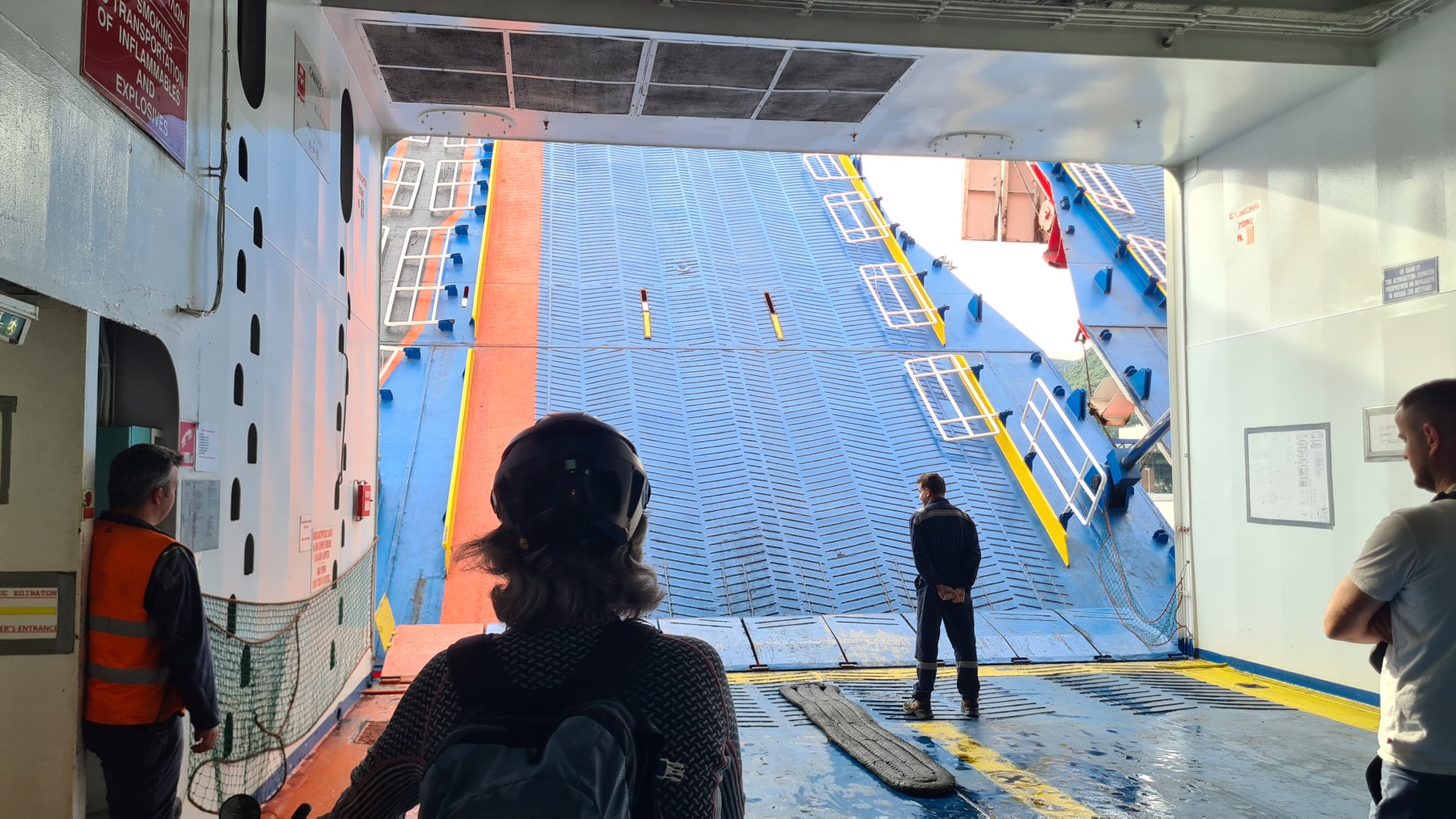 Nous avons été prendre un petit déjeuner au bar et avons contemplé le paysage sur les ponts extérieurs avant d’être lâchés dans le port d’Igoumenista au milieu des voitures et des camions. Nous nous sommes arrêtés dans un café pour examiner la situation et sommes repartis vers Sagiada, notre destination du jour.