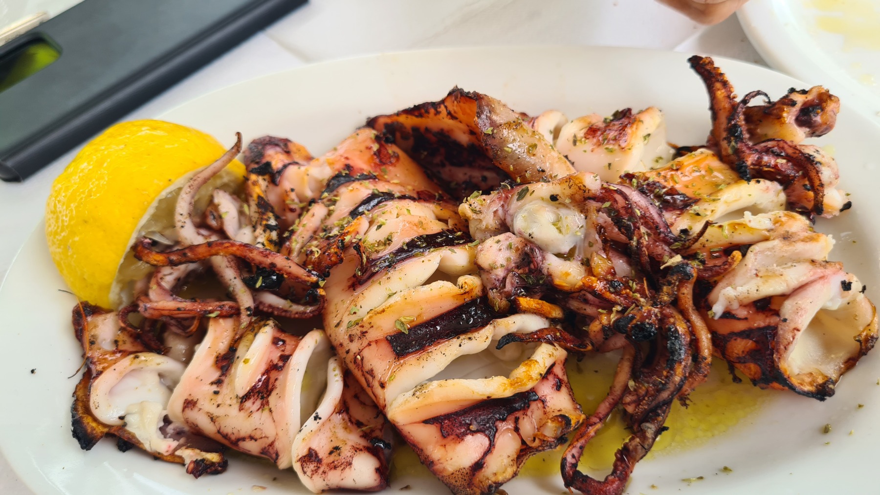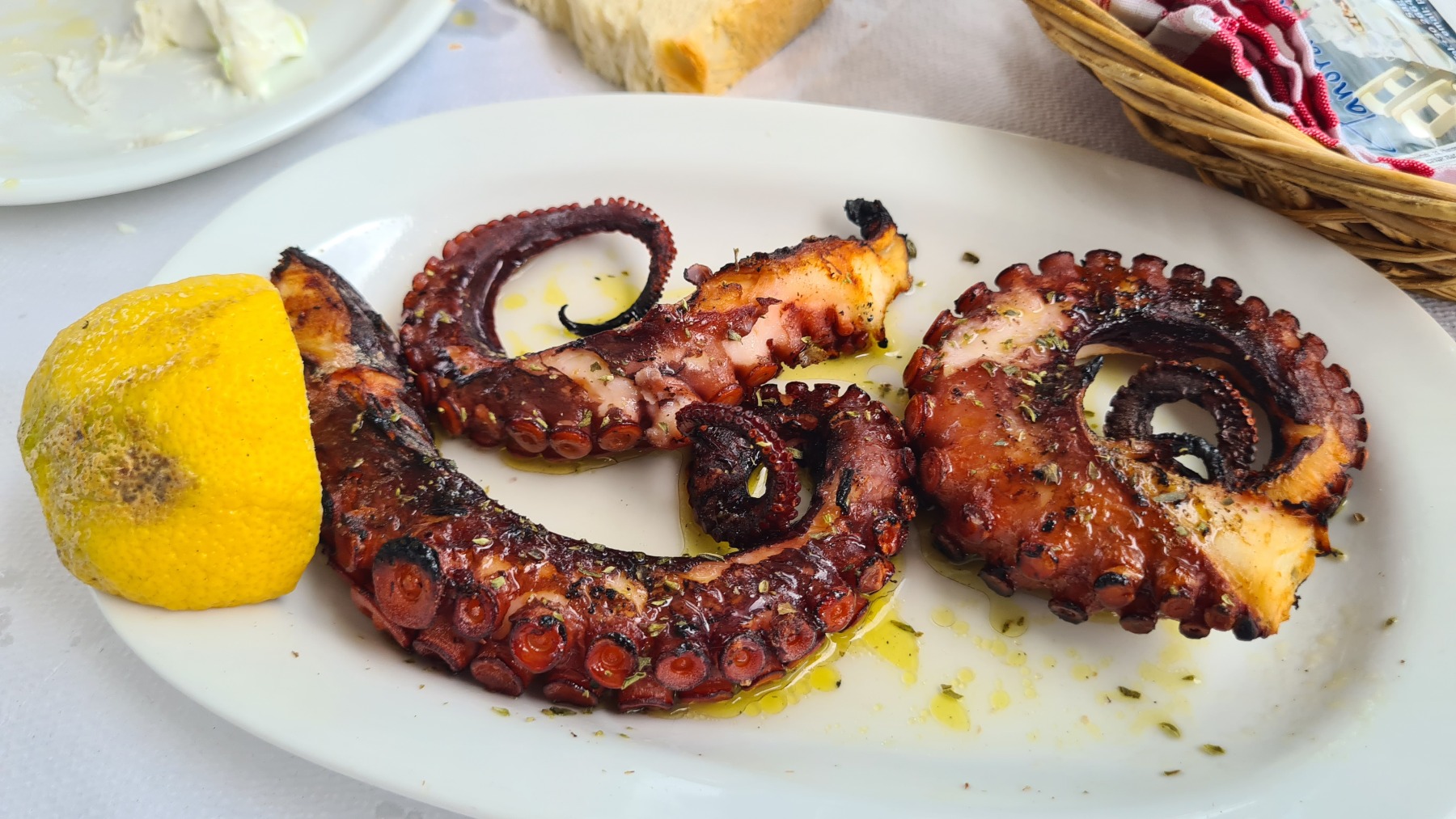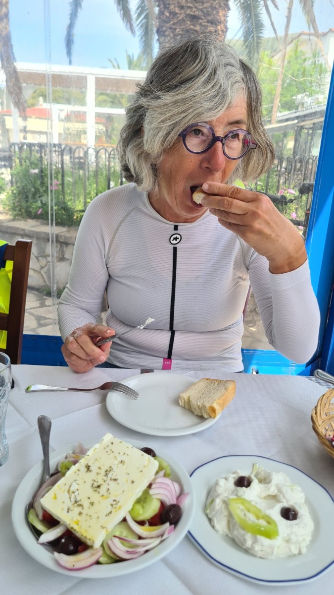 J’avais prévu une étape courte pour pouvoir récupérer d’une nuit en ferry (si la récupération s’avérait nécessaire) et nous sommes arrivés au petit port de Sagiada pour le déjeuner – et peut être le seul repas grec du périple.