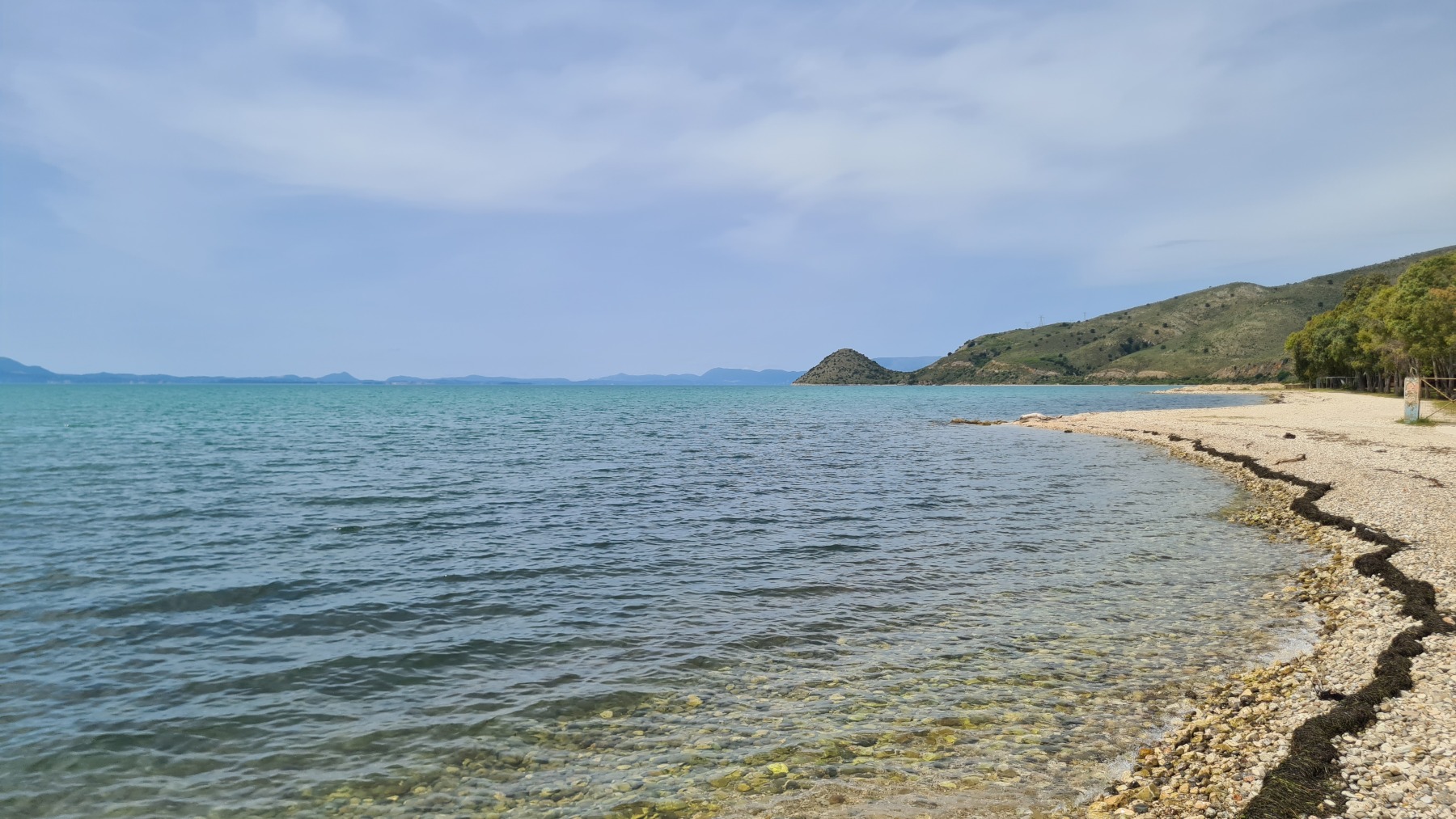 Comme l’étape était courte nous avons préféré longer la côte le plus longtemps possible n’avons rejoint l’Eurovelo 8 qui suit un parcours plus direct qu’au milieu de l’étape. Nous avons traversé une large vallée très cultivée et irriguée et le vert des cultures contraste fortement avec le caractère pelé des collines et montagnes environnantes.